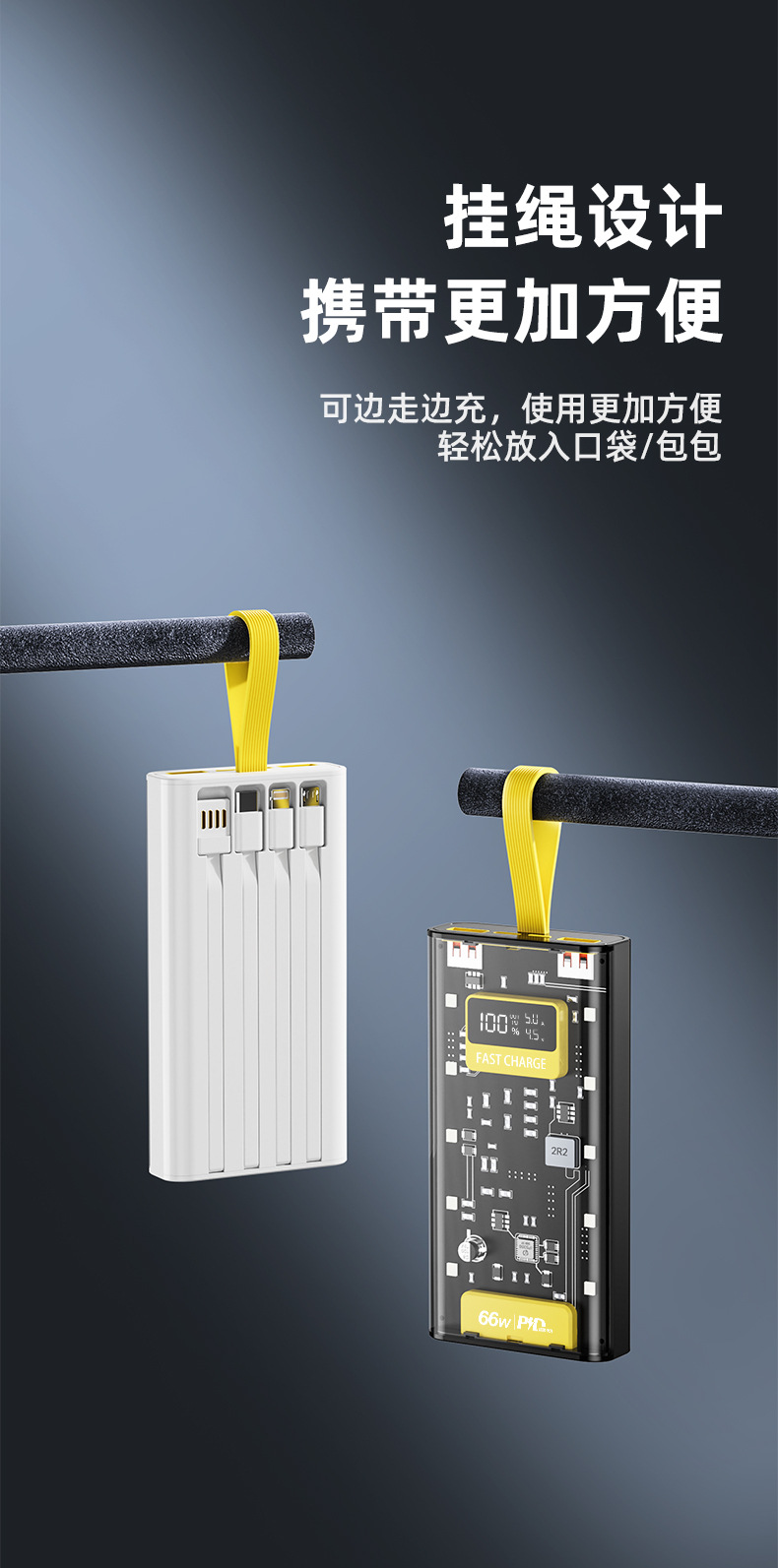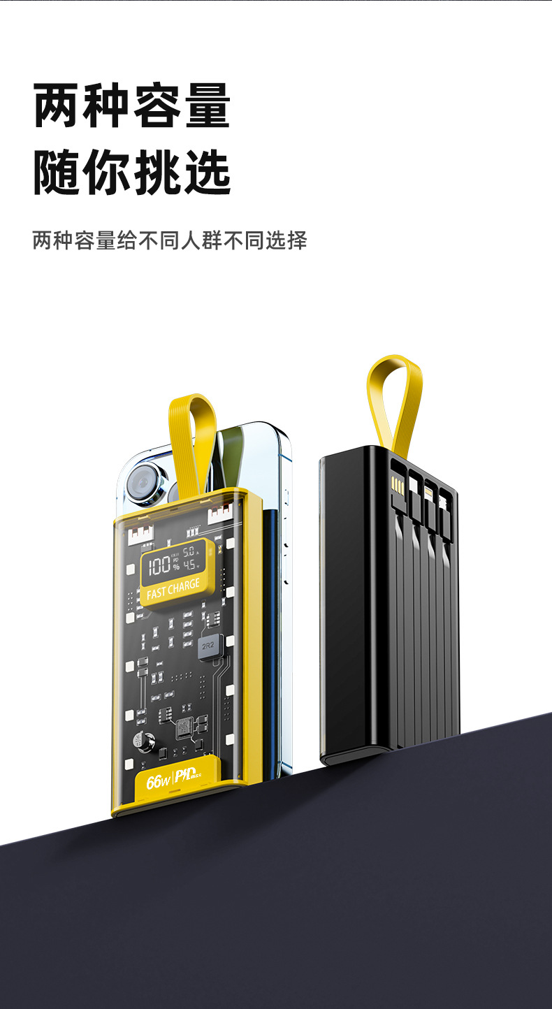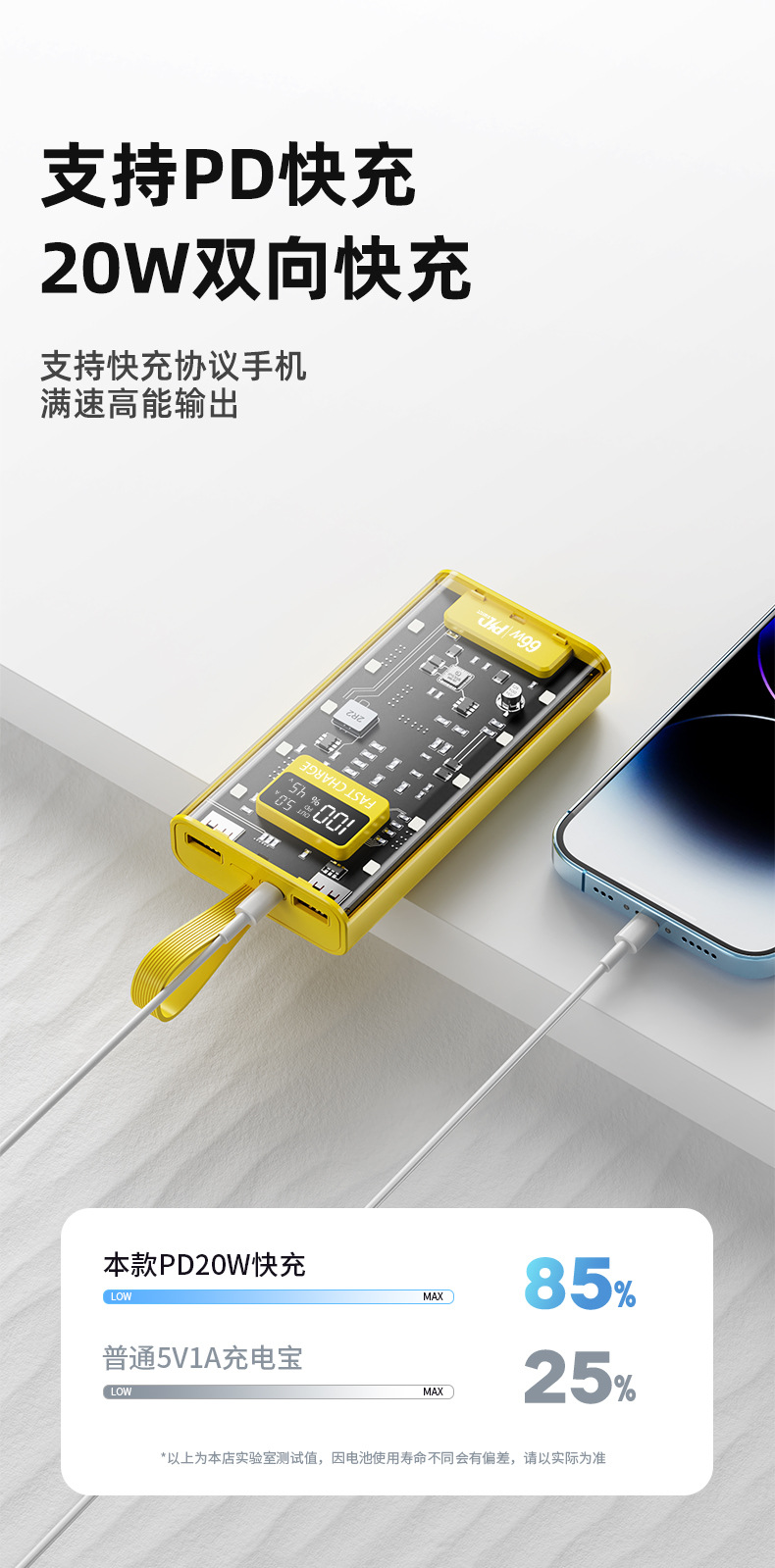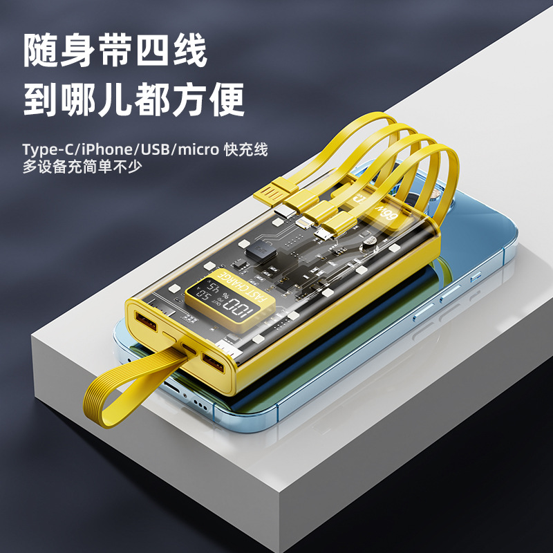跨境爆款透明带线露营灯户外便携双向PD快充数显移动电源充电宝