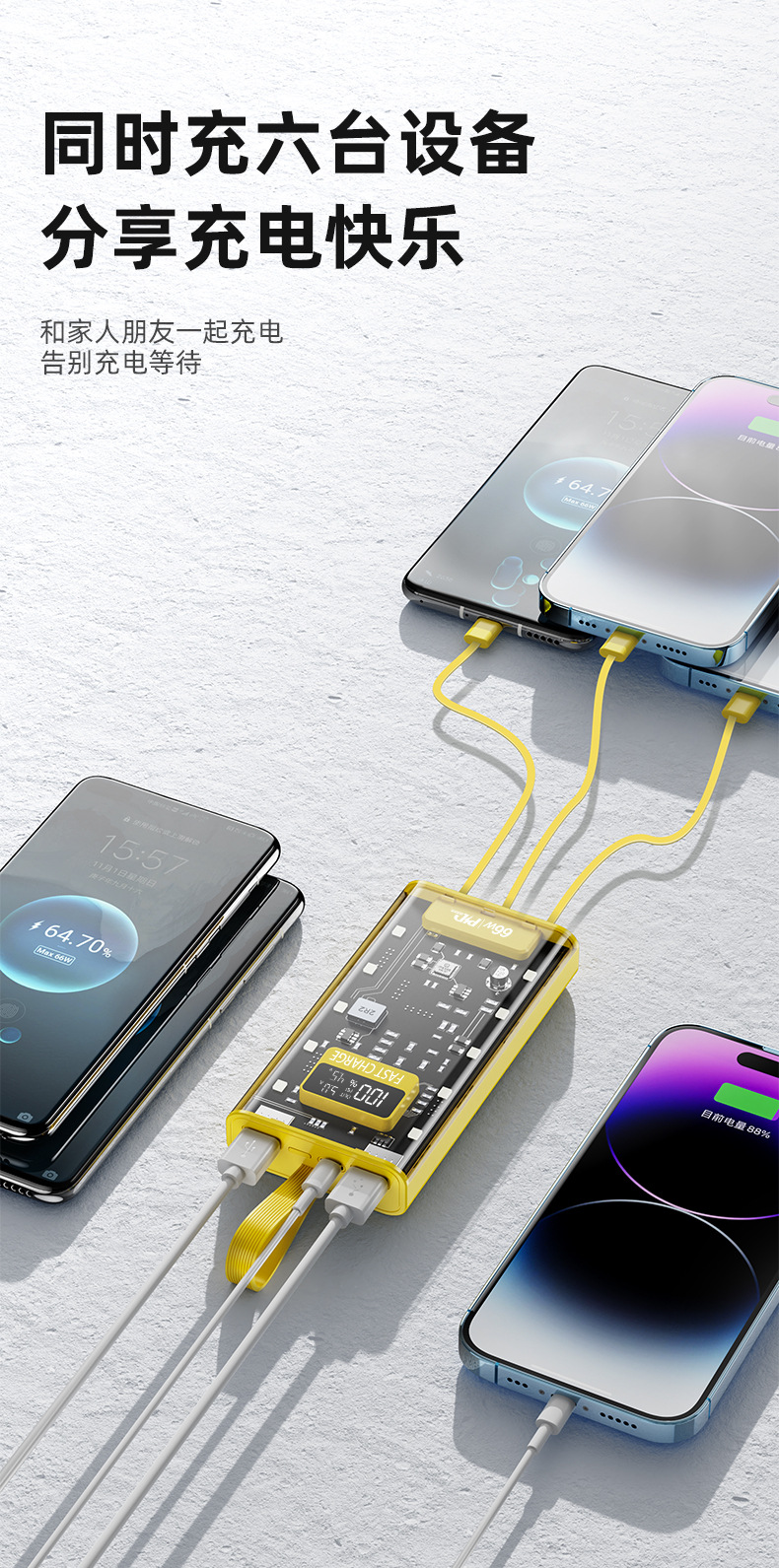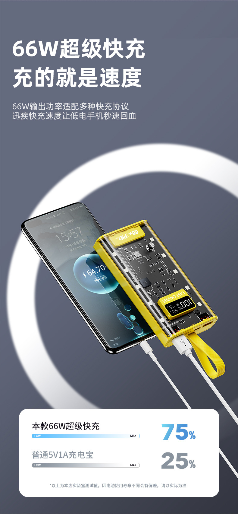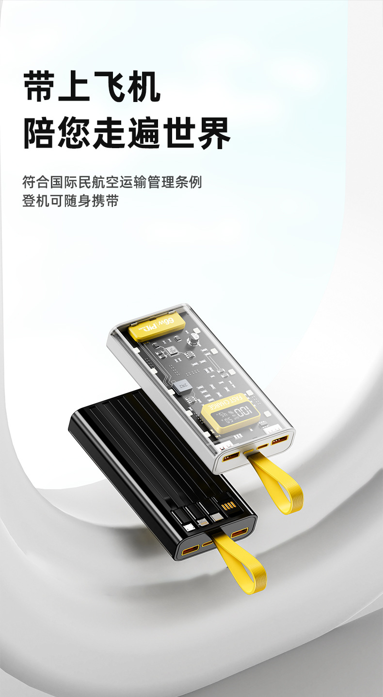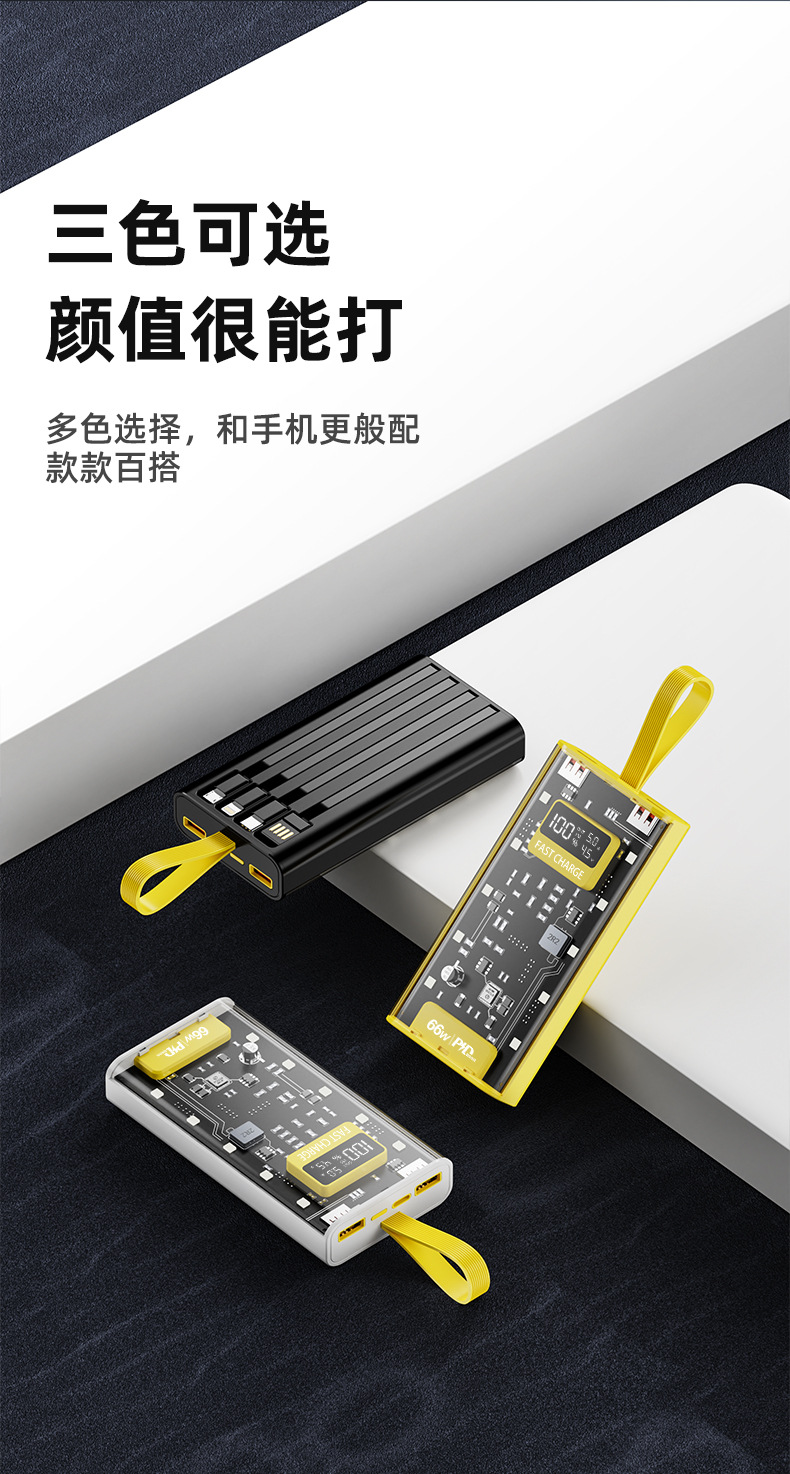 跨境爆款透明带线露营灯户外便携双向PD快充数显移动电源充电宝