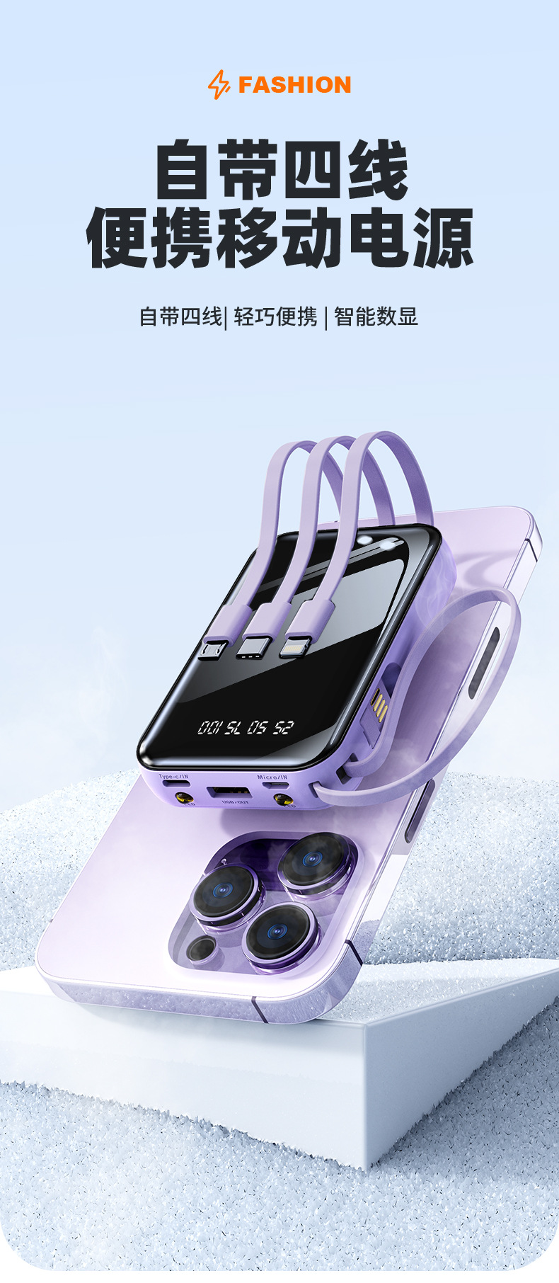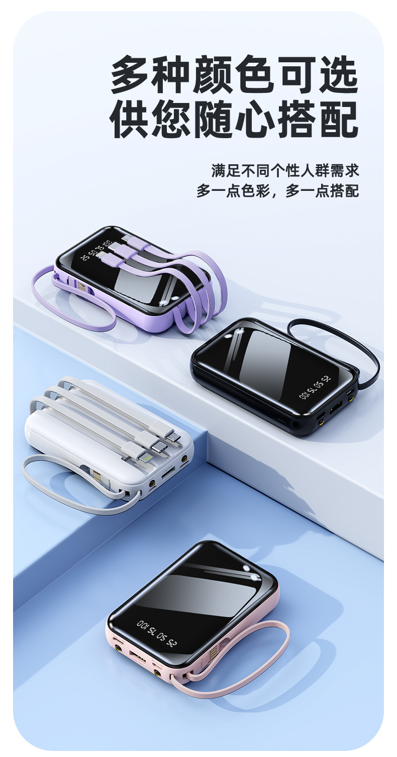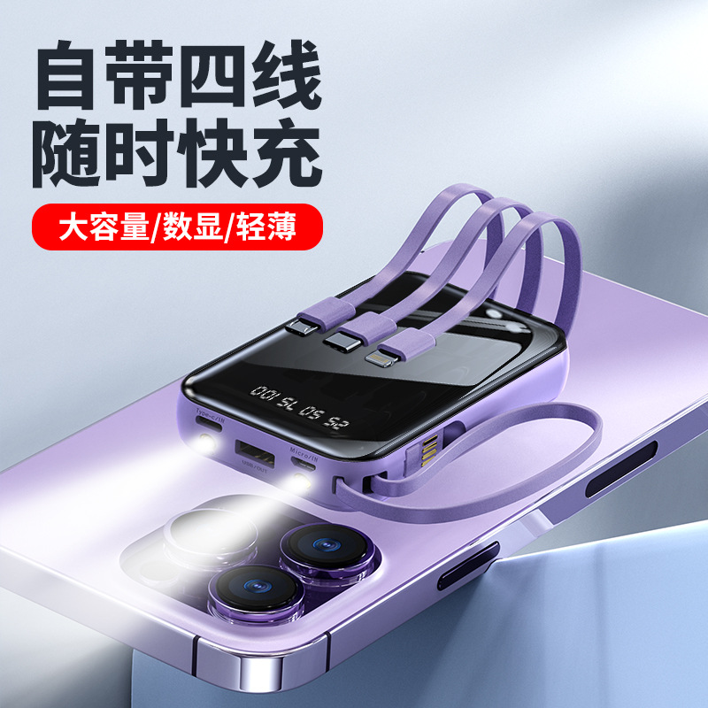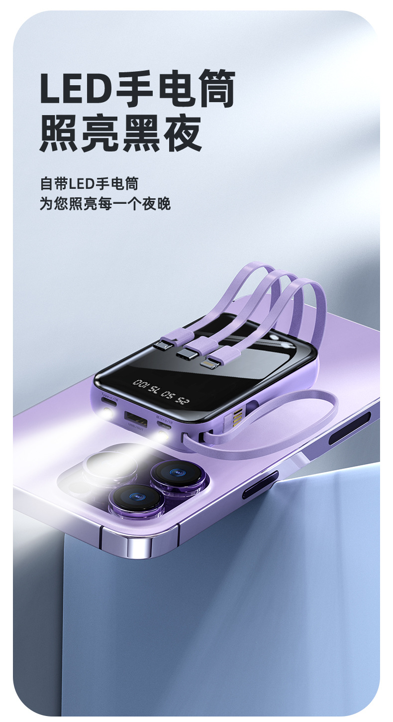 新款充电宝超大容量自带线高端20000毫安小巧便携快充移动电源