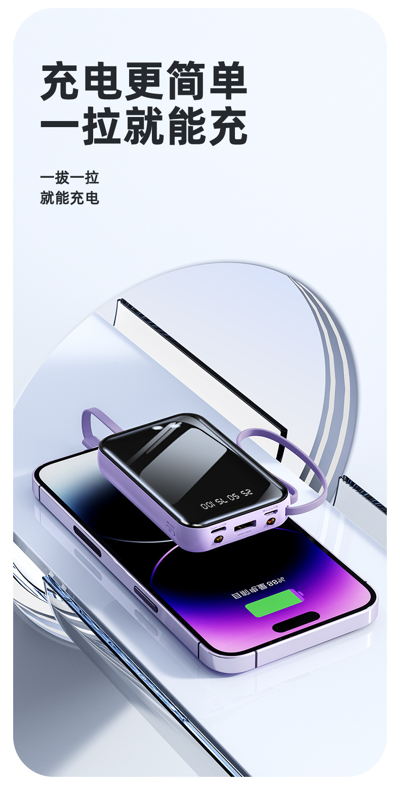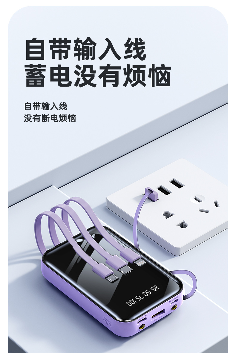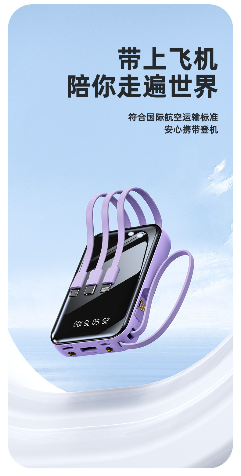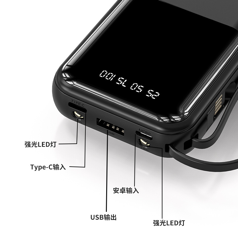 新款充电宝超大容量自带线高端20000毫安小巧便携快充移动电源