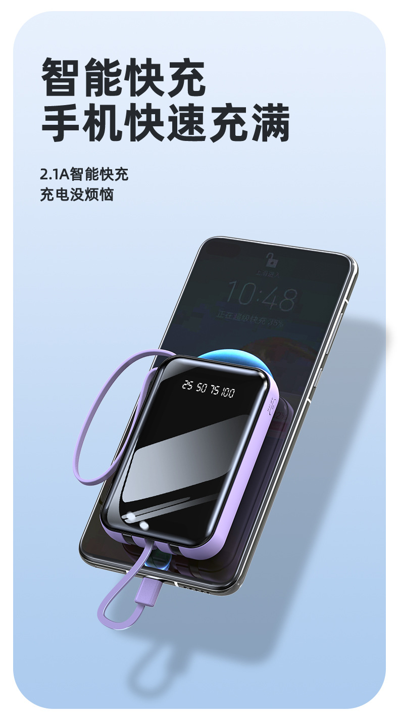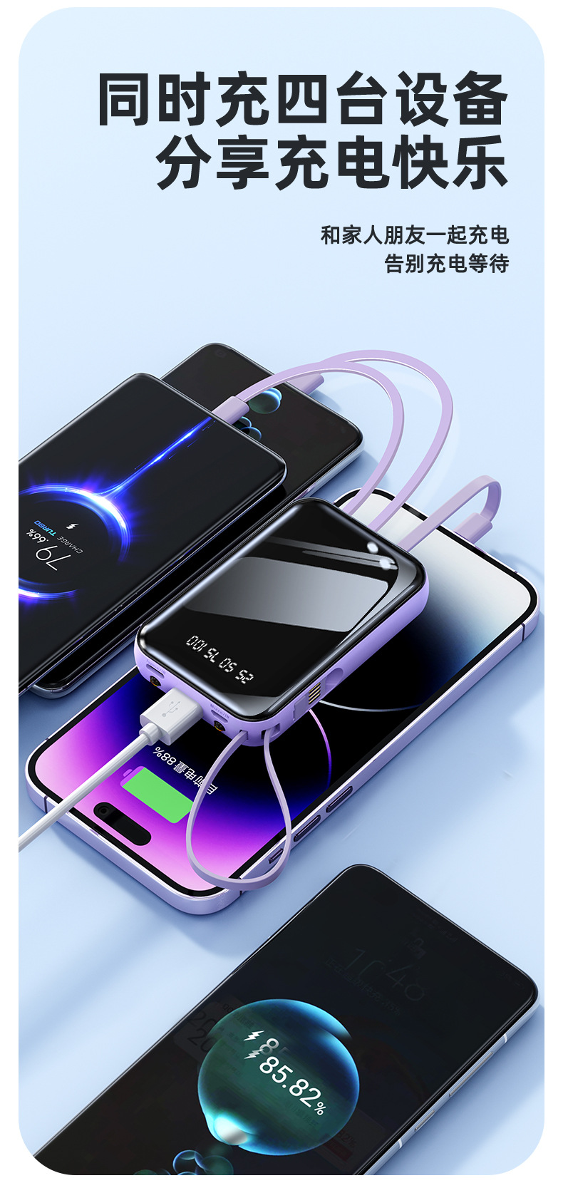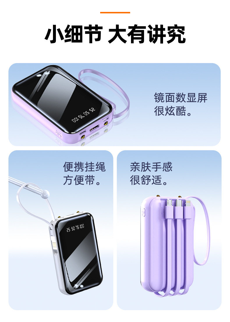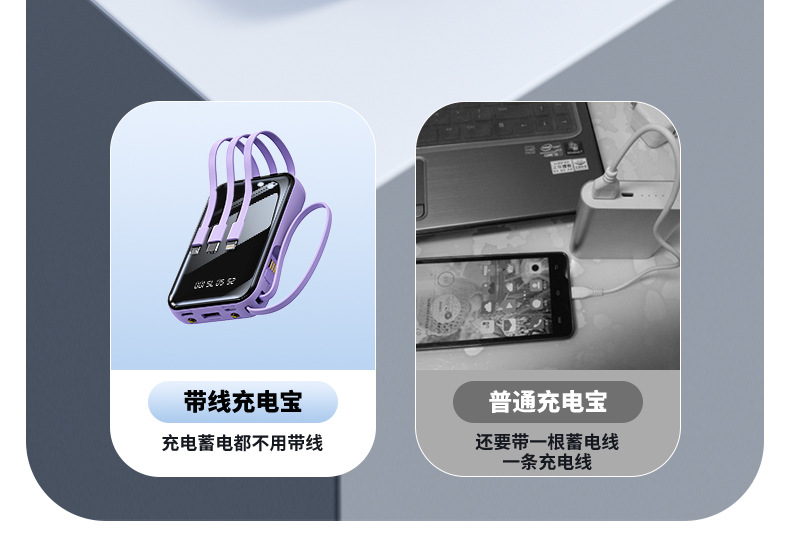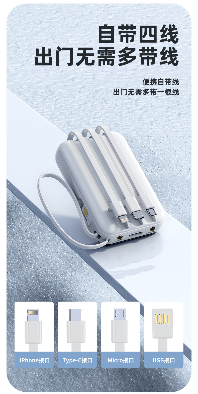 新款充电宝超大容量自带线高端20000毫安小巧便携快充移动电源