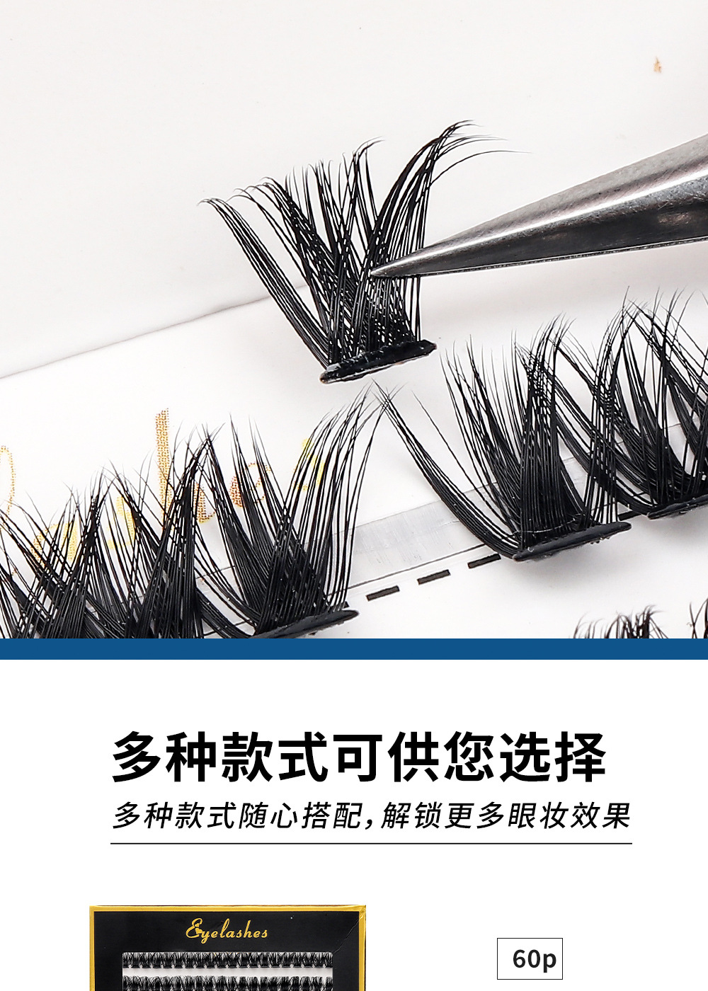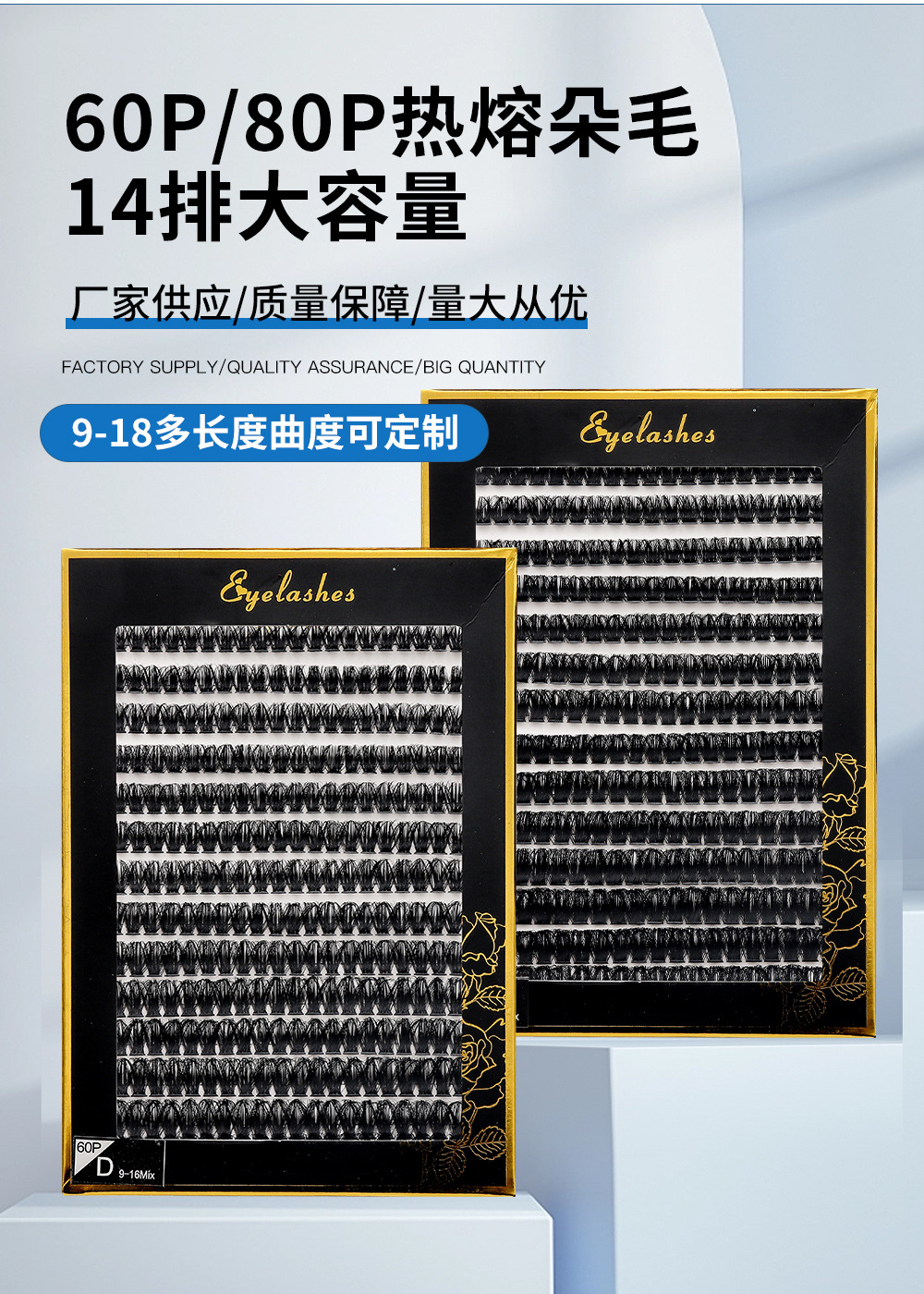 亚马逊热熔30D/40D假睫毛14排D曲嫁接朵毛混装浓密分段跨境现货