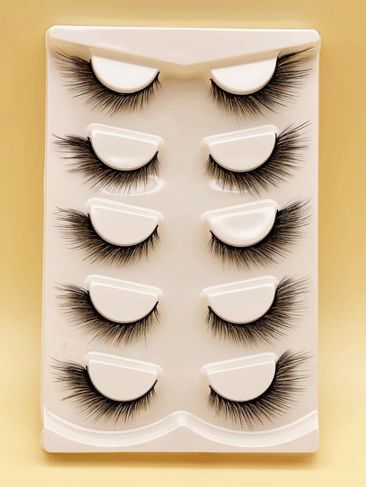 跨境爆品仿水貂五联猫眼睫毛 眼尾加长自然眼睫毛平度假睫毛批发