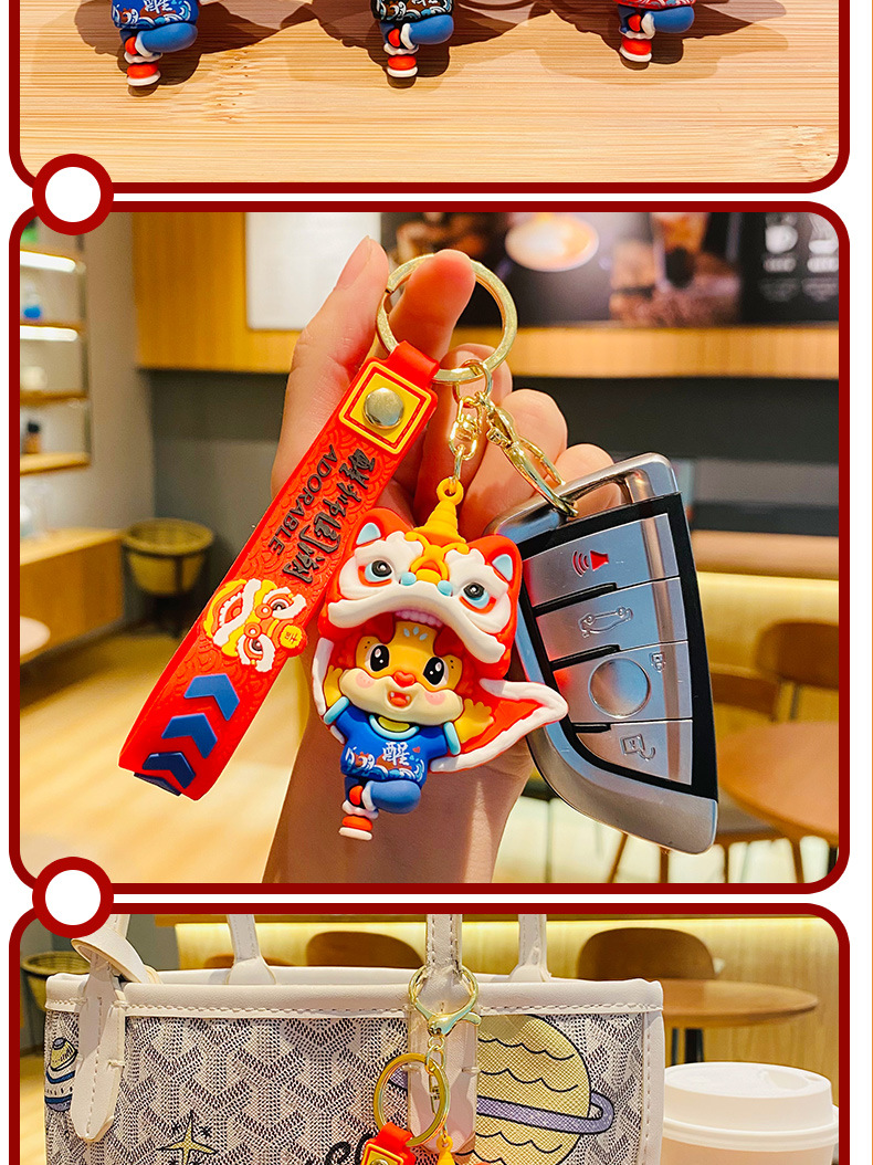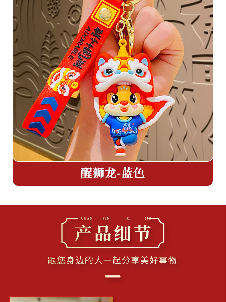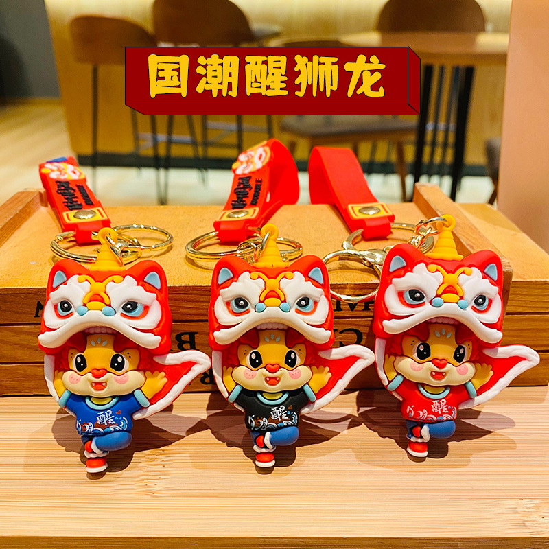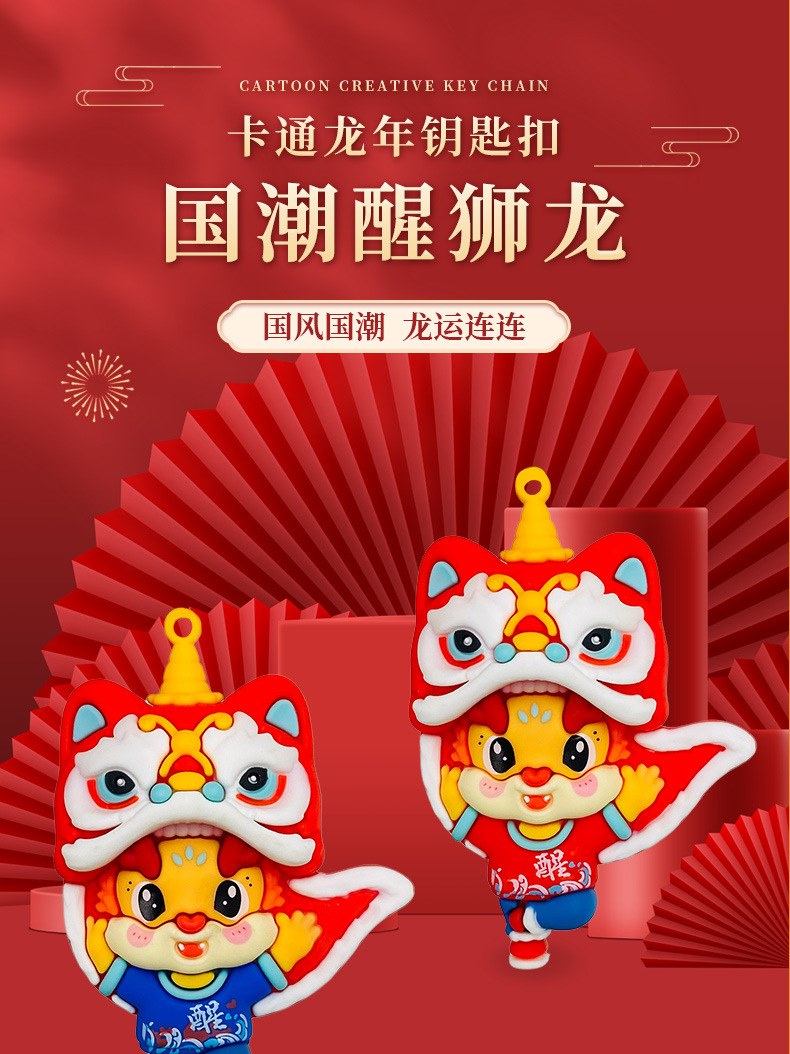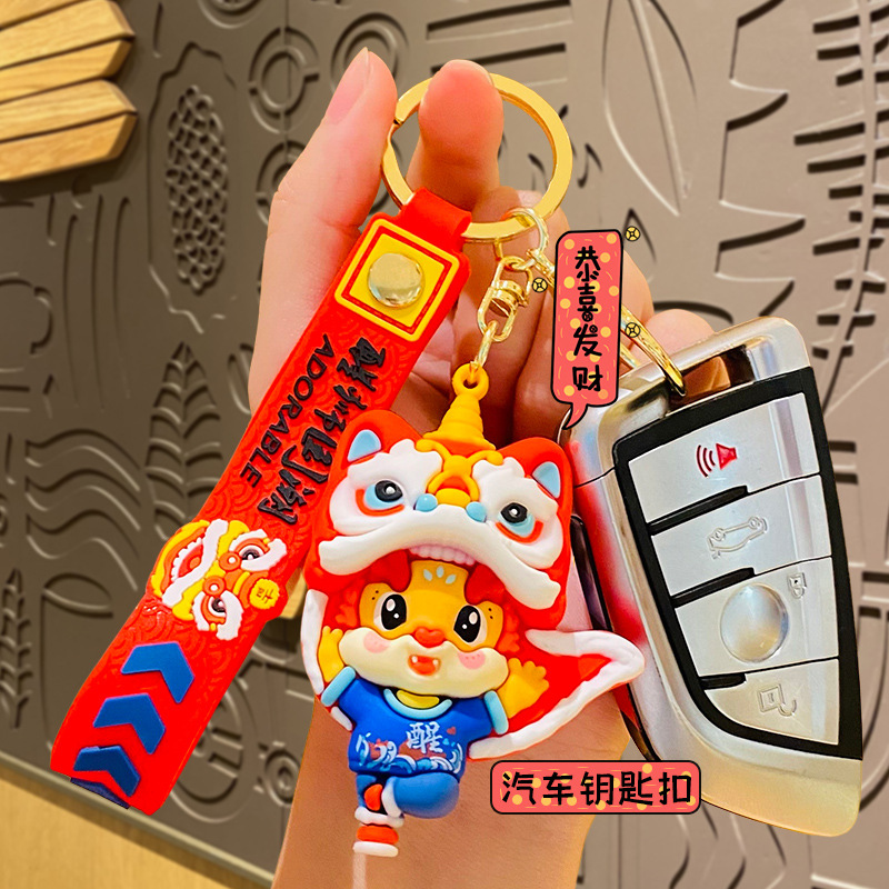 国潮醒狮龙新年钥匙扣卡通龙年汽车挂件可爱情侣包包钥匙链小礼物