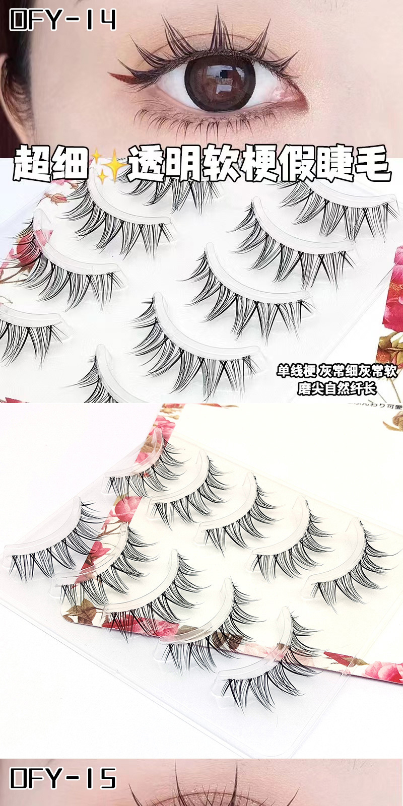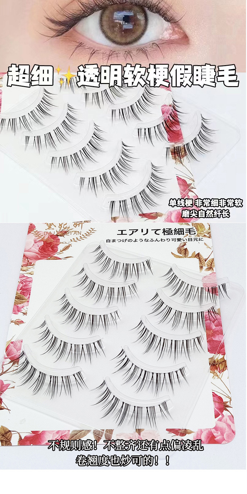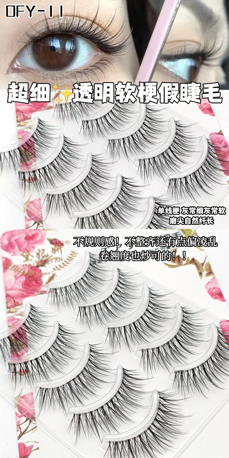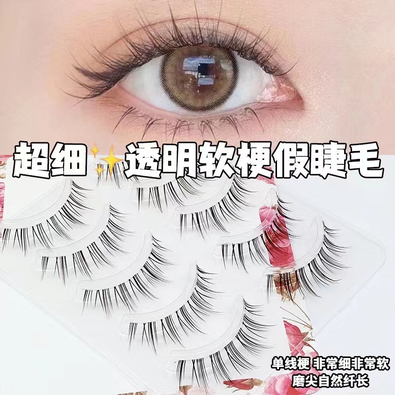 懒人超细透明梗卷翘簇状自然假睫毛小恶魔一片式新手眼睫毛多款选