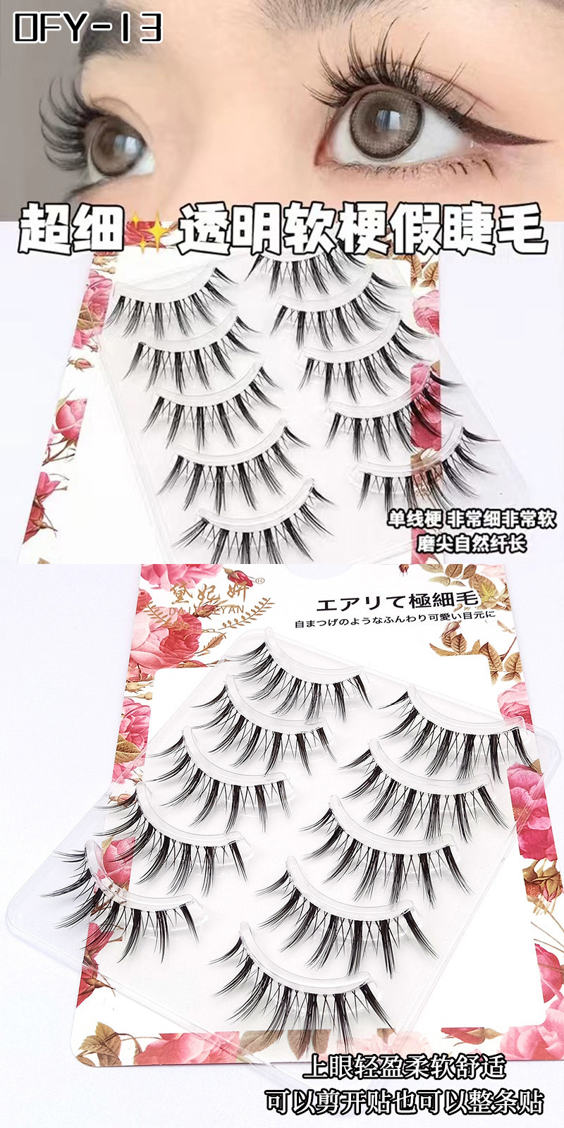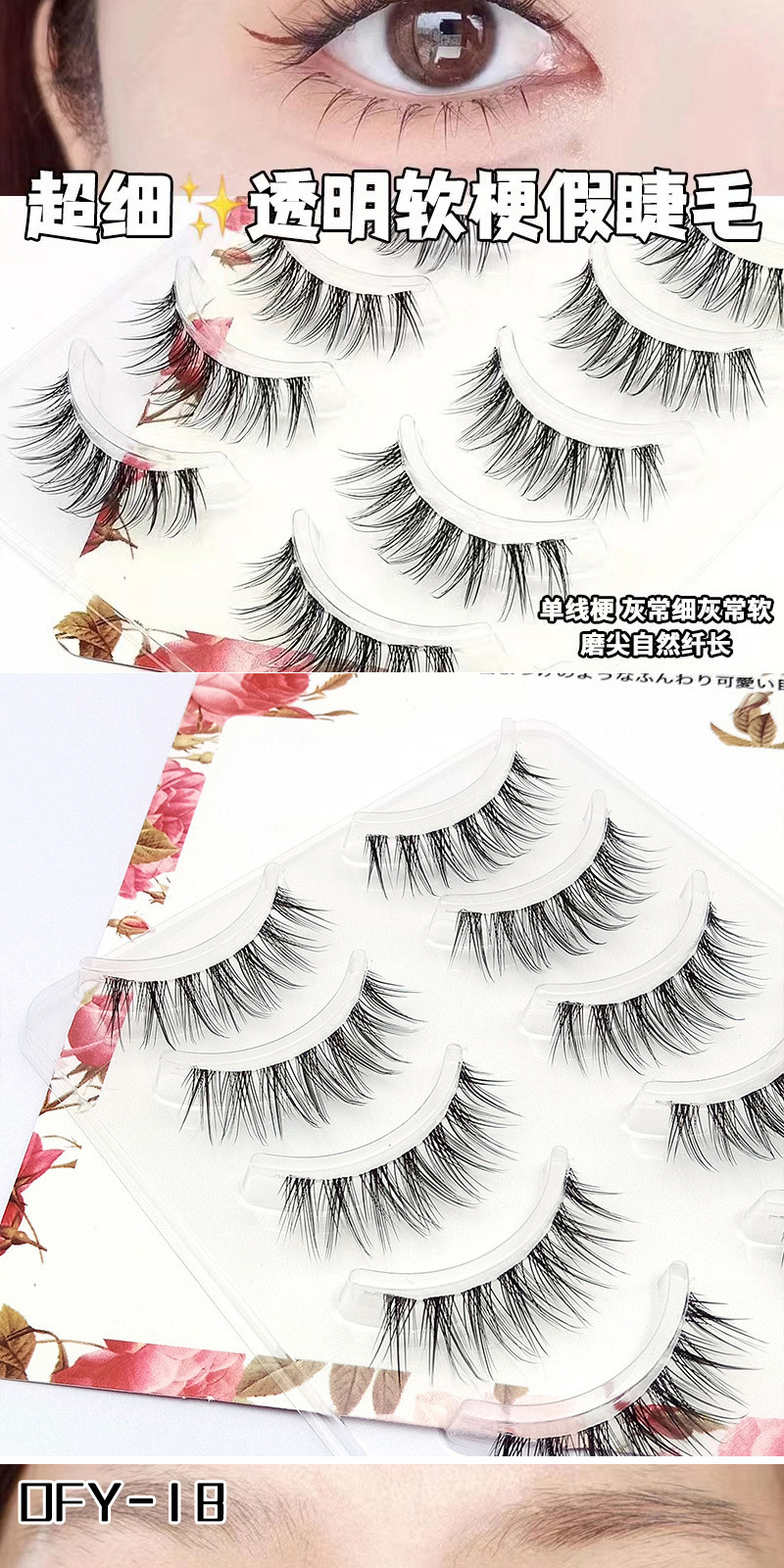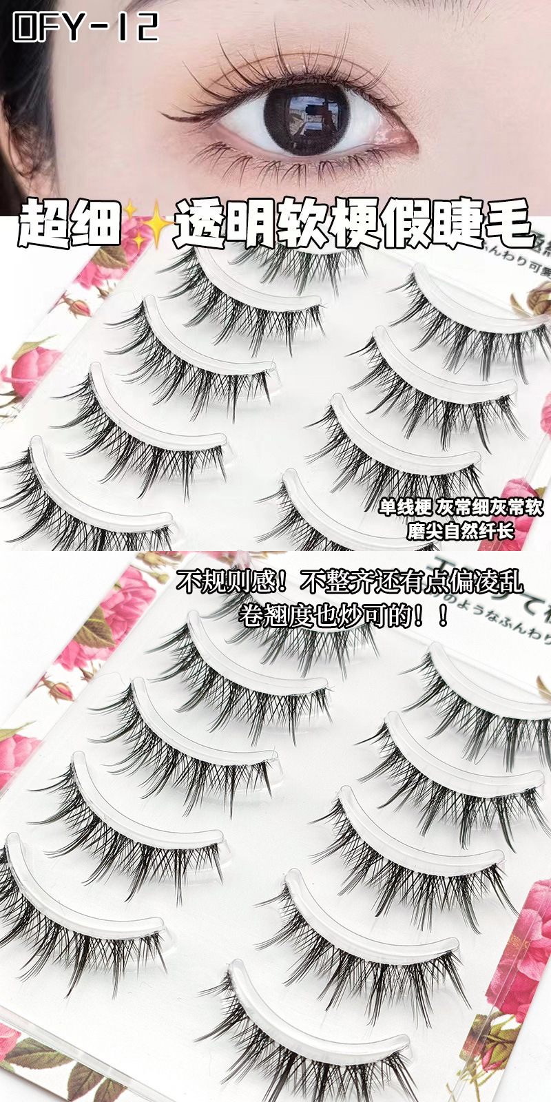 懒人超细透明梗卷翘簇状自然假睫毛小恶魔一片式新手眼睫毛多款选