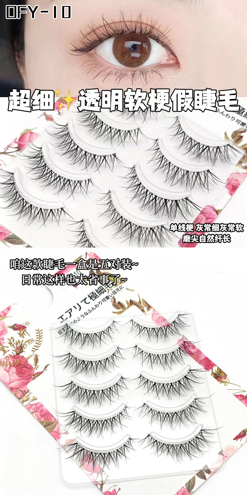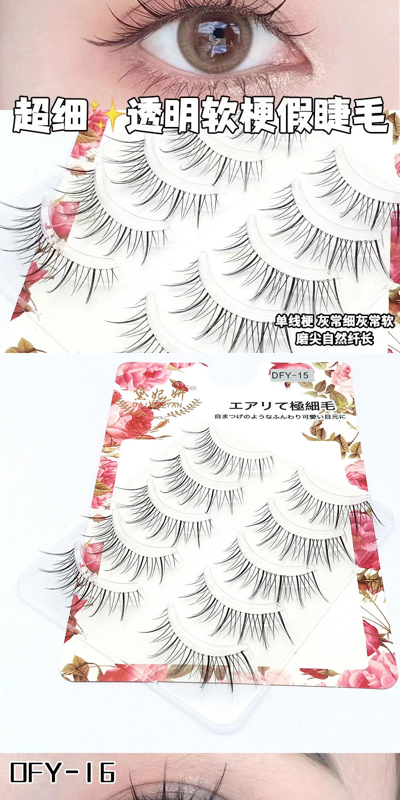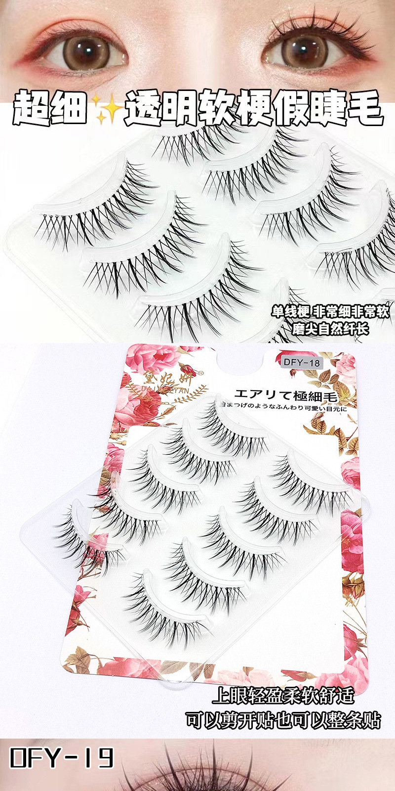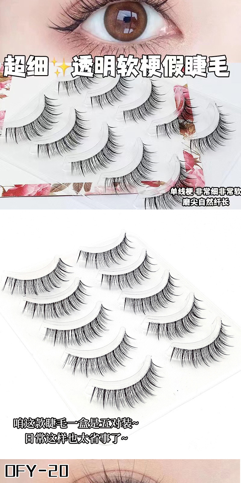 懒人超细透明梗卷翘簇状自然假睫毛小恶魔一片式新手眼睫毛多款选