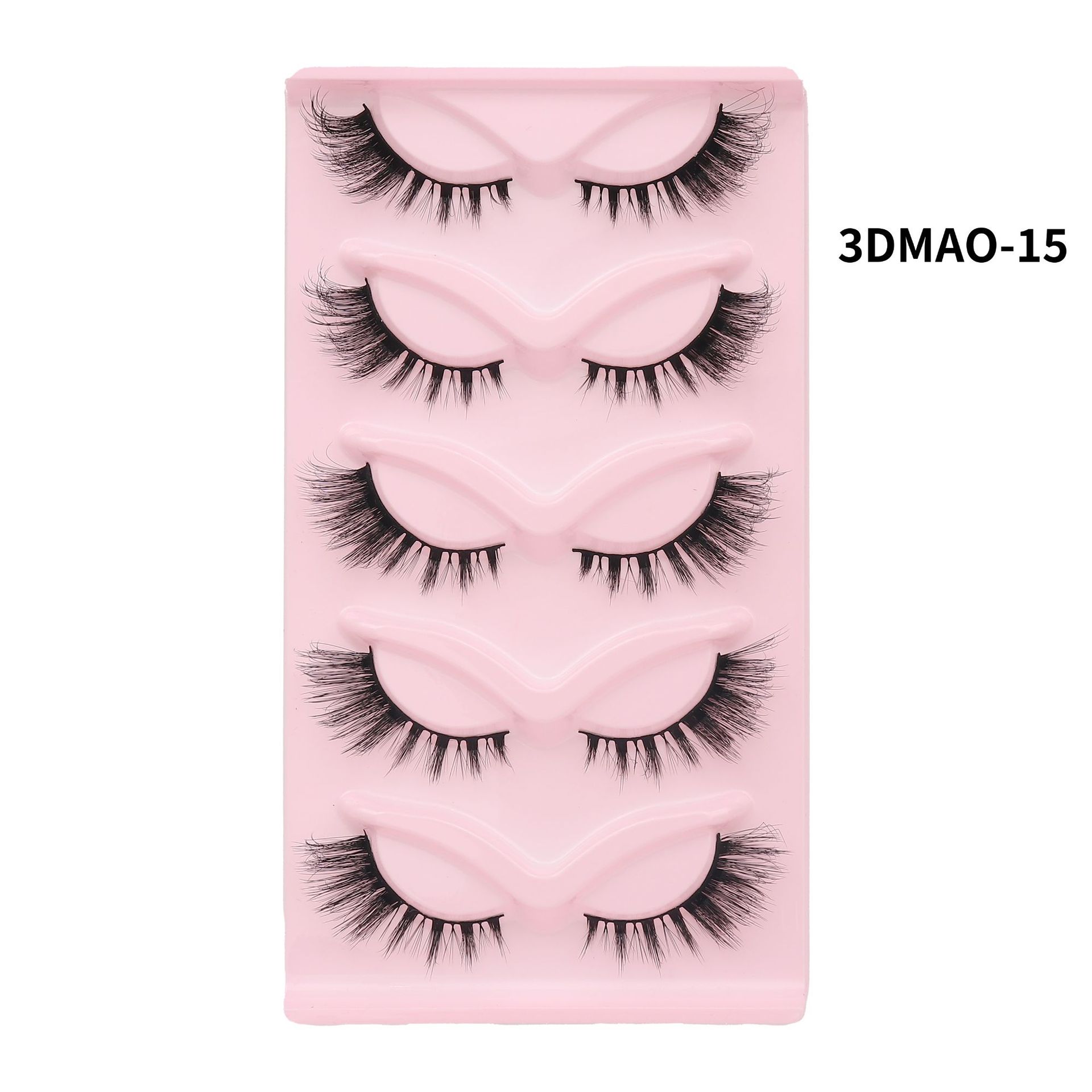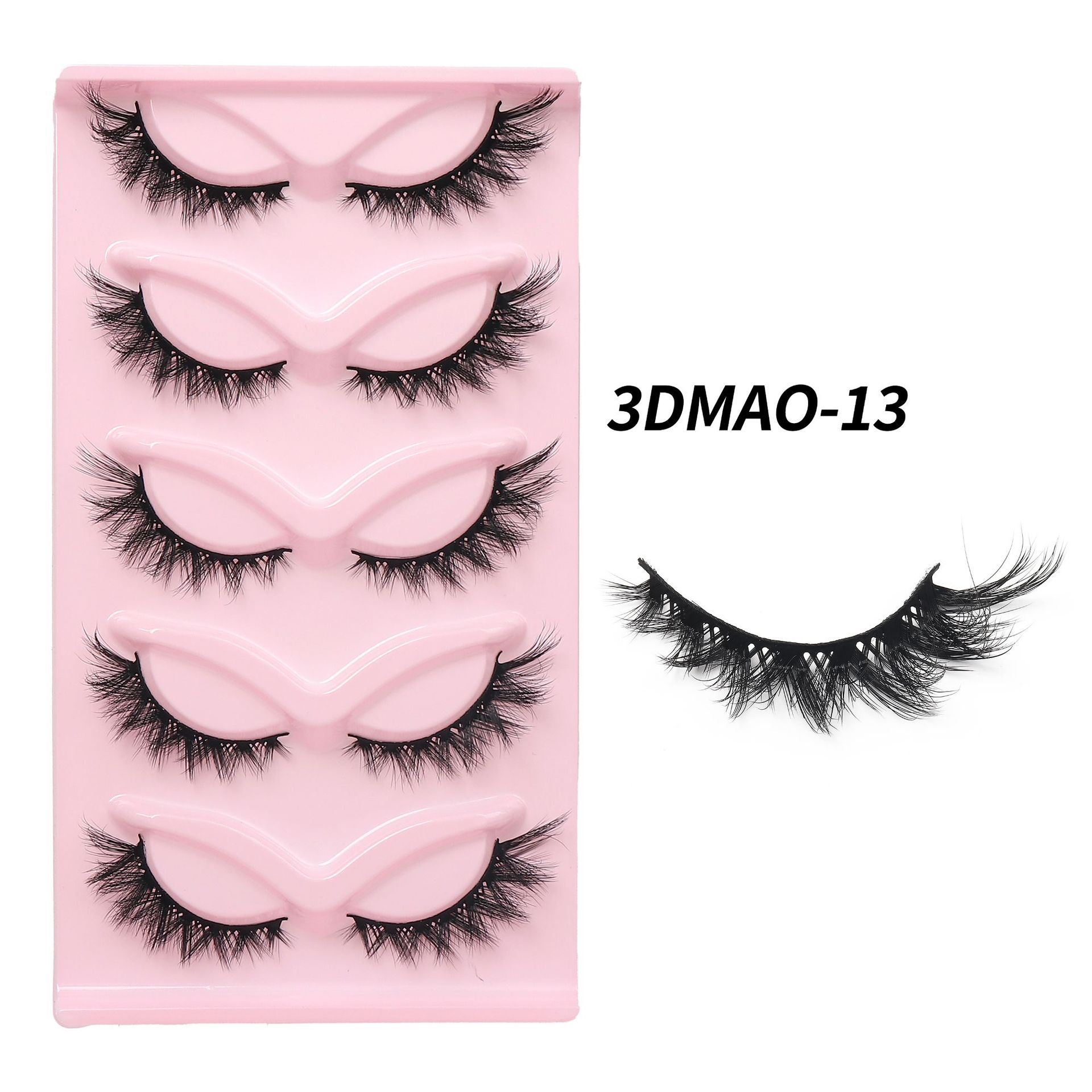 3D猫眼假睫毛五对装浓密眼尾拉长款3d眼睫毛源头工厂跨境货源