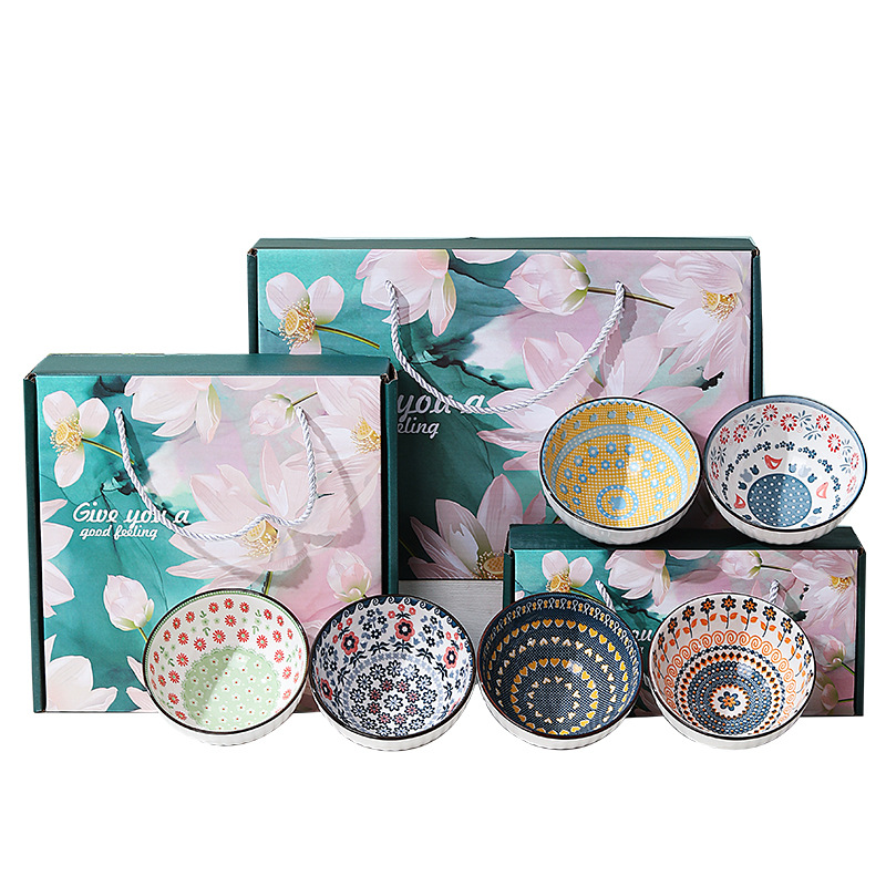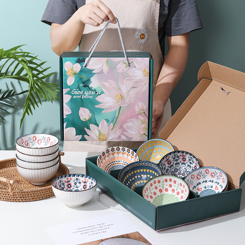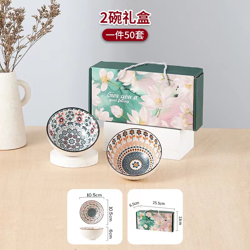 跨境日式餐具碗筷套装陶瓷碗房地产开业礼品保险公司赠品可定LOGO