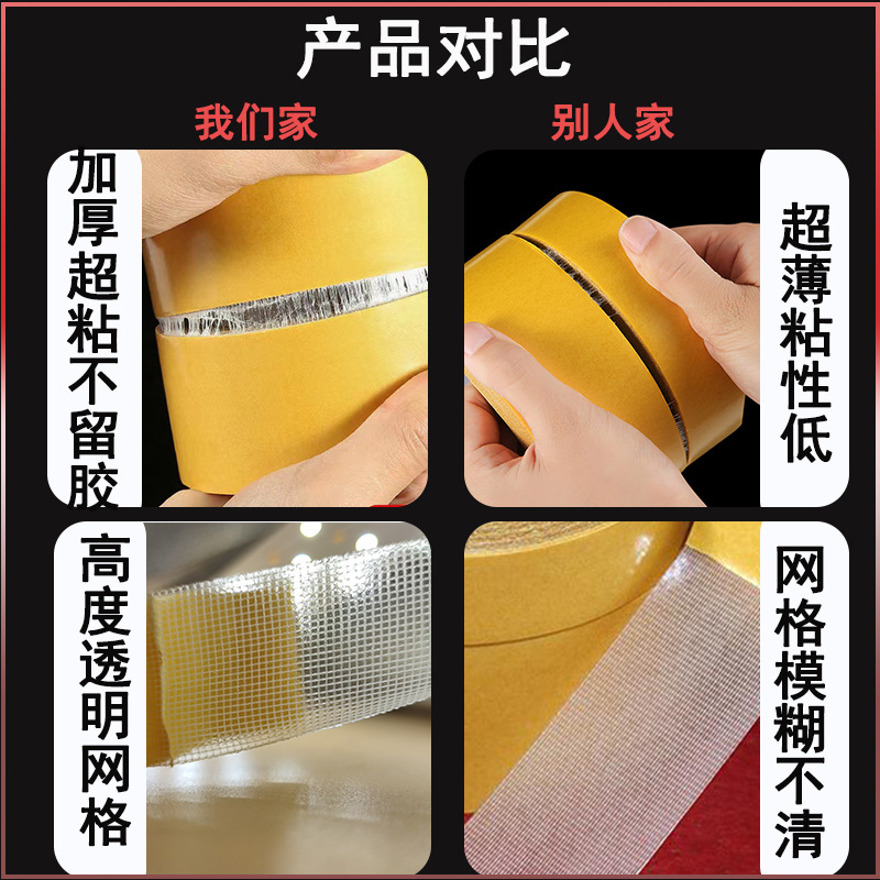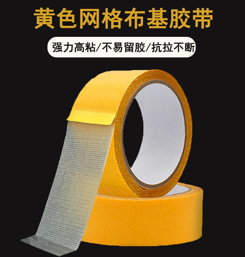 基胶带高粘强力加厚不留痕黄色透明网格地毯拼接胶带网格双面胶布
