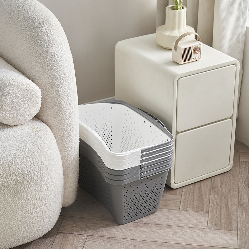 现货批发超市购物手提脏衣篮 家用浴室脏衣篓 塑料镂空内衣收纳筐