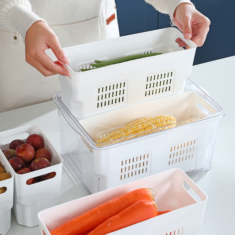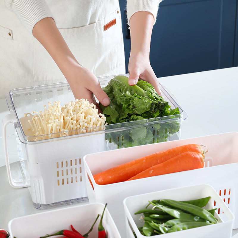 软盖冰箱收纳盒食品级透明沥水储物盒厨房冷冻专用食物保鲜盒