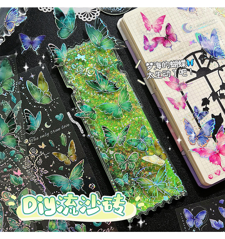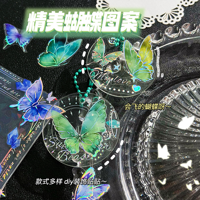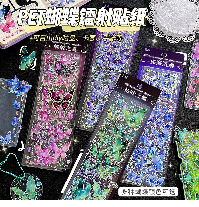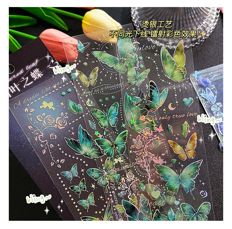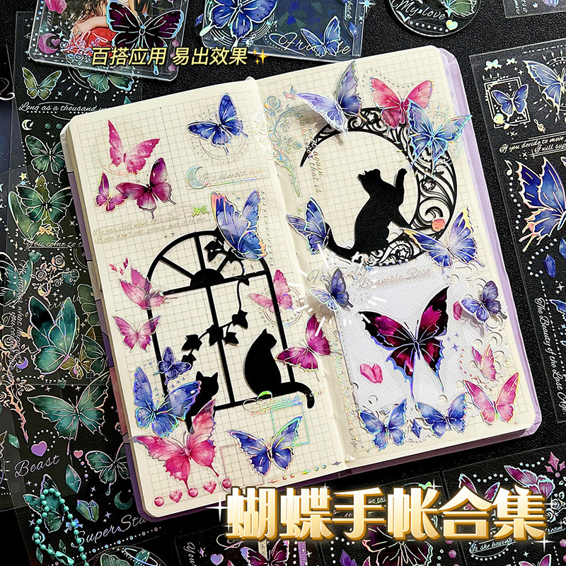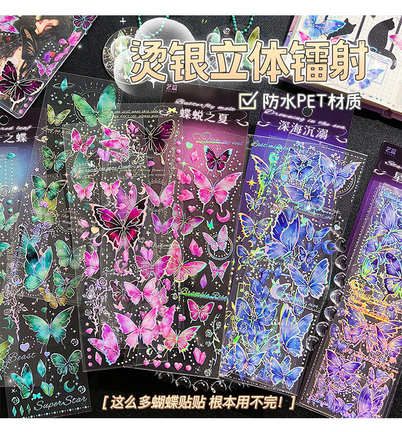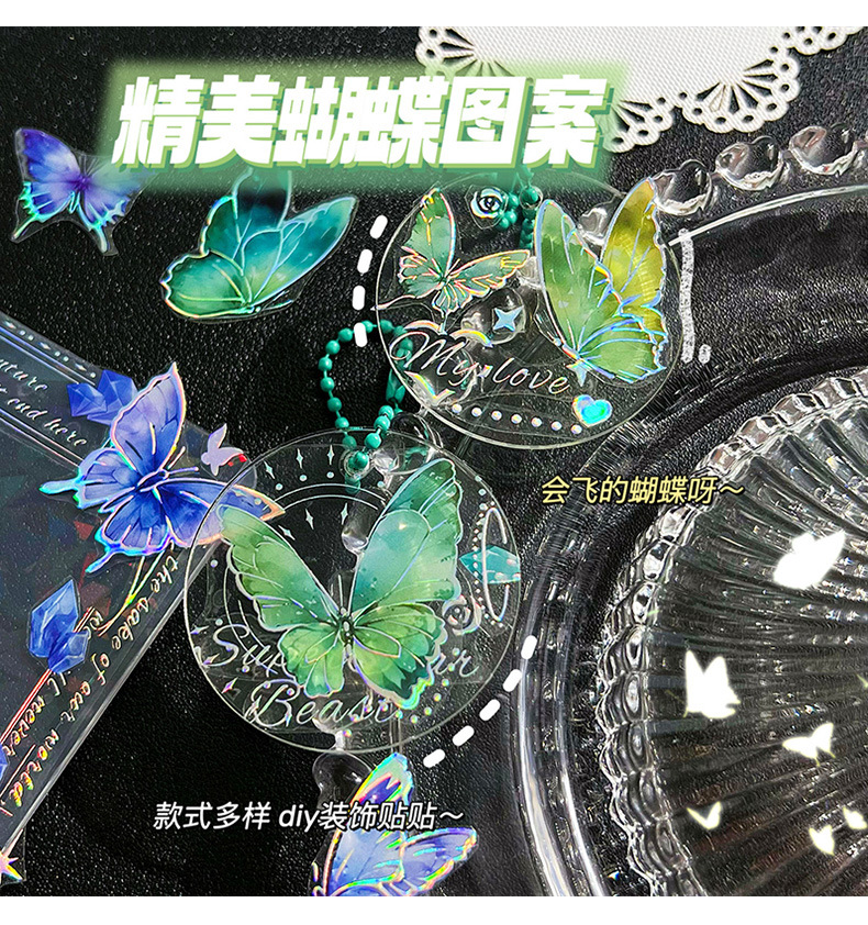 镭射烫金浮雕蝴蝶贴纸PET轻复古立体DIY咕卡手帐装饰素材贴画粘贴
