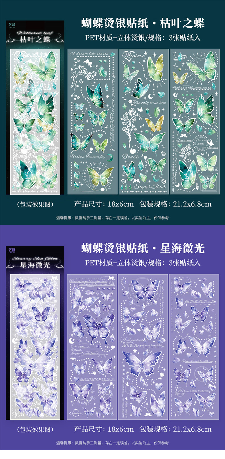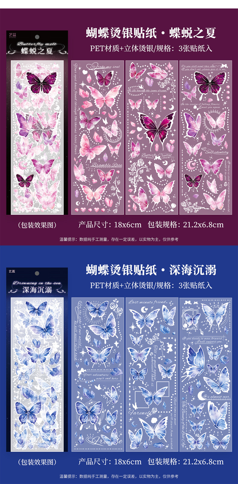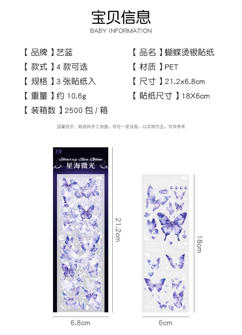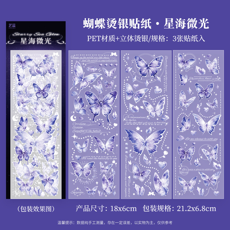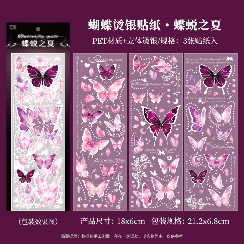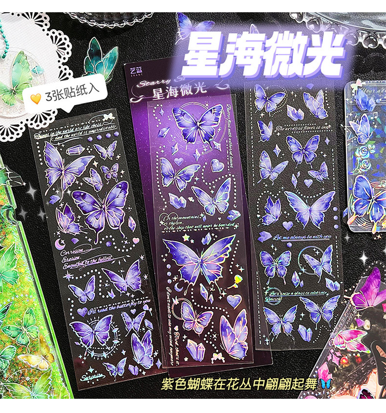 镭射烫金浮雕蝴蝶贴纸PET轻复古立体DIY咕卡手帐装饰素材贴画粘贴