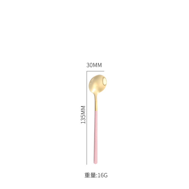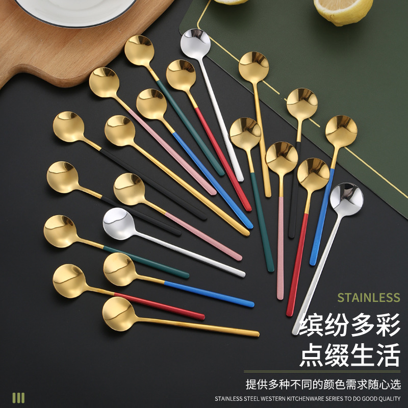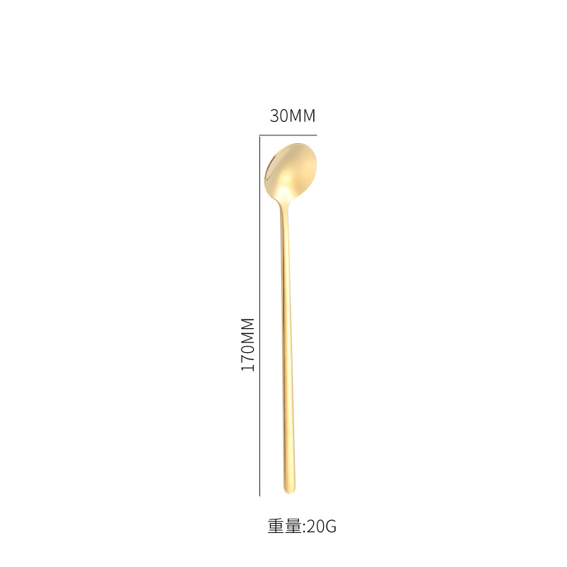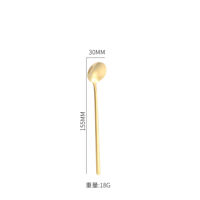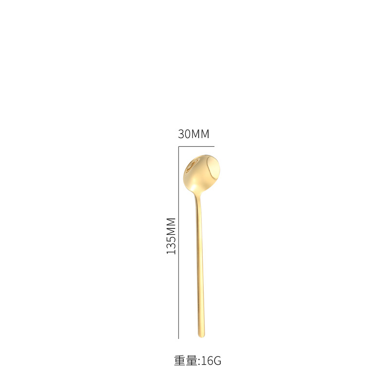 304不锈钢甜品小圆勺创意钛金咖啡勺长柄搅拌勺马克杯勺子批发