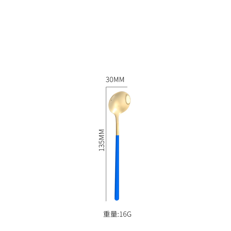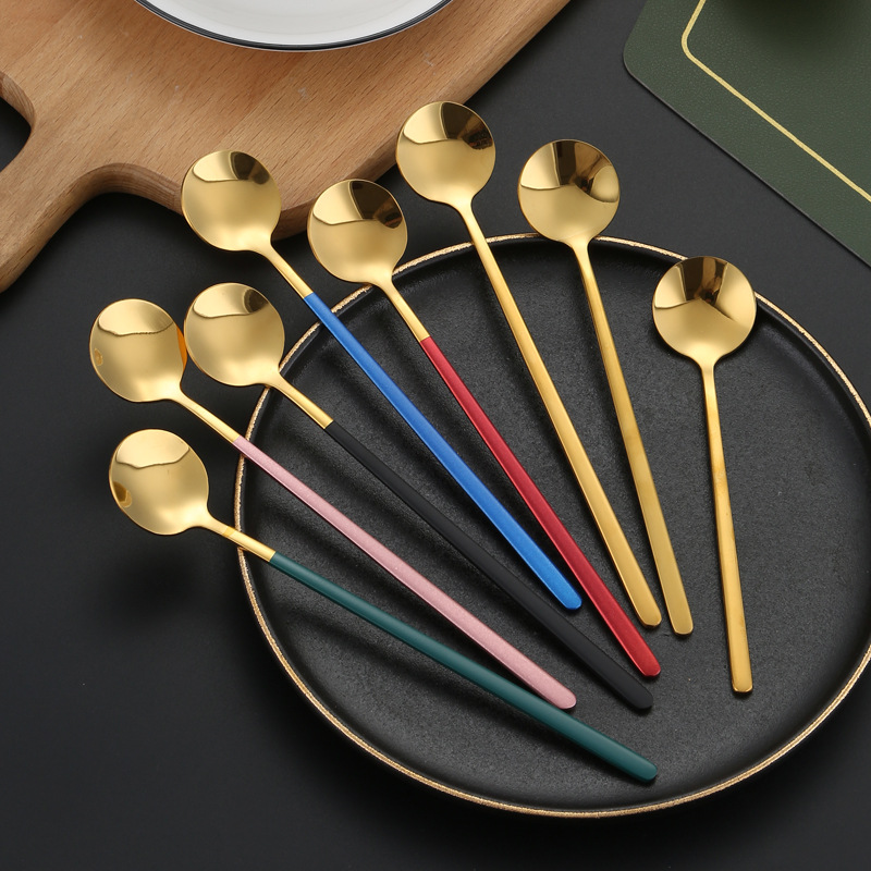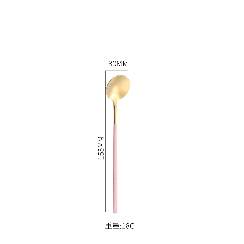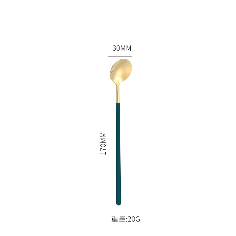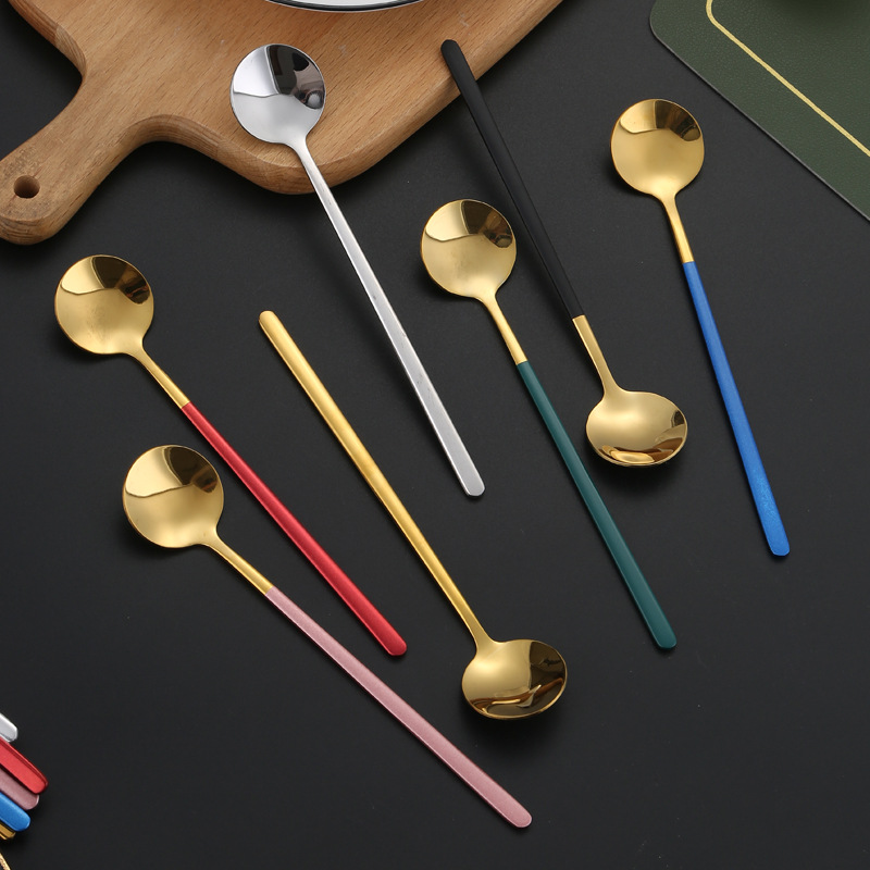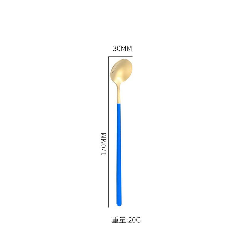 304不锈钢甜品小圆勺创意钛金咖啡勺长柄搅拌勺马克杯勺子批发
