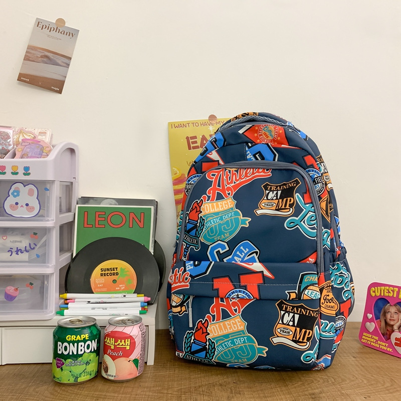 个性涂鸦学生学院风简约校园背包双肩包轻便女生百搭大学生书包