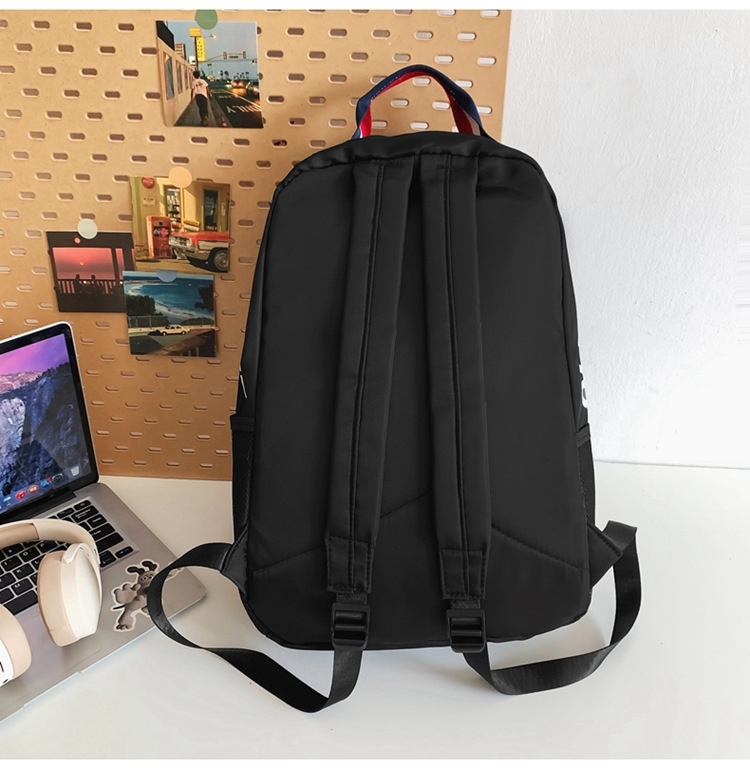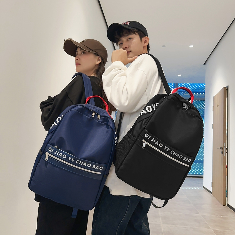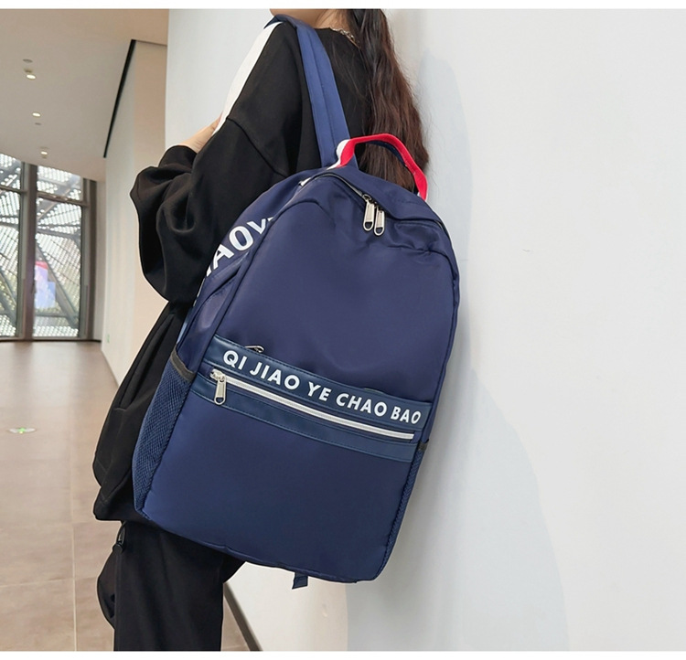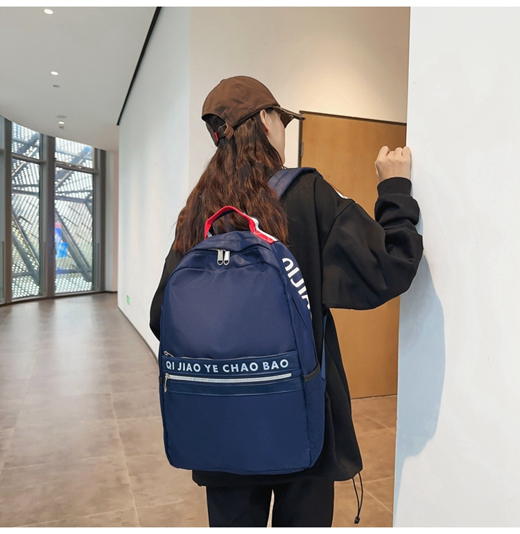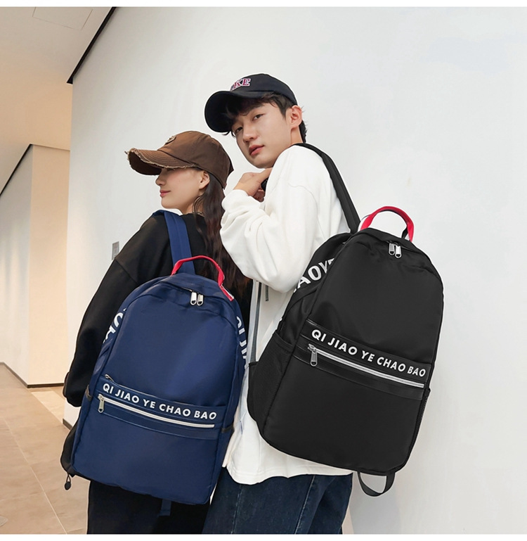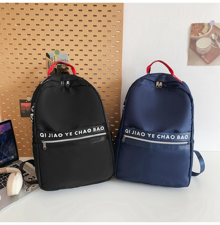 韩版休闲潮流休闲背包批发简约纯色出行字母双肩包日系中学生书包