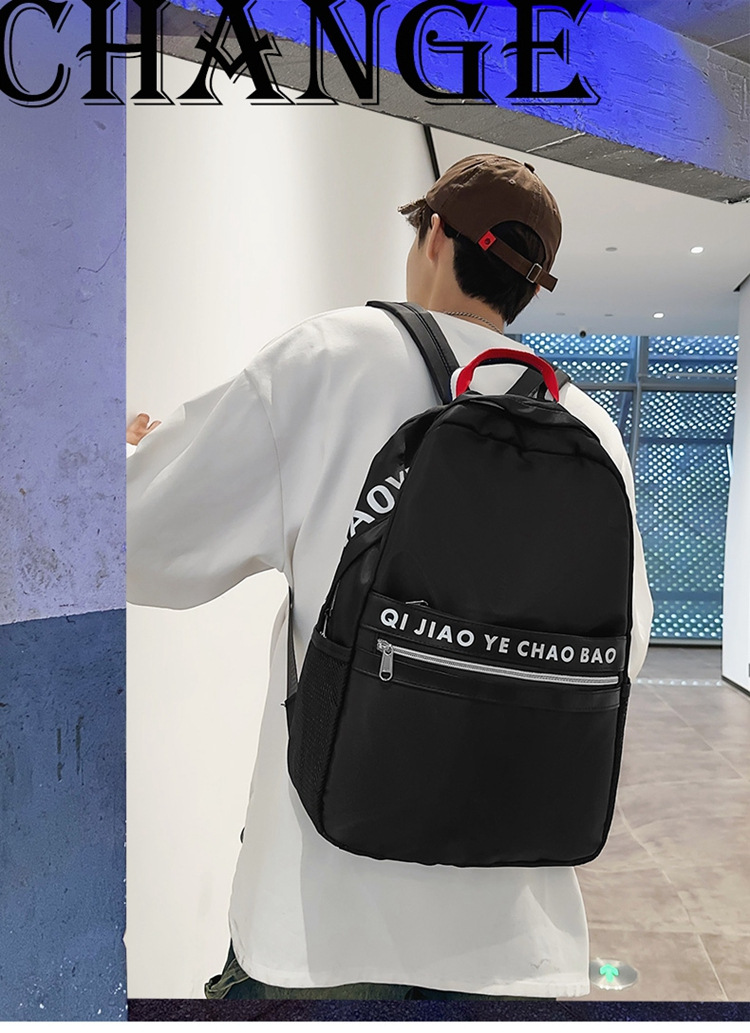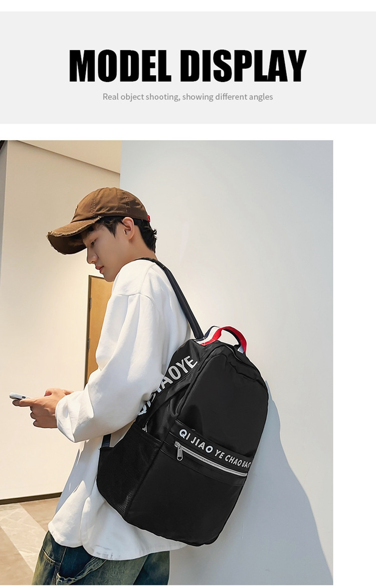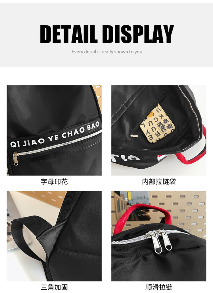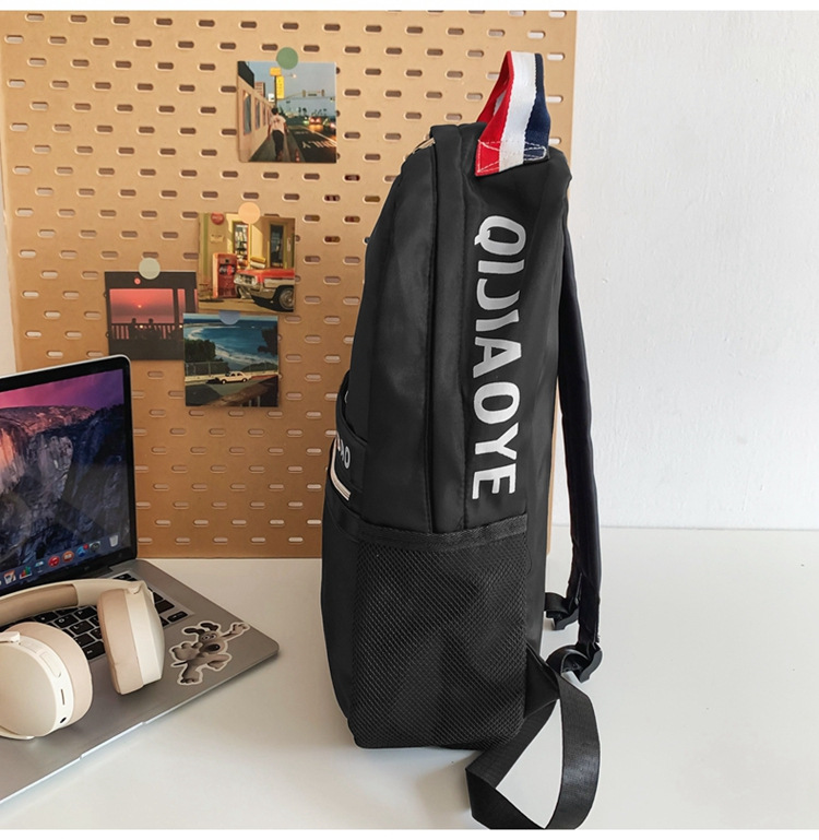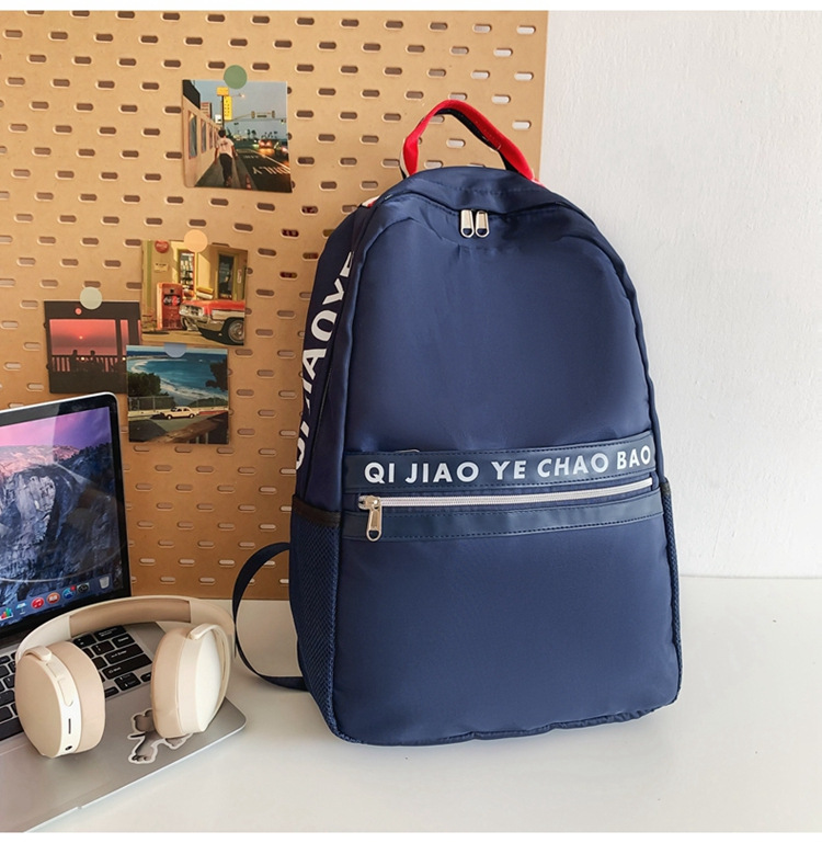 韩版休闲潮流休闲背包批发简约纯色出行字母双肩包日系中学生书包