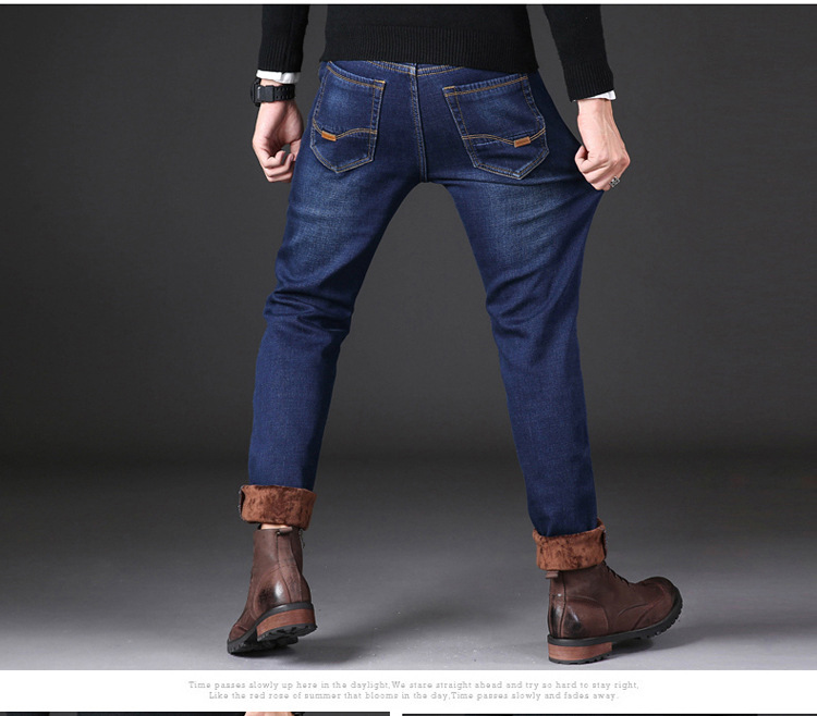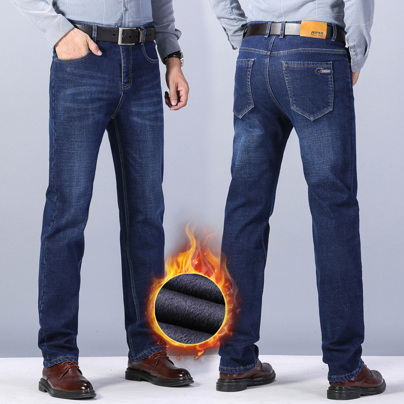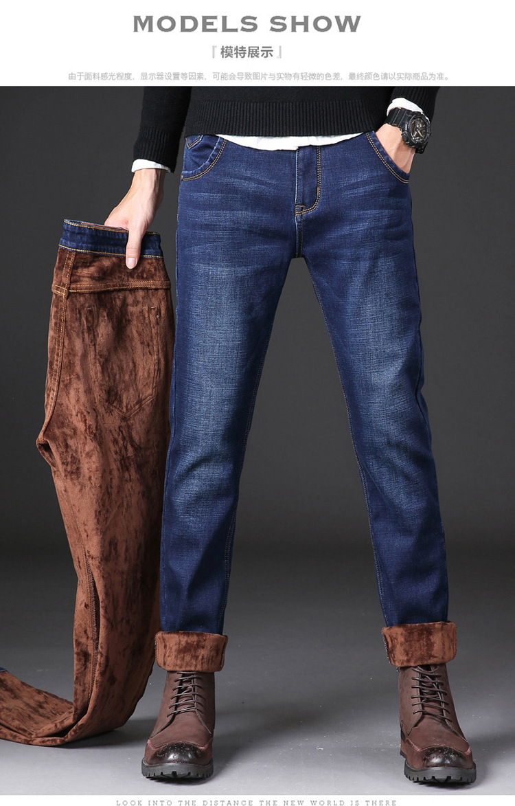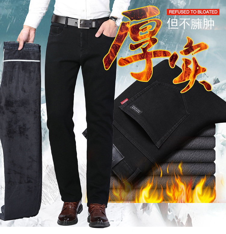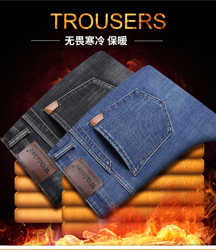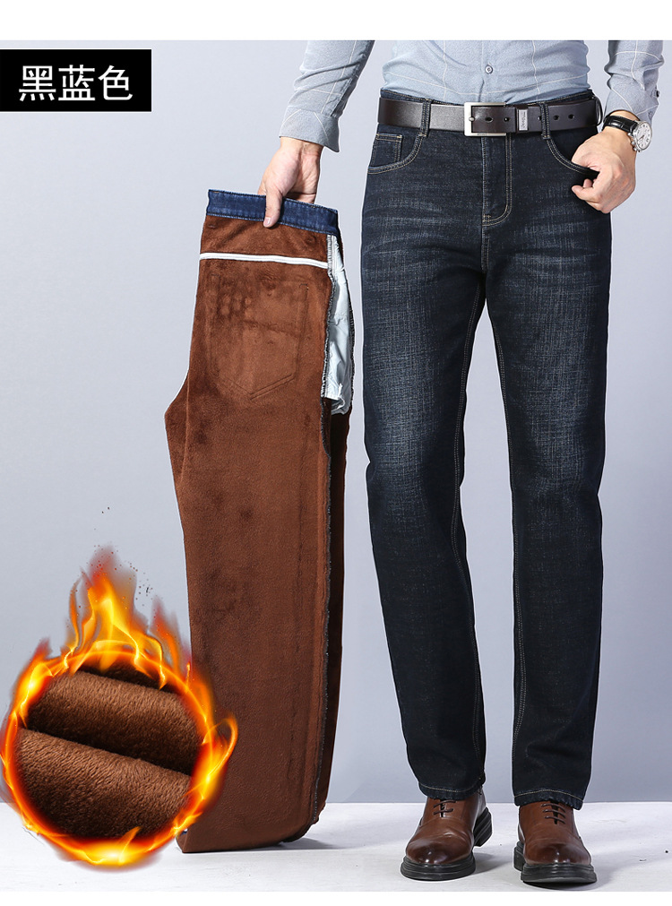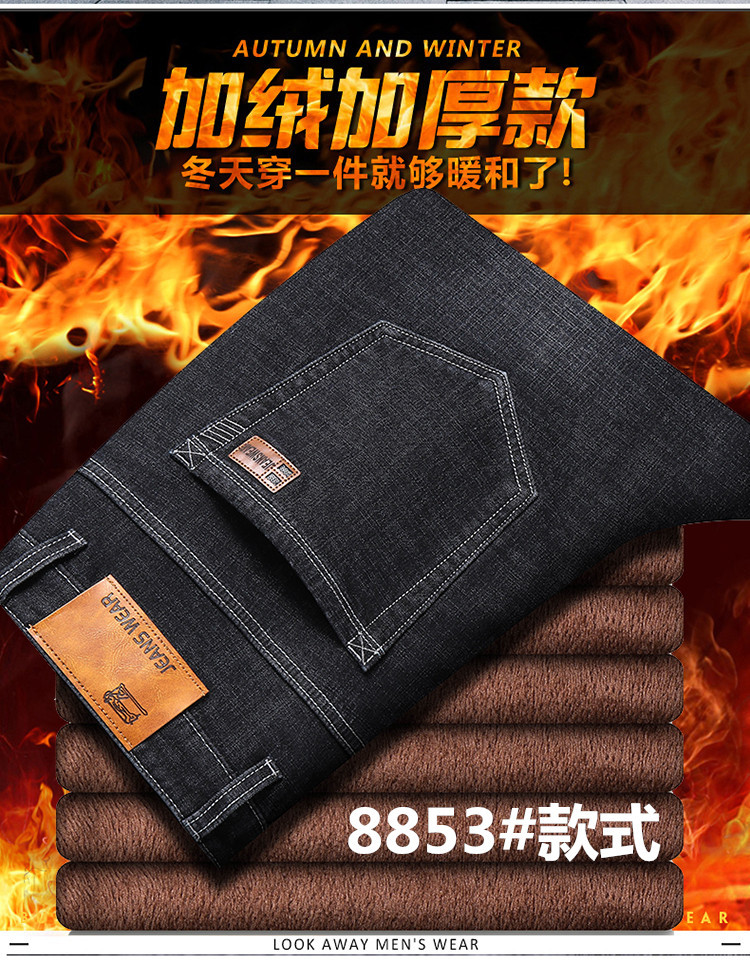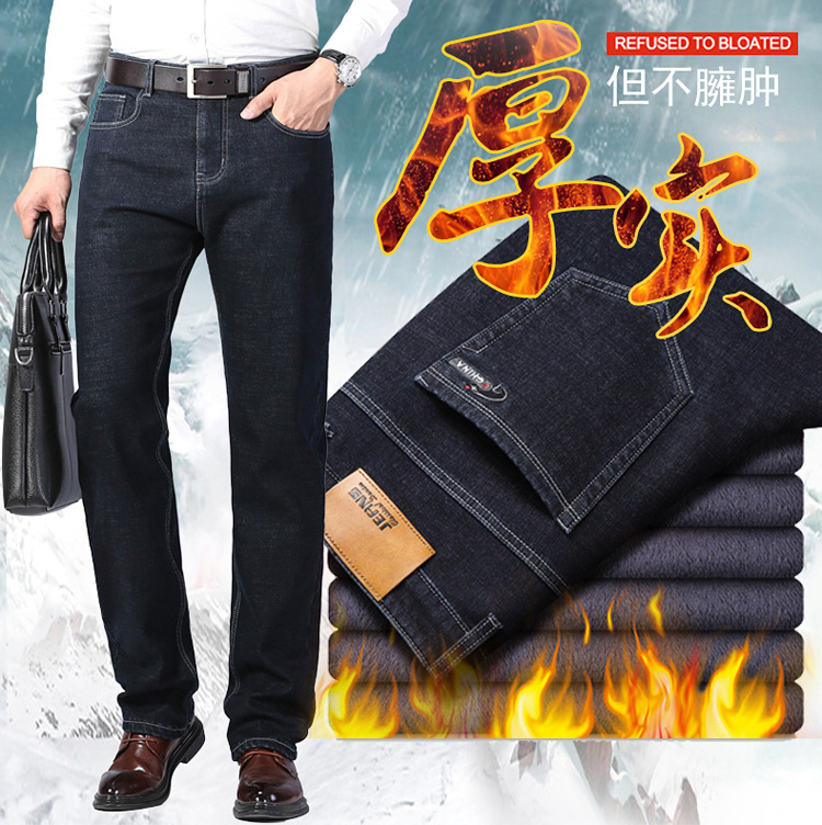 弹力秋冬款加绒加厚牛仔裤男士宽松直筒修身带绒保暖休闲长裤子男