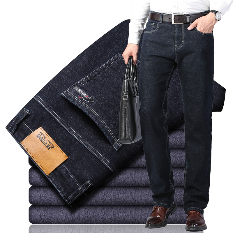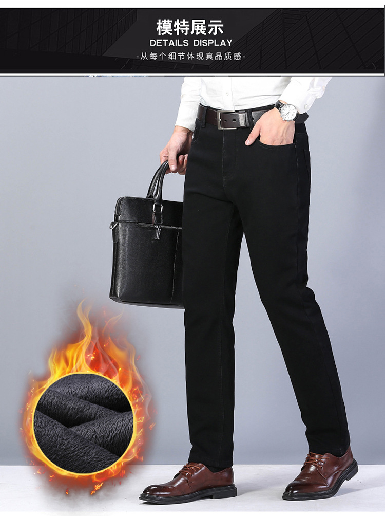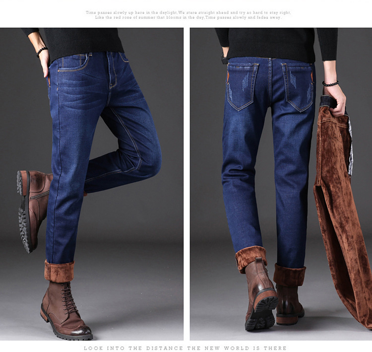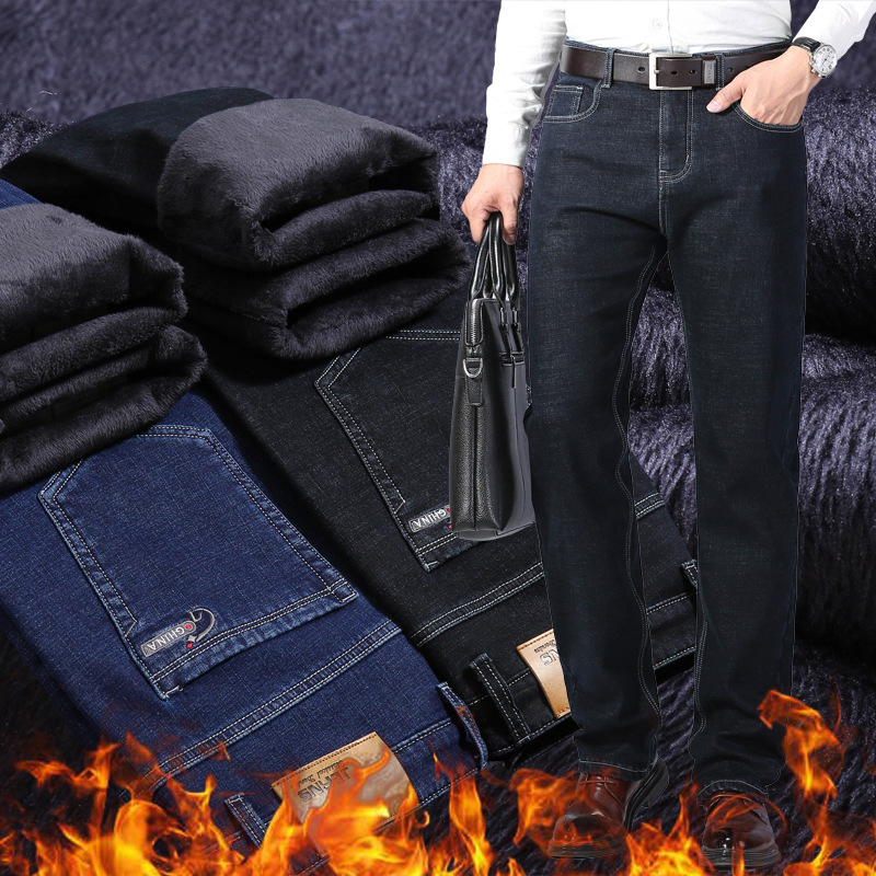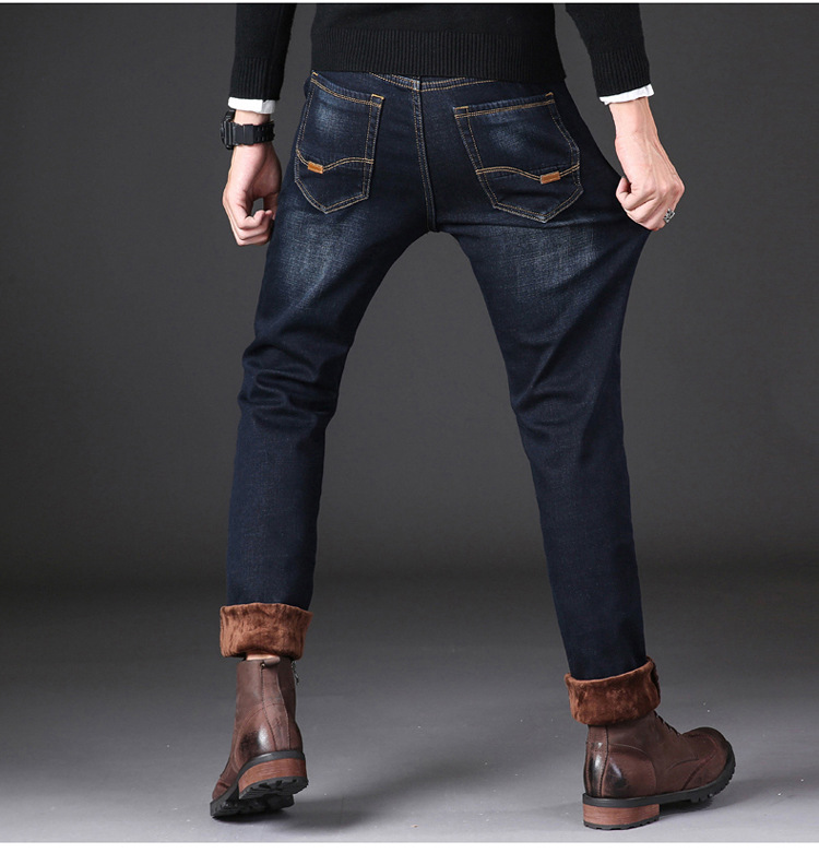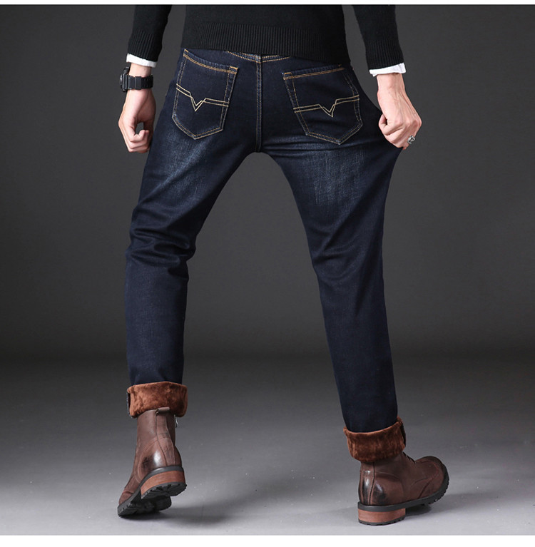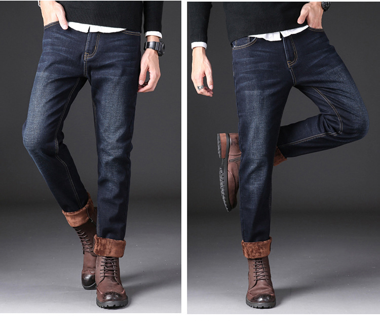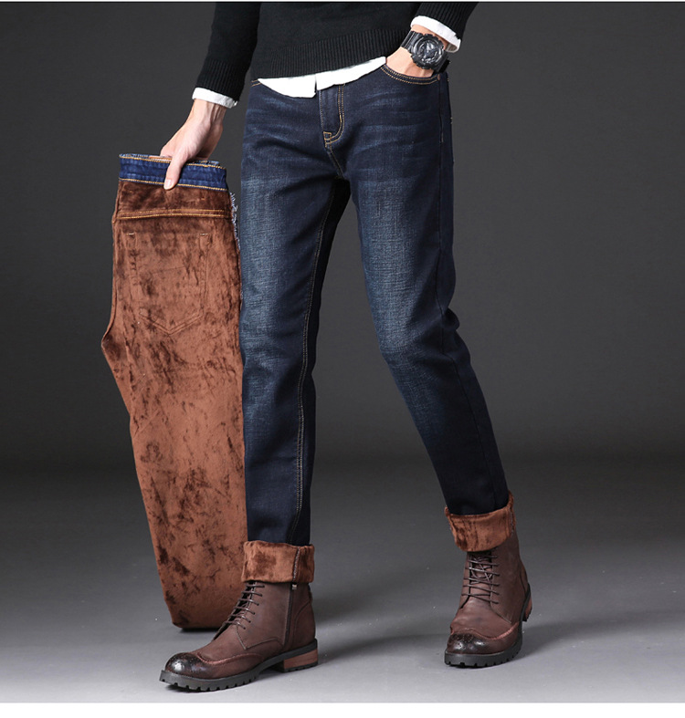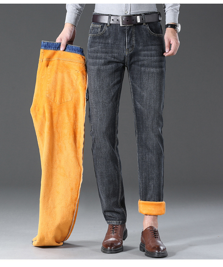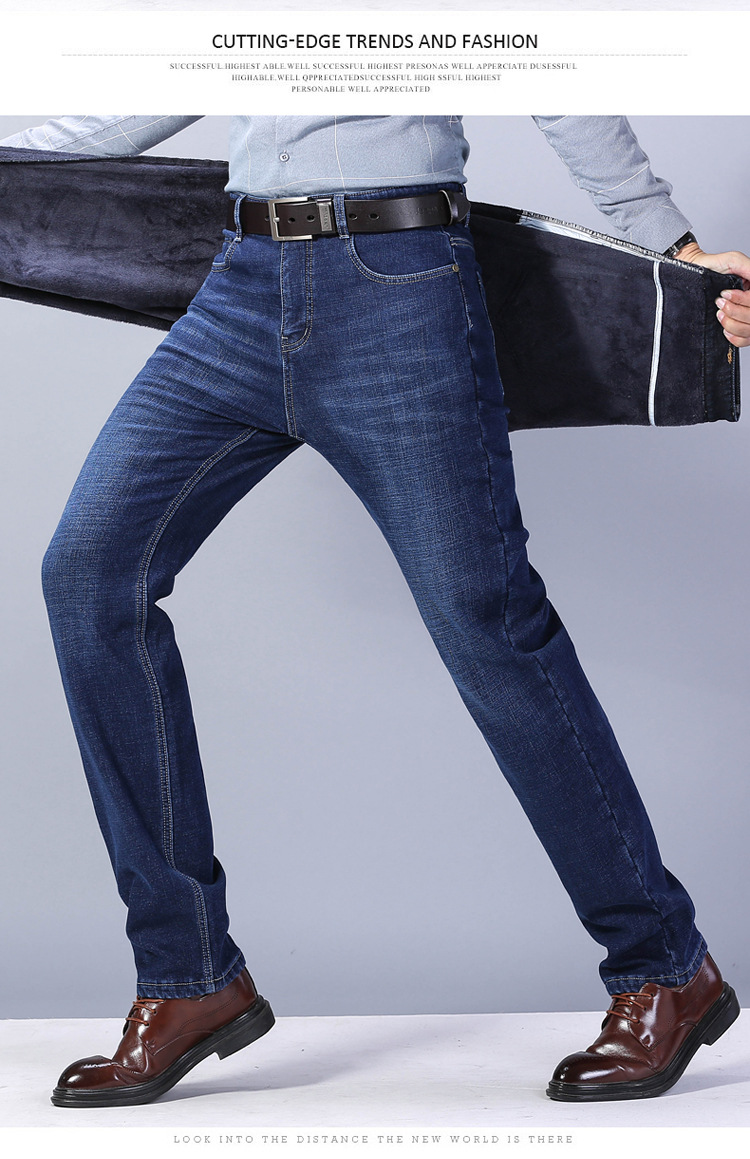 弹力秋冬款加绒加厚牛仔裤男士宽松直筒修身带绒保暖休闲长裤子男
