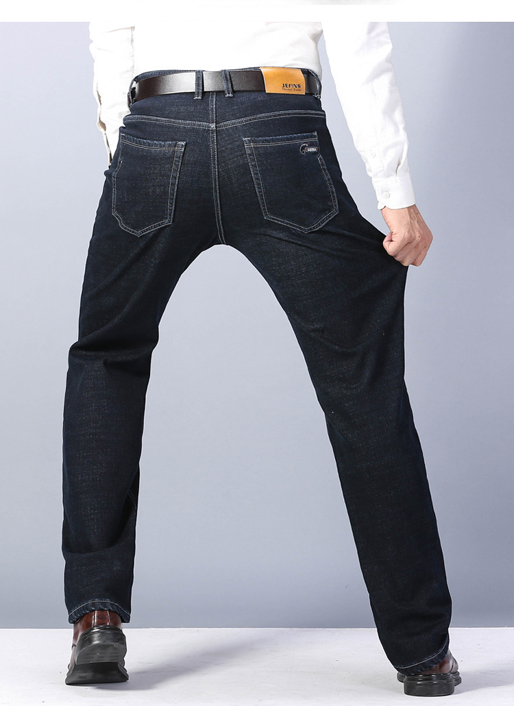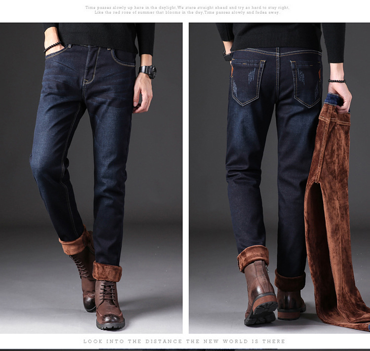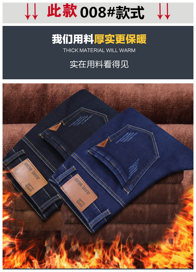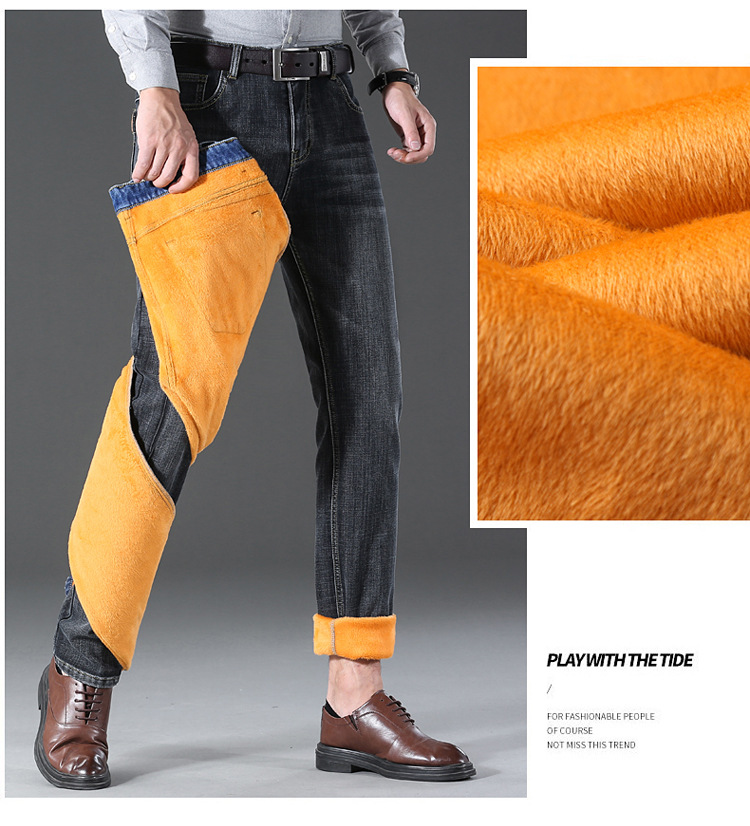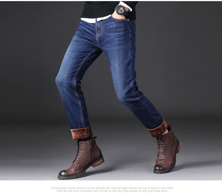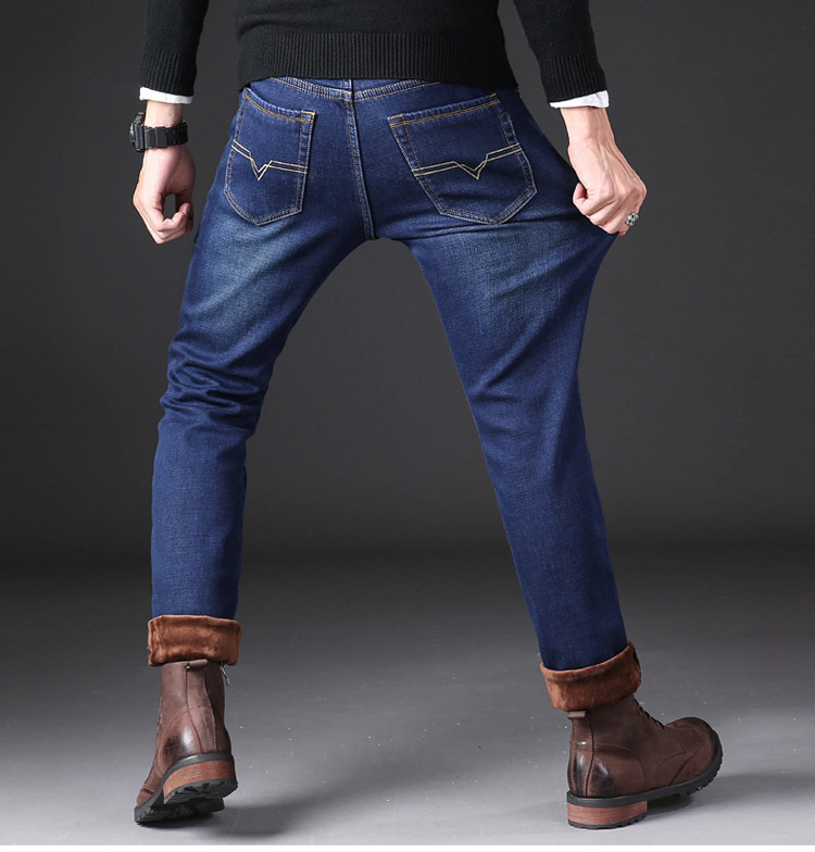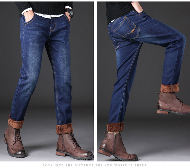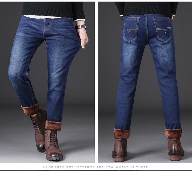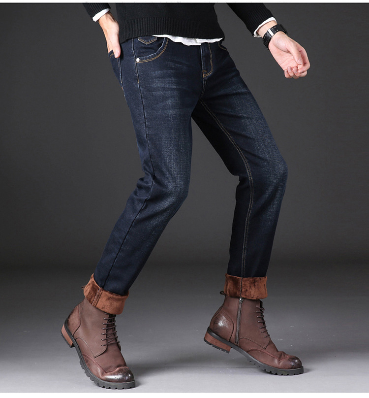 弹力秋冬款加绒加厚牛仔裤男士宽松直筒修身带绒保暖休闲长裤子男