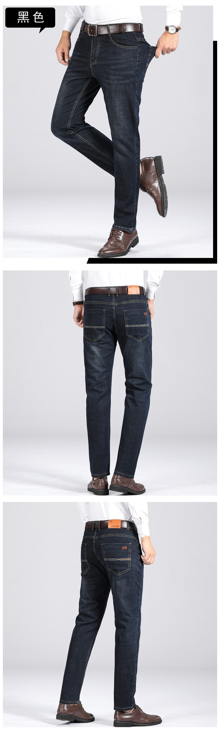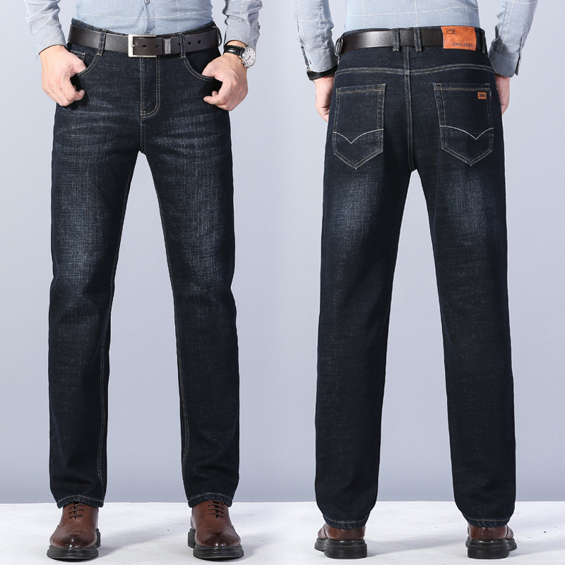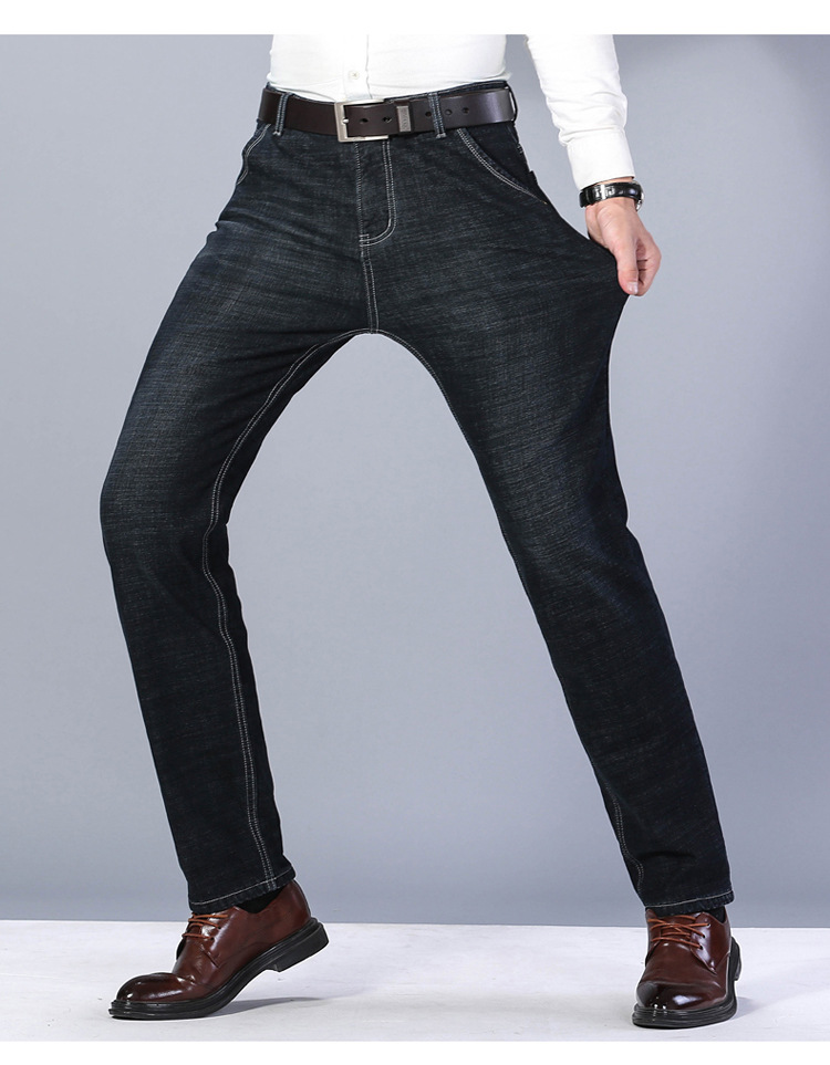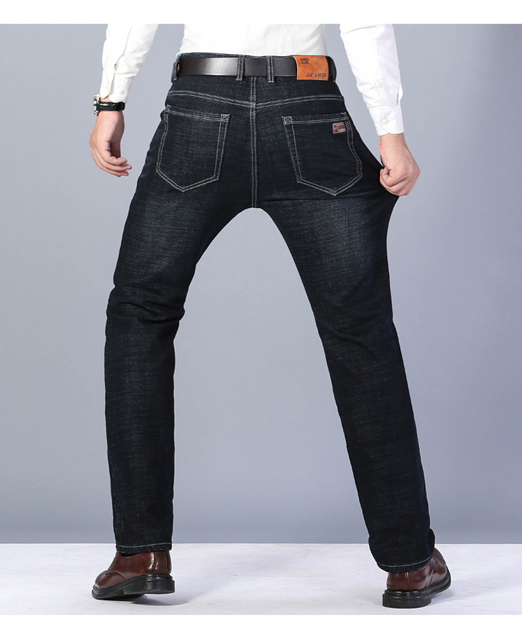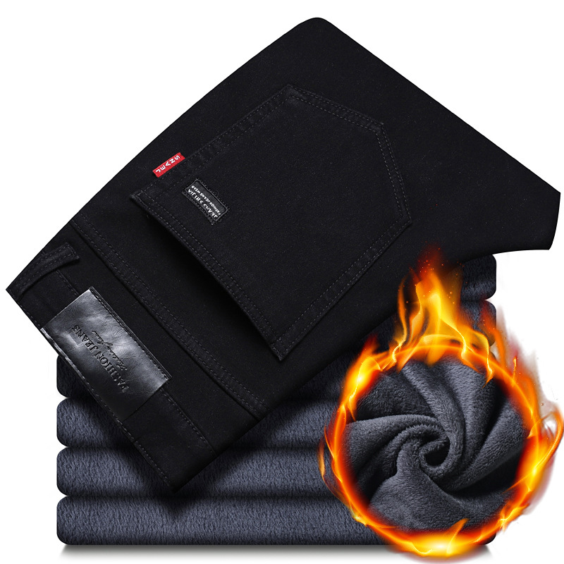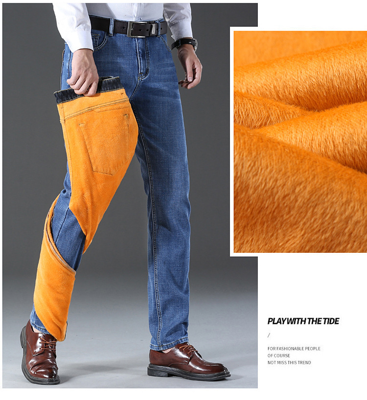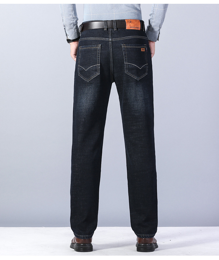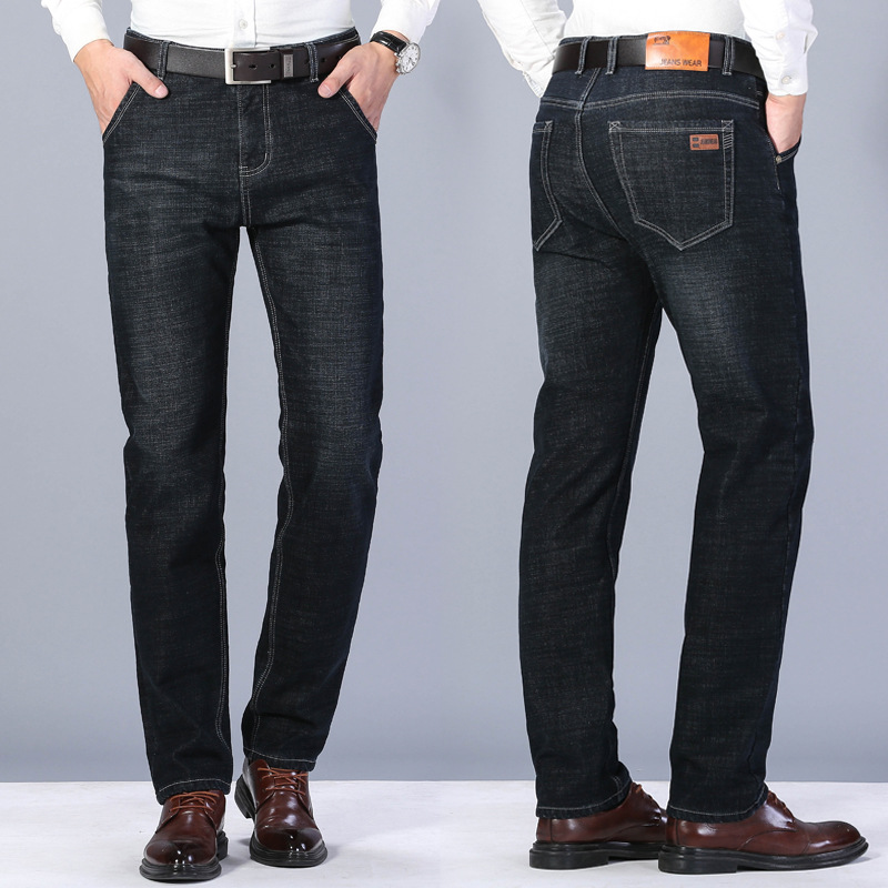 弹力秋冬款加绒加厚牛仔裤男士宽松直筒修身带绒保暖休闲长裤子男