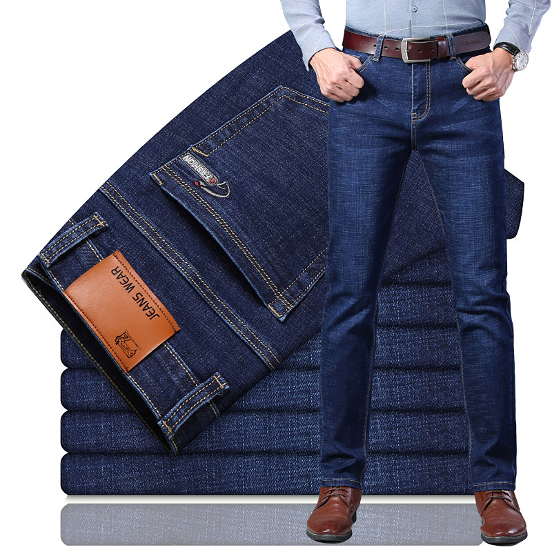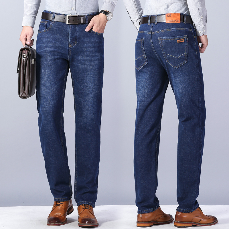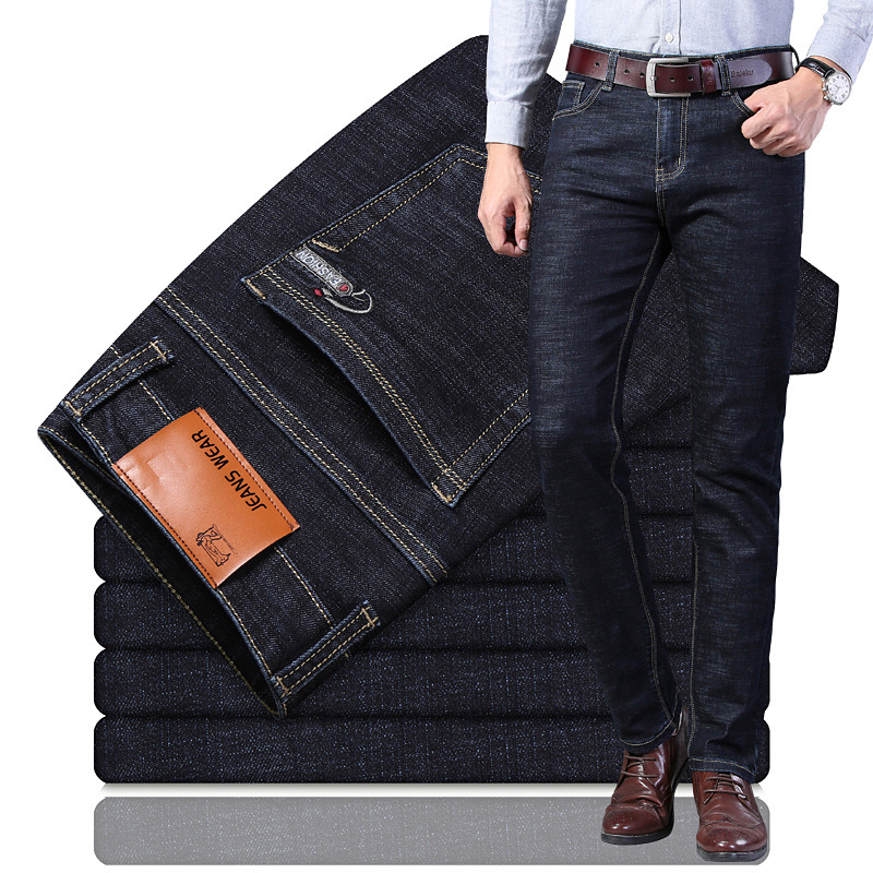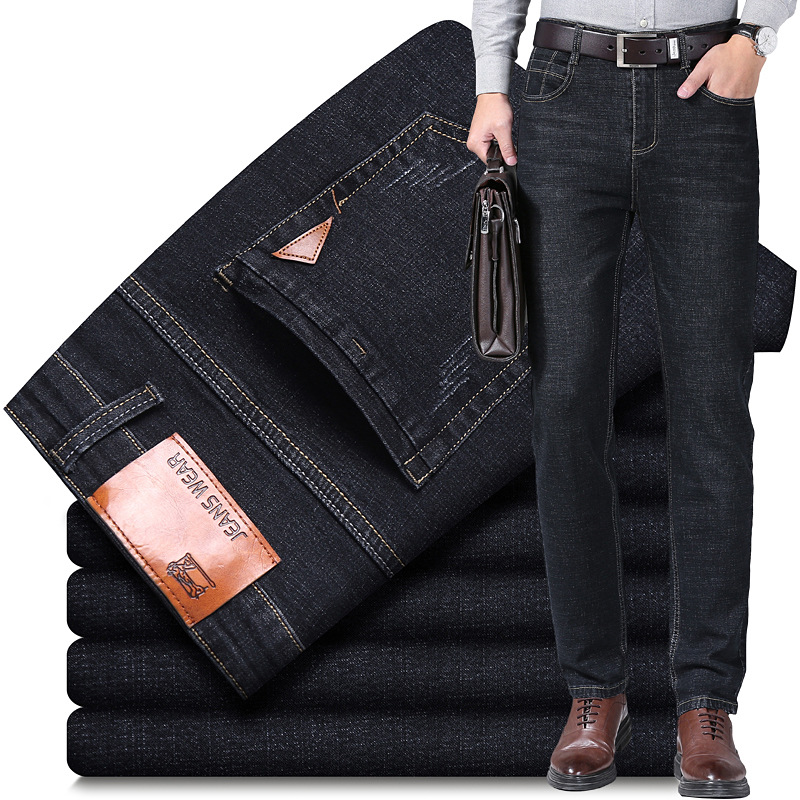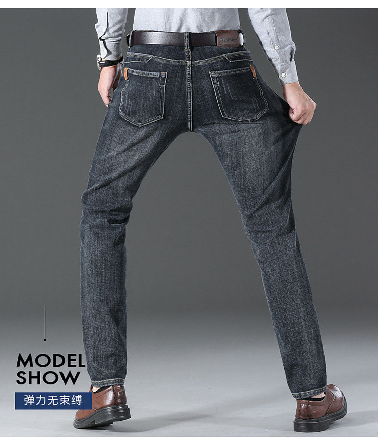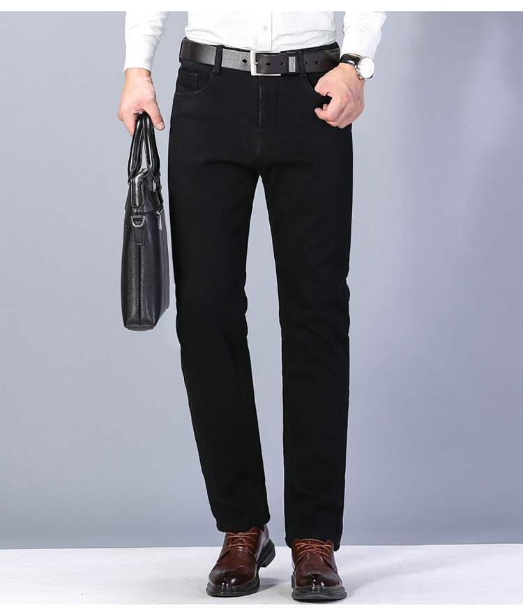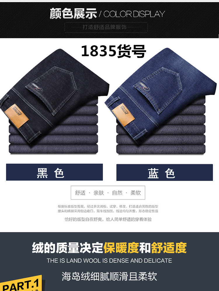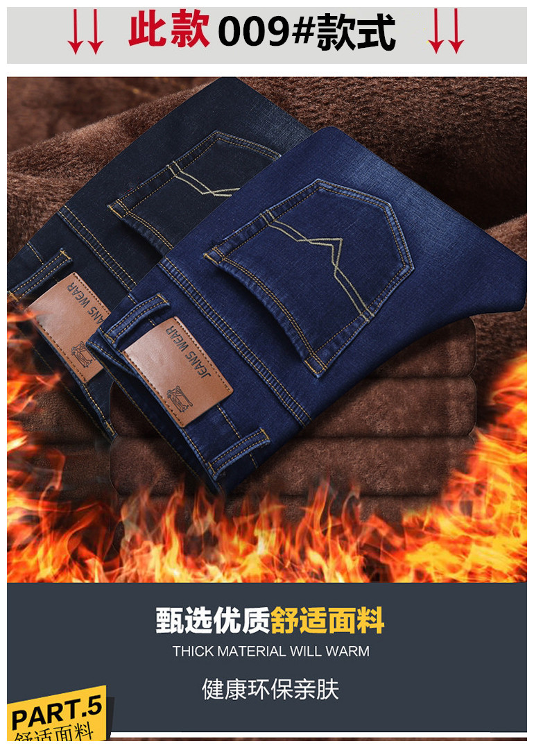 弹力秋冬款加绒加厚牛仔裤男士宽松直筒修身带绒保暖休闲长裤子男