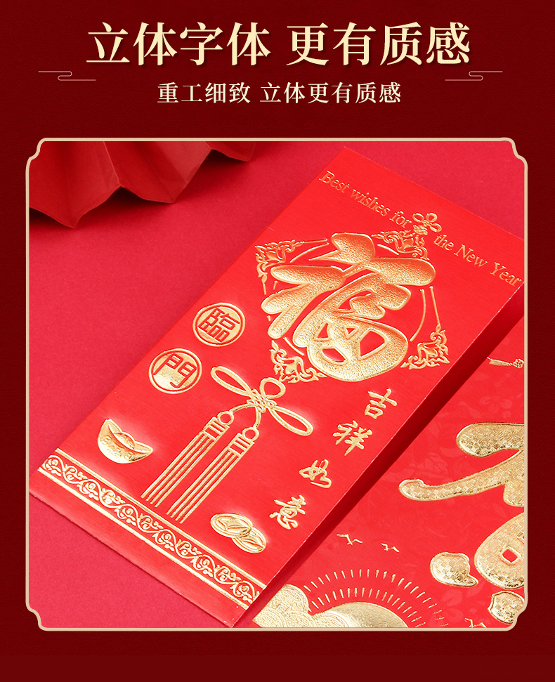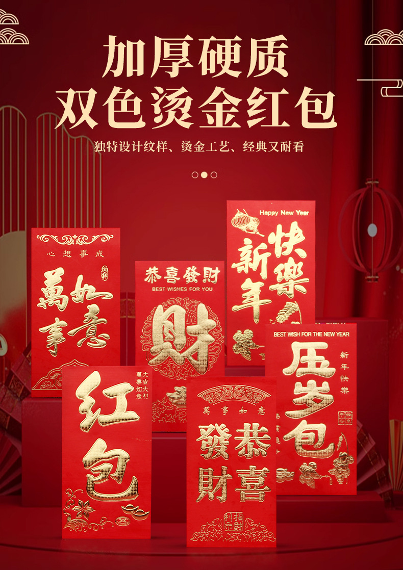红包批发婚礼硬卡纸烫金千元大号新年福喜通用结婚利是封批发