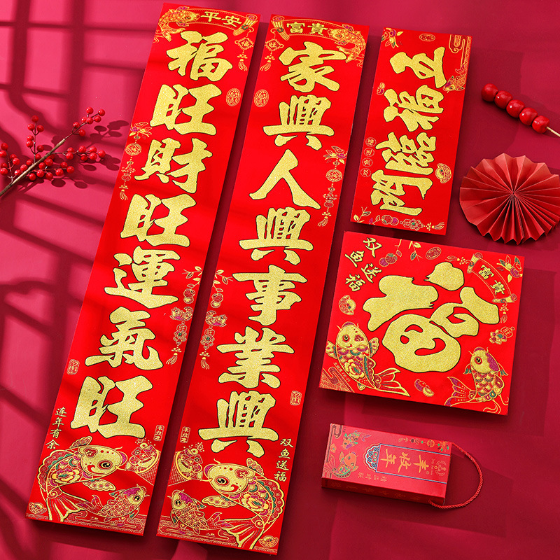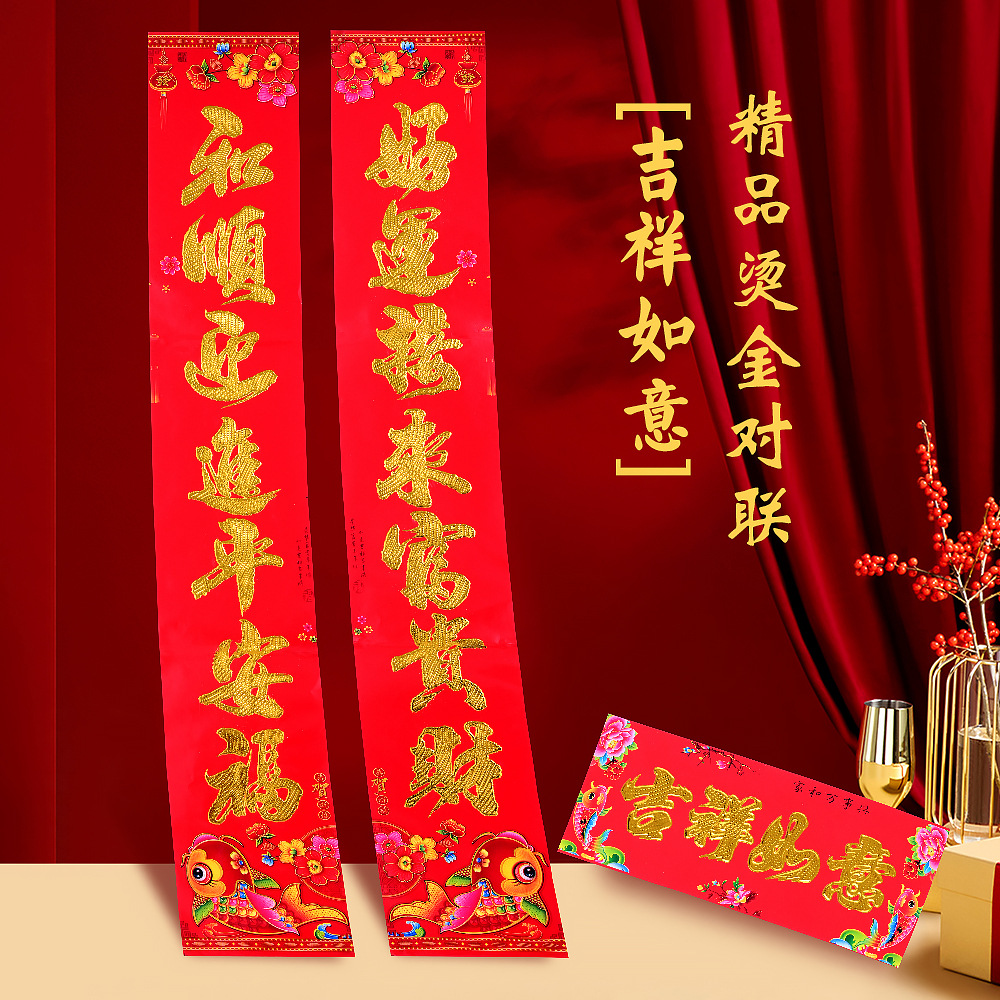 对联批发年新款铜版纸烫金春联春节植绒对联厂家直销