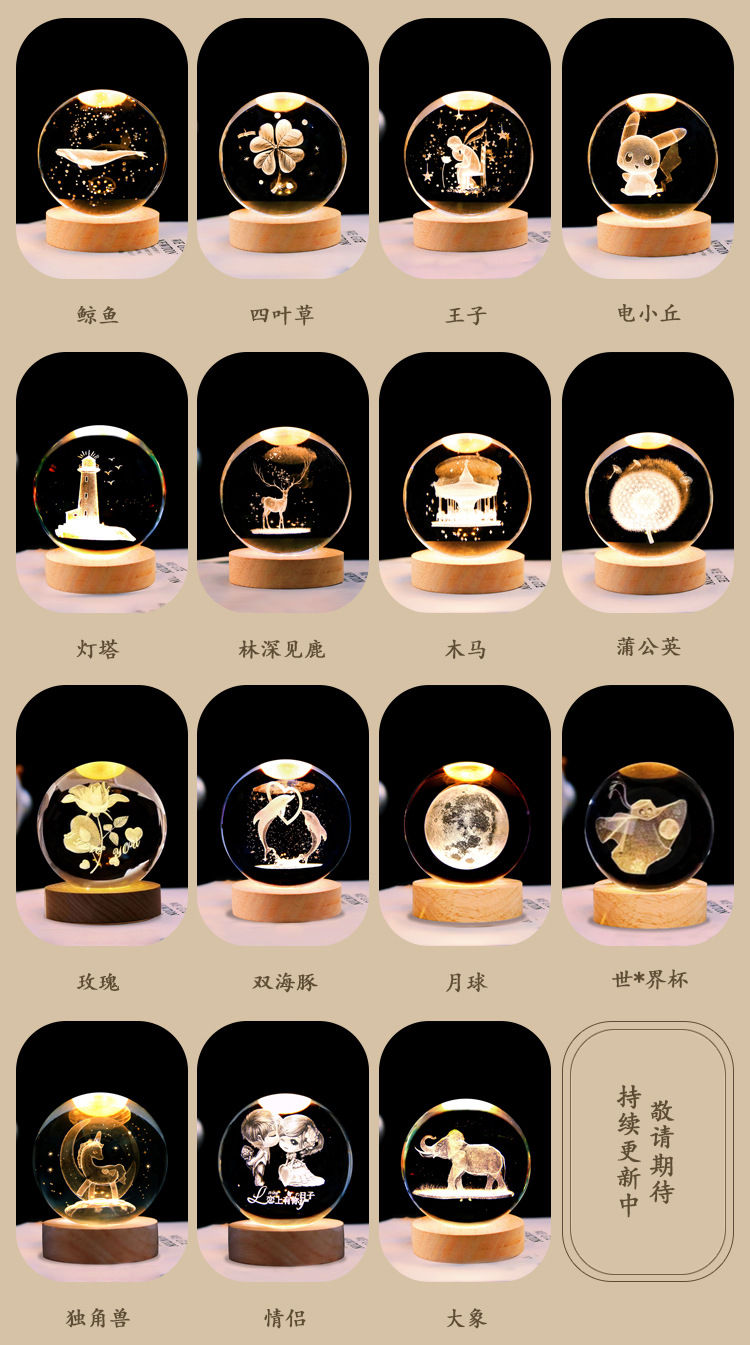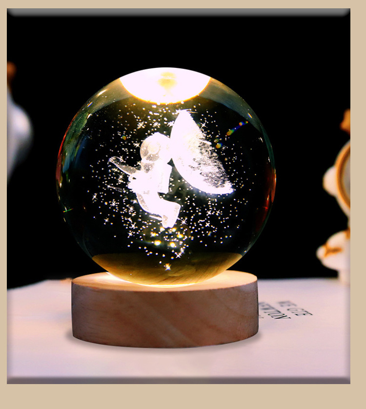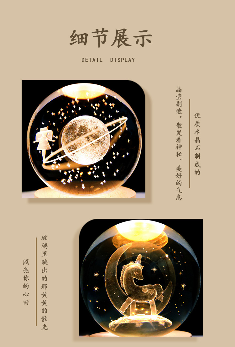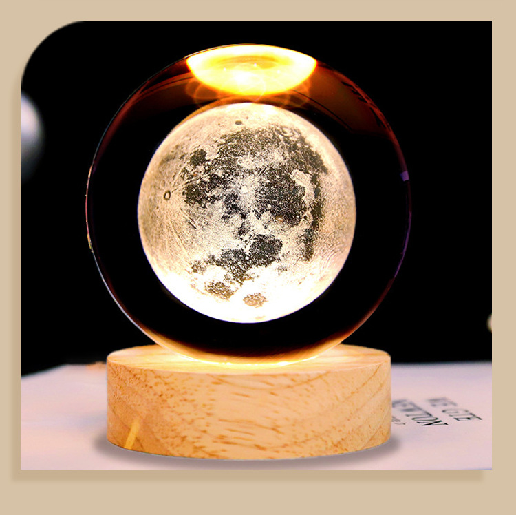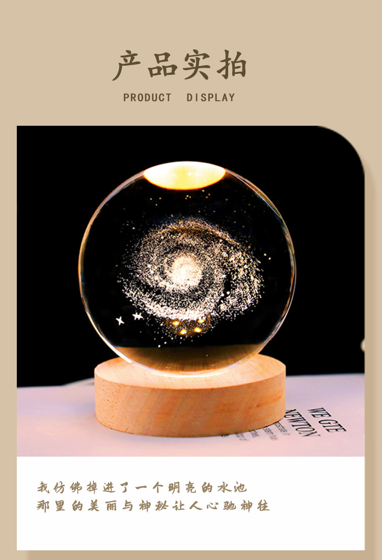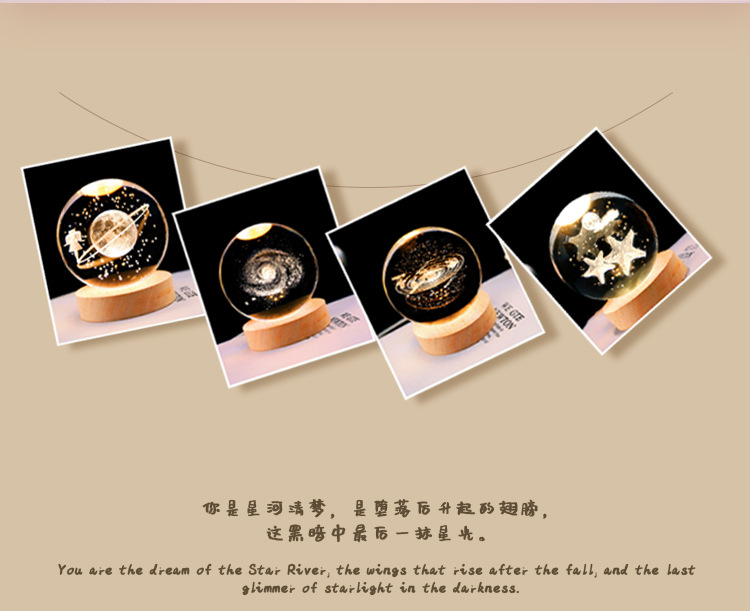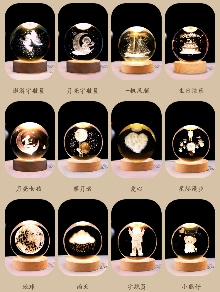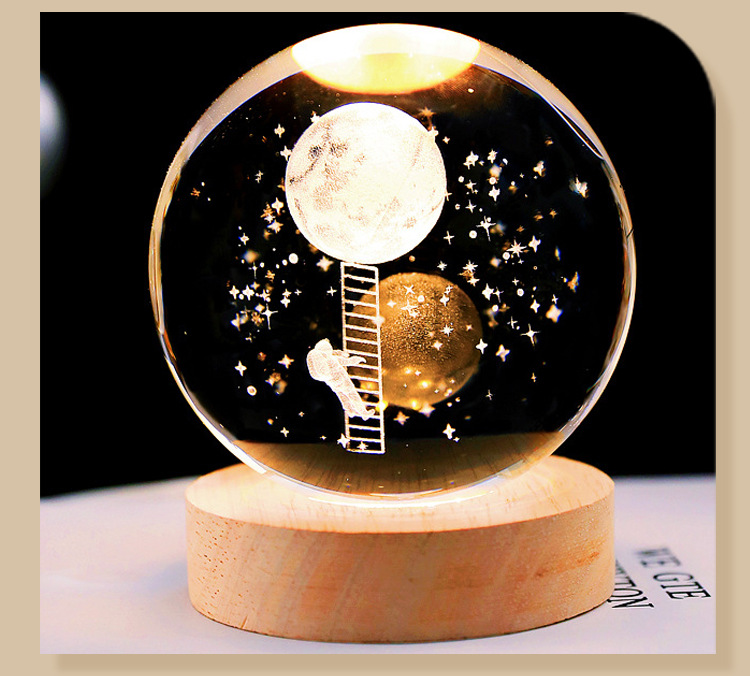 星空宇航员水晶球3d发光内雕小夜灯木质桌面摆件女生同学生日礼物