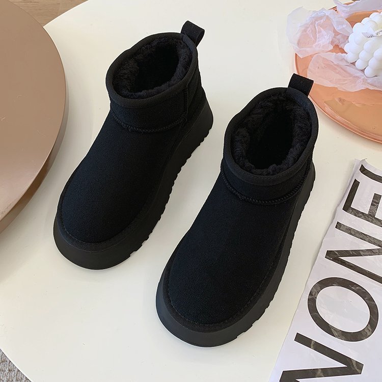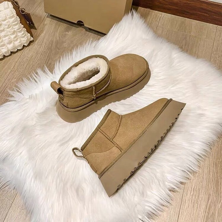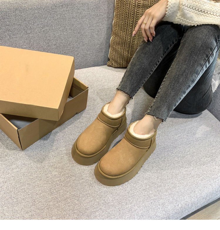 【优诗莱】真皮毛一体厚底防滑雪地靴女2023冬季加绒加厚保暖短靴