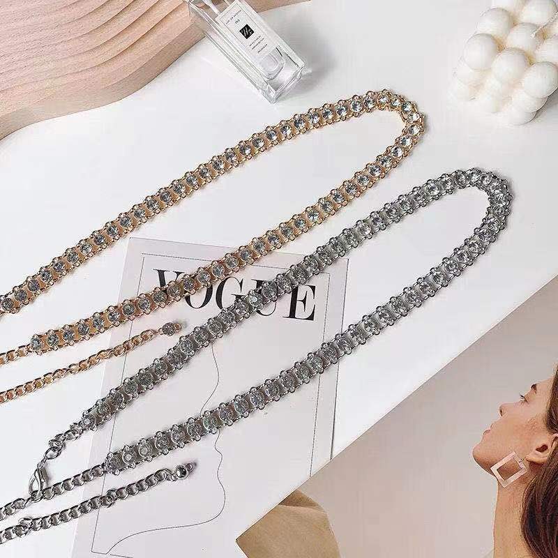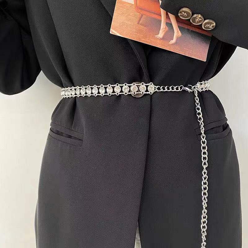 欧美朋克水钻镶嵌腰链女链条ins时尚百搭细腰链装饰裙子西装皮带