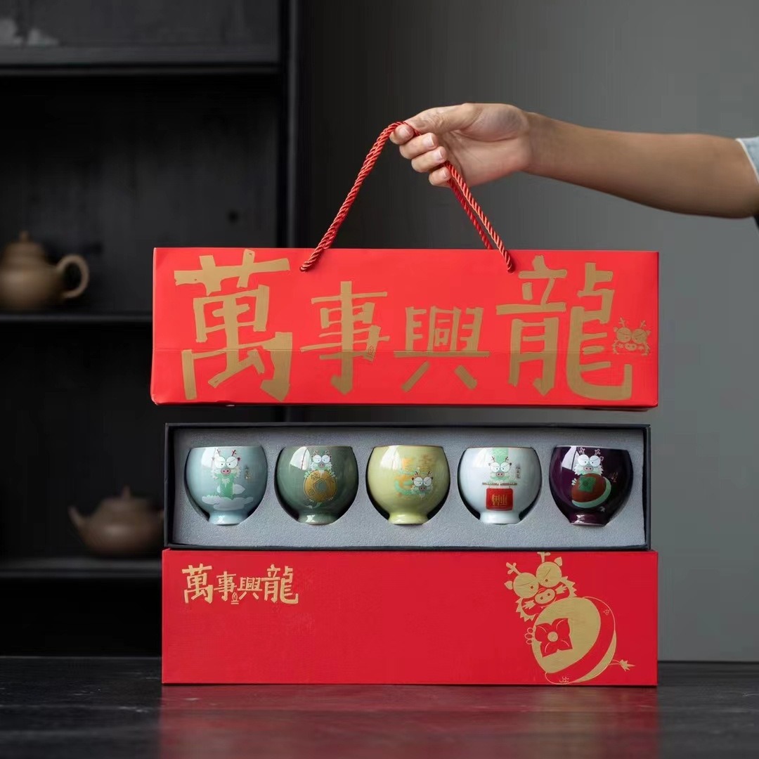 龙年品茗杯主人杯茶碗汝窑单杯茶盏功夫茶具茶杯礼盒装陶瓷送礼品