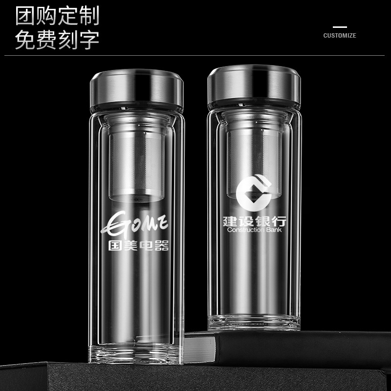智能双层玻璃水杯男士家用便捷泡茶杯子大容量耐高温茶水分离茶杯