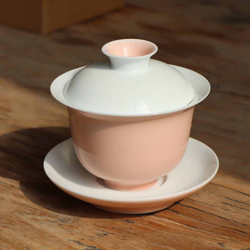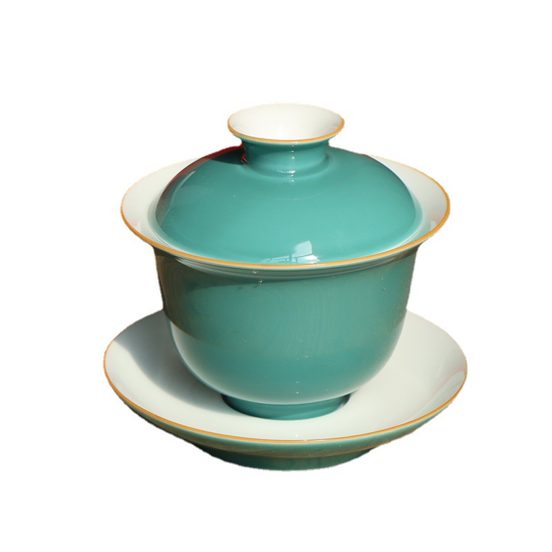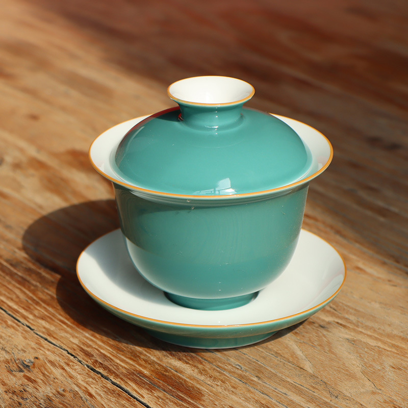 色釉黄色白瓷盖碗大号功夫三才茶碗陶瓷茶具泡茶杯敬茶杯