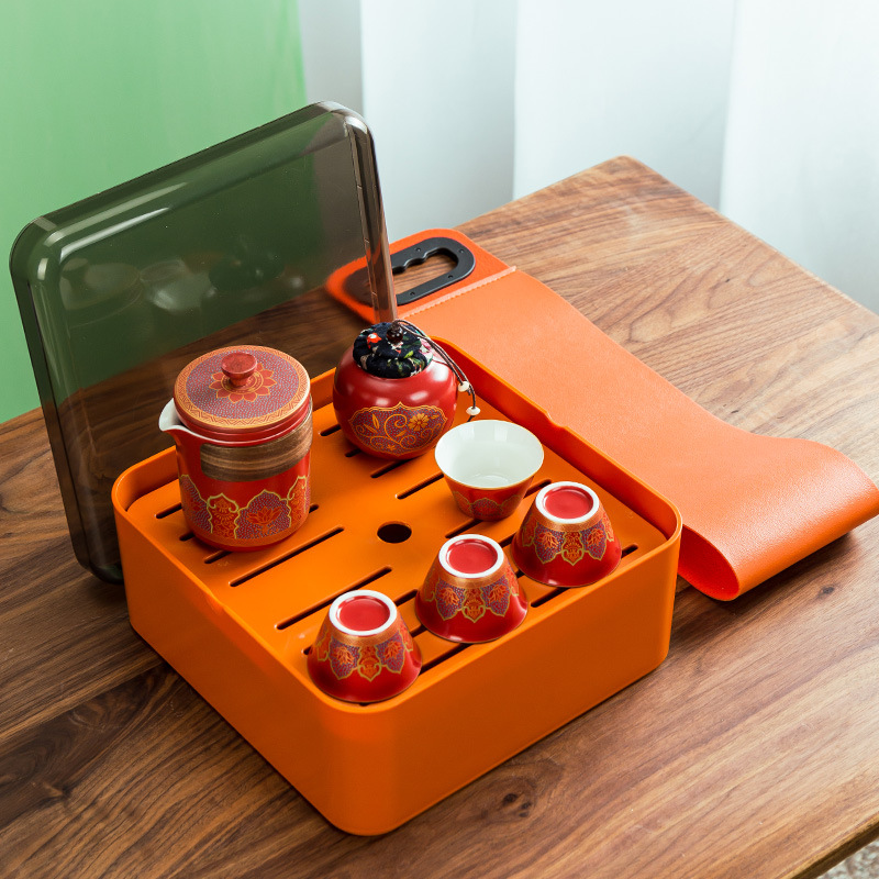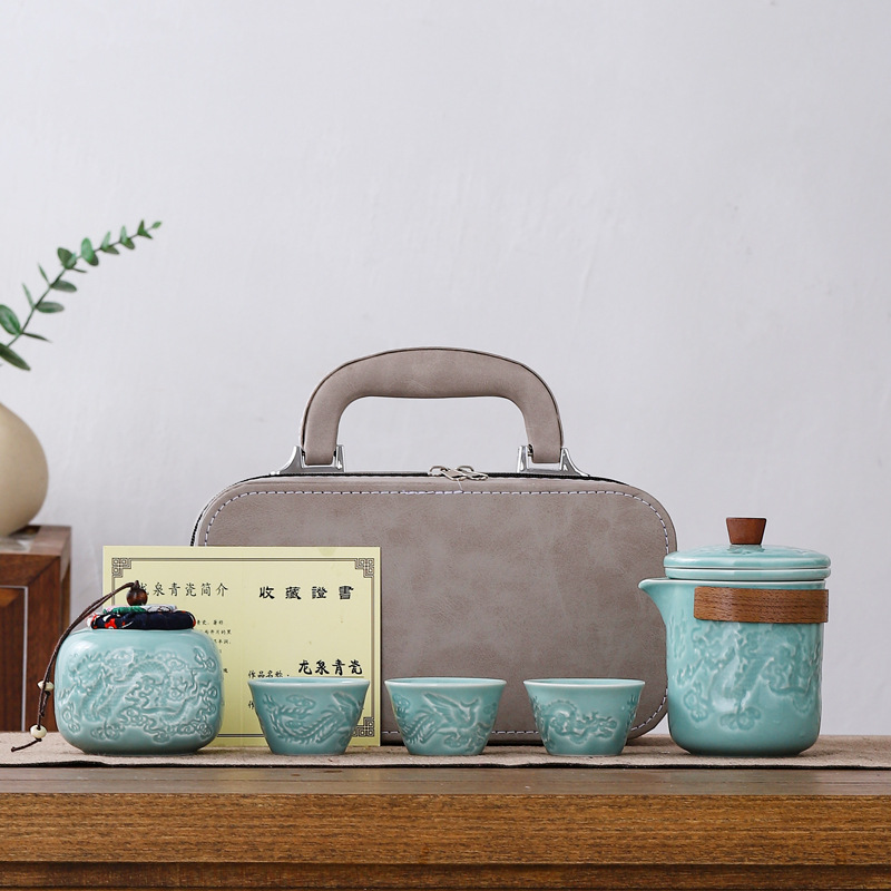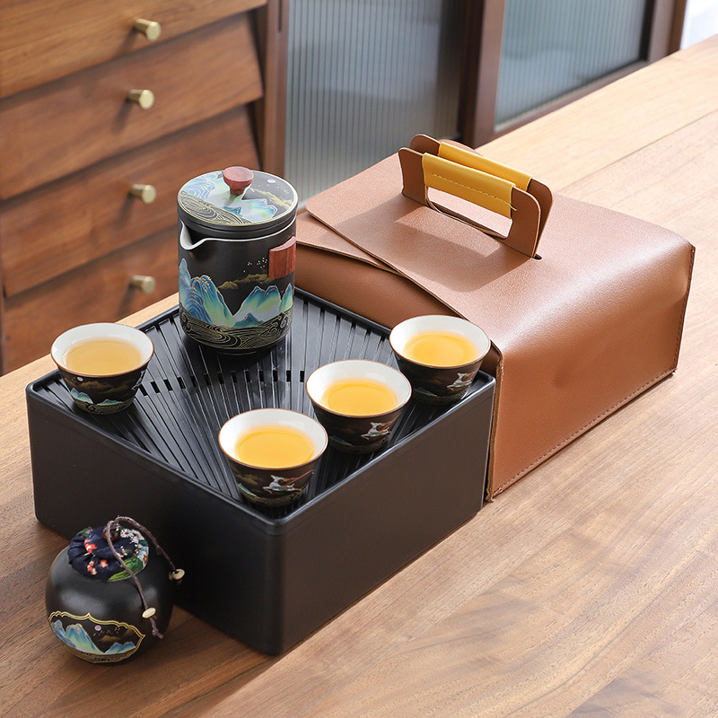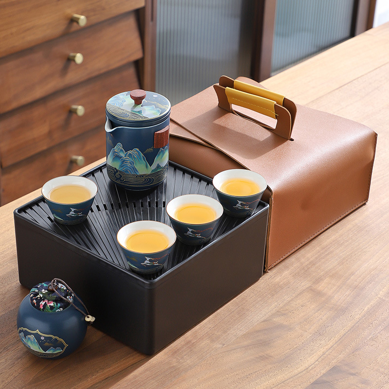 礼品茶具便携式快客杯一壶三杯随身泡茶壶茶杯小套装户外旅行茶具