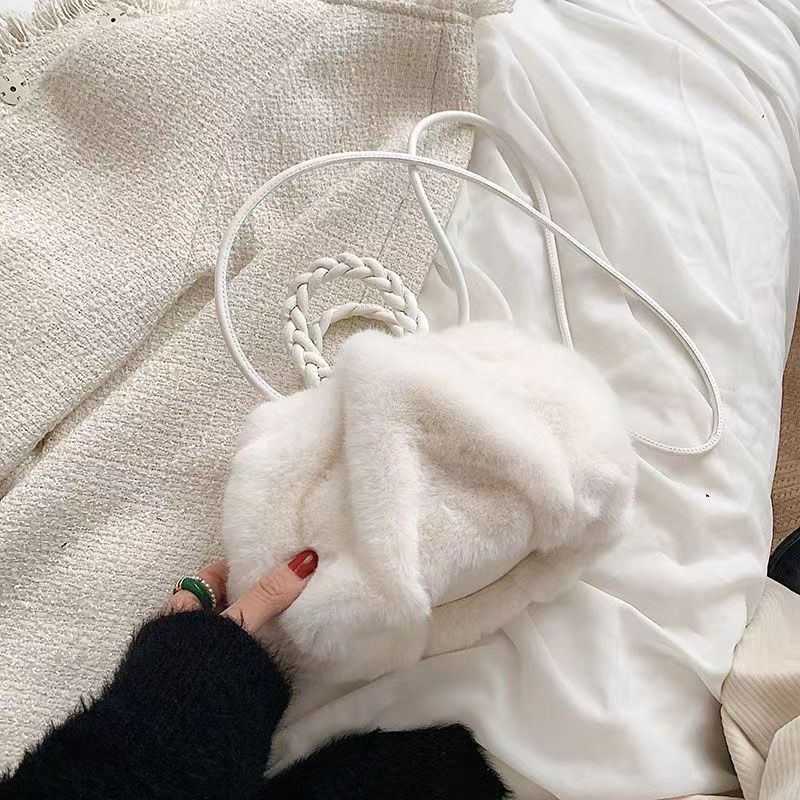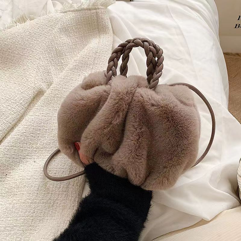 斜挎包小众南瓜包新款手提仿毛包包时尚百搭云朵褶皱包包
