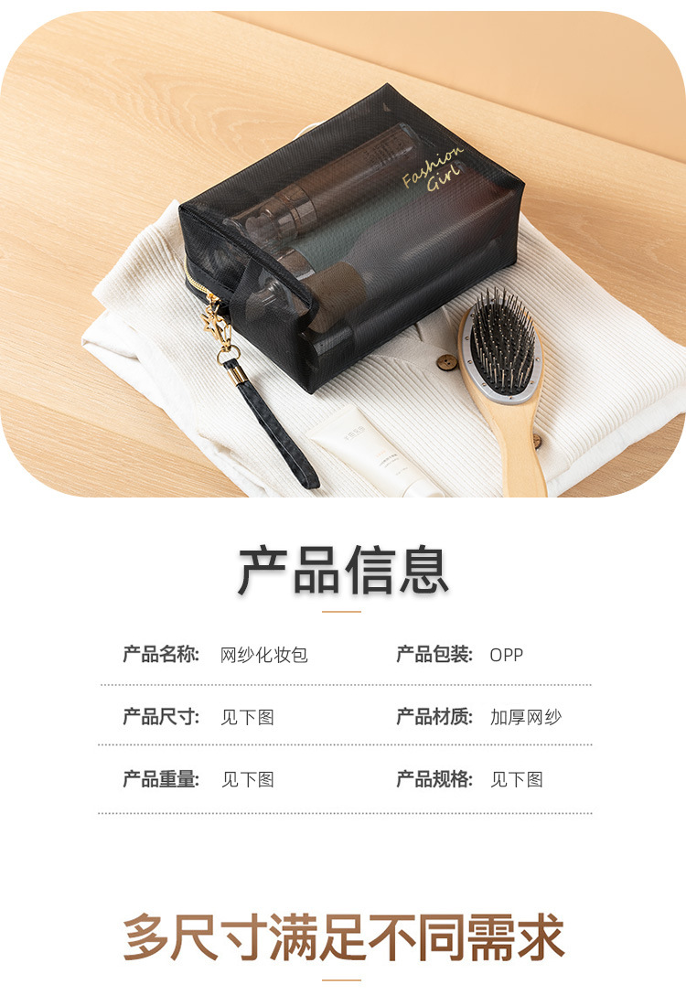 新款网纱化妆包旅行化妆品收纳袋大容量手提透明网布洗漱包定LOGO