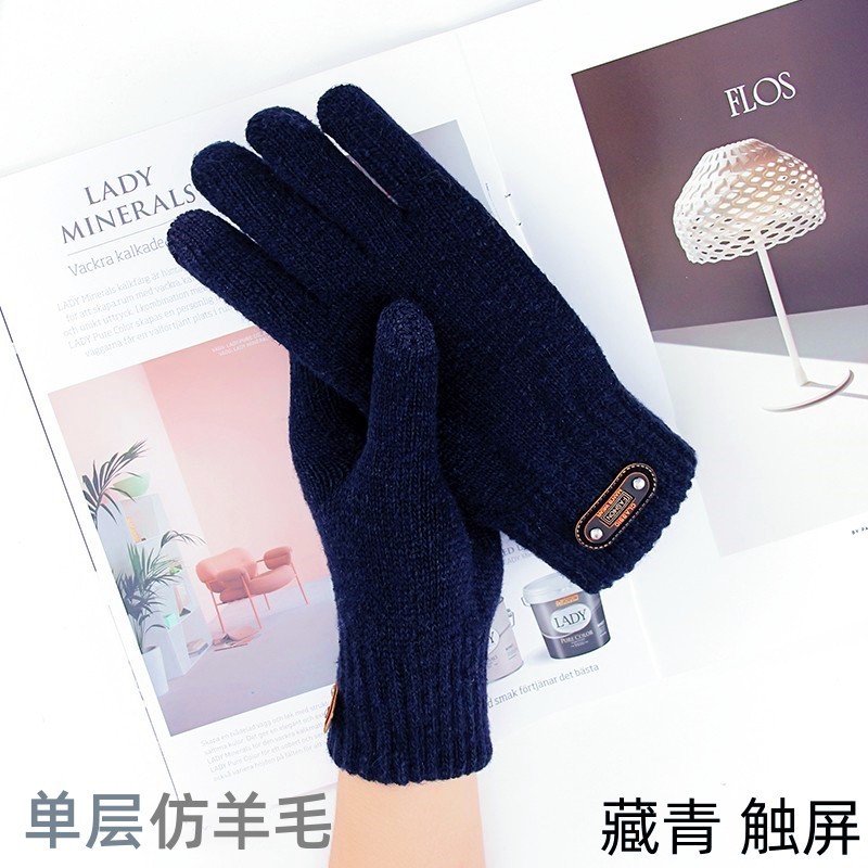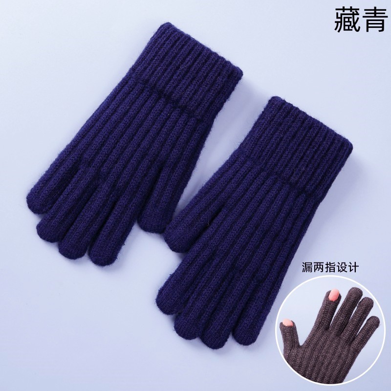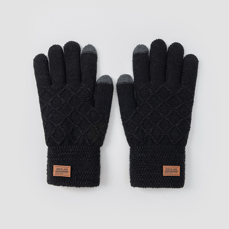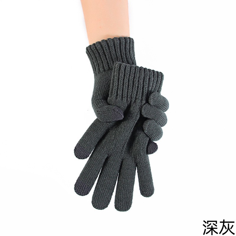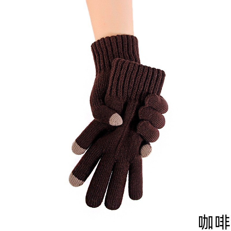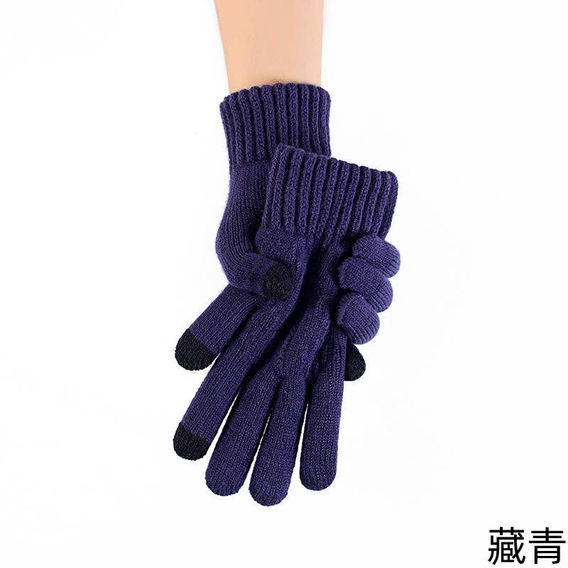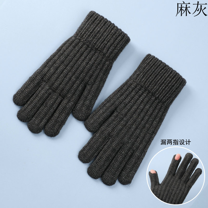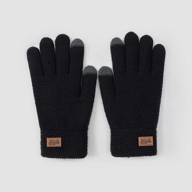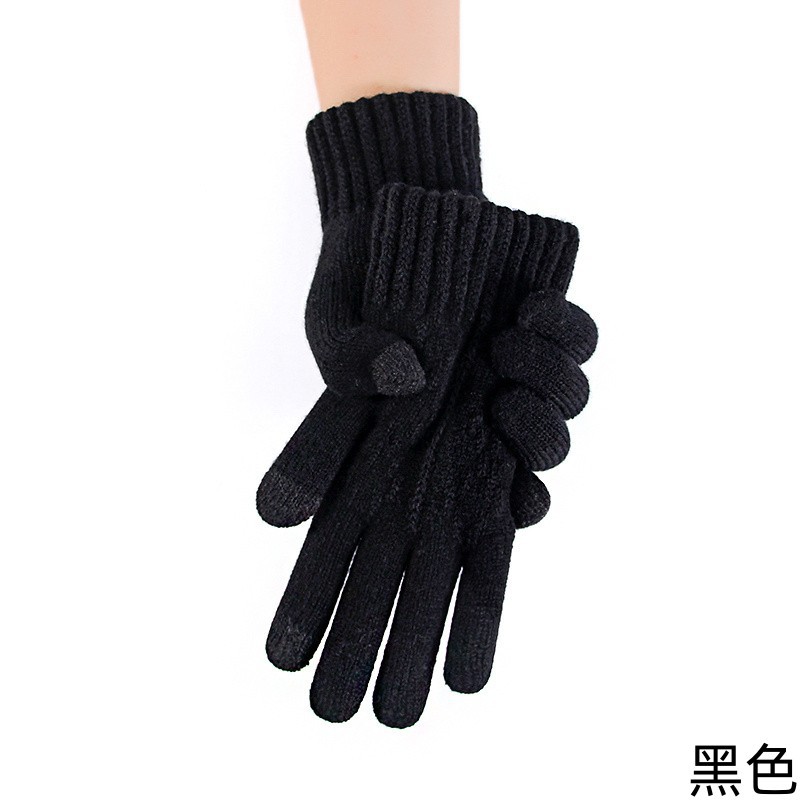 男士触摸屏手套秋冬季针织防寒保暖骑行加绒加厚骑车批发毛线学生
