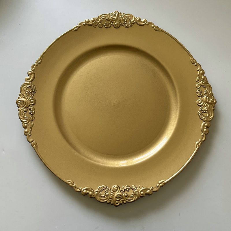 批发婚礼酒店派对龙头盘圆形金色喷漆装饰盘聚会活动餐点龙头盘
