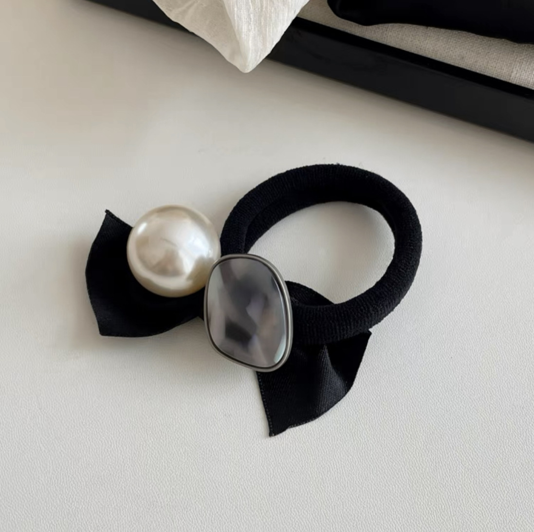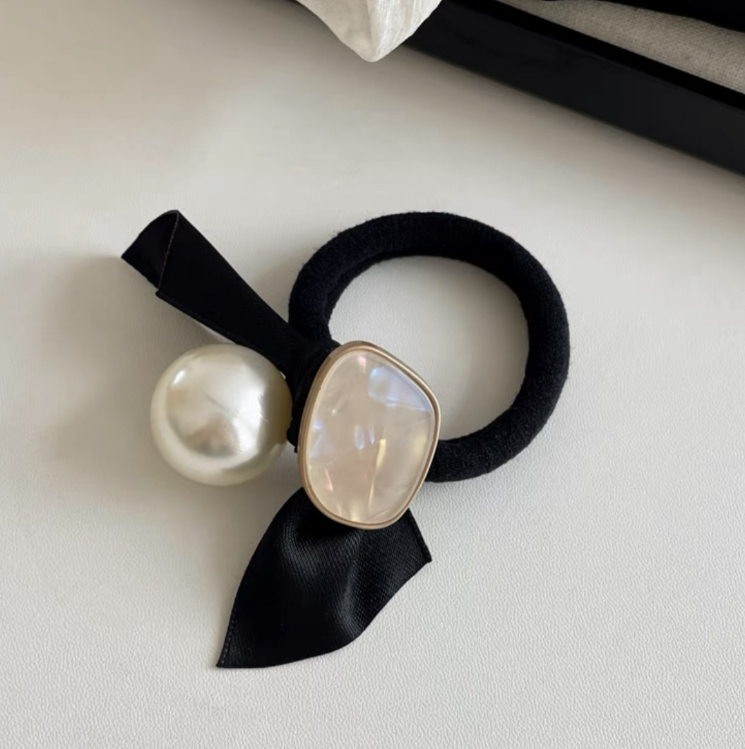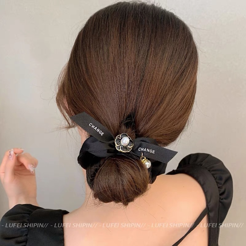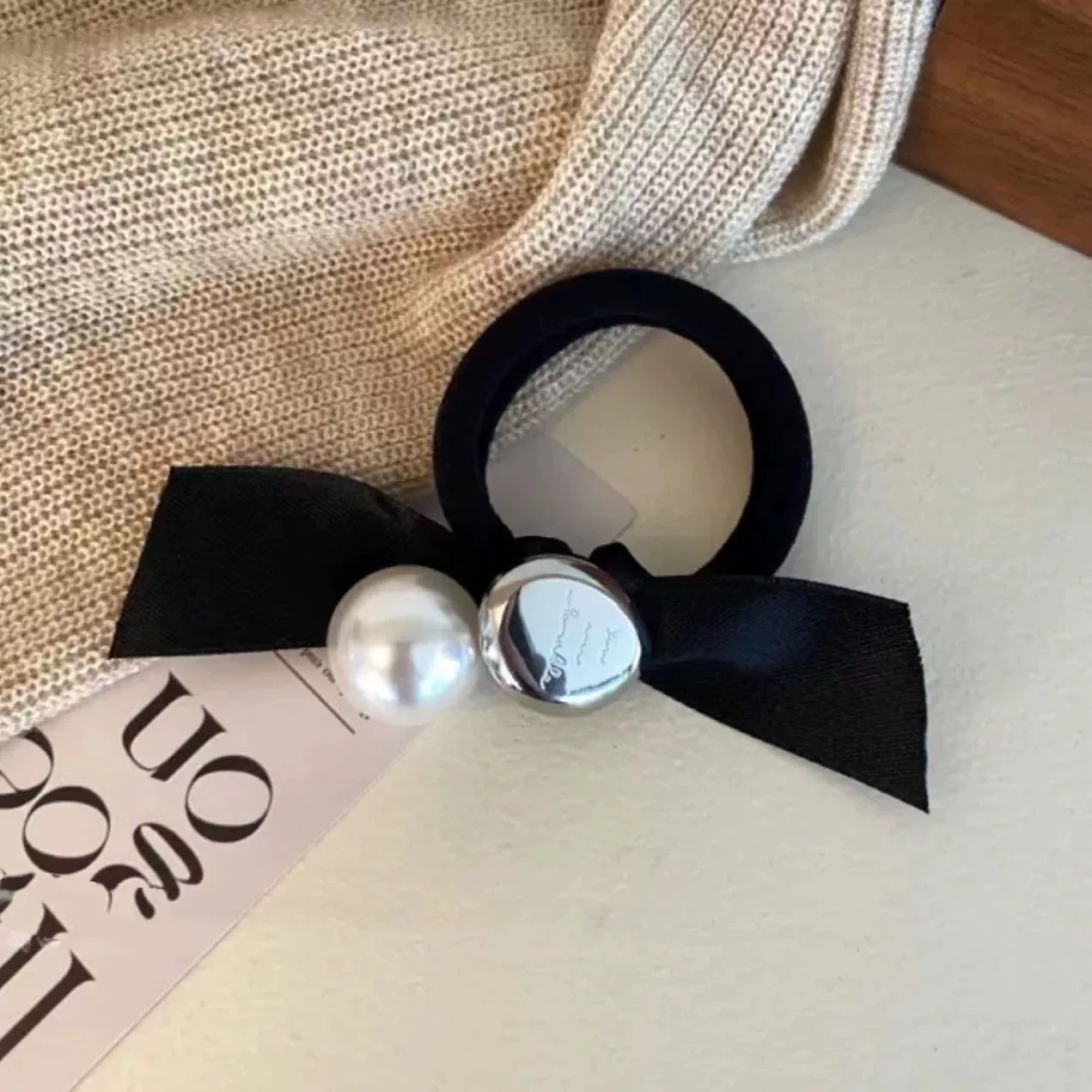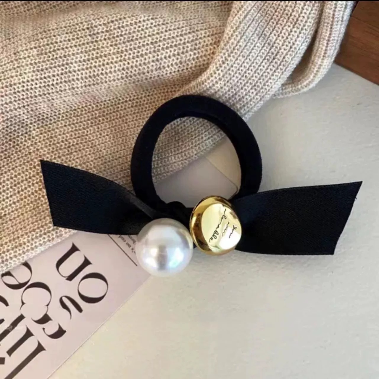 法式小香风蝴蝶结珍珠头绳2023新款韩国高级感发圈皮筋女头饰发绳