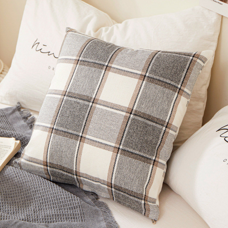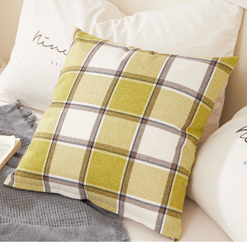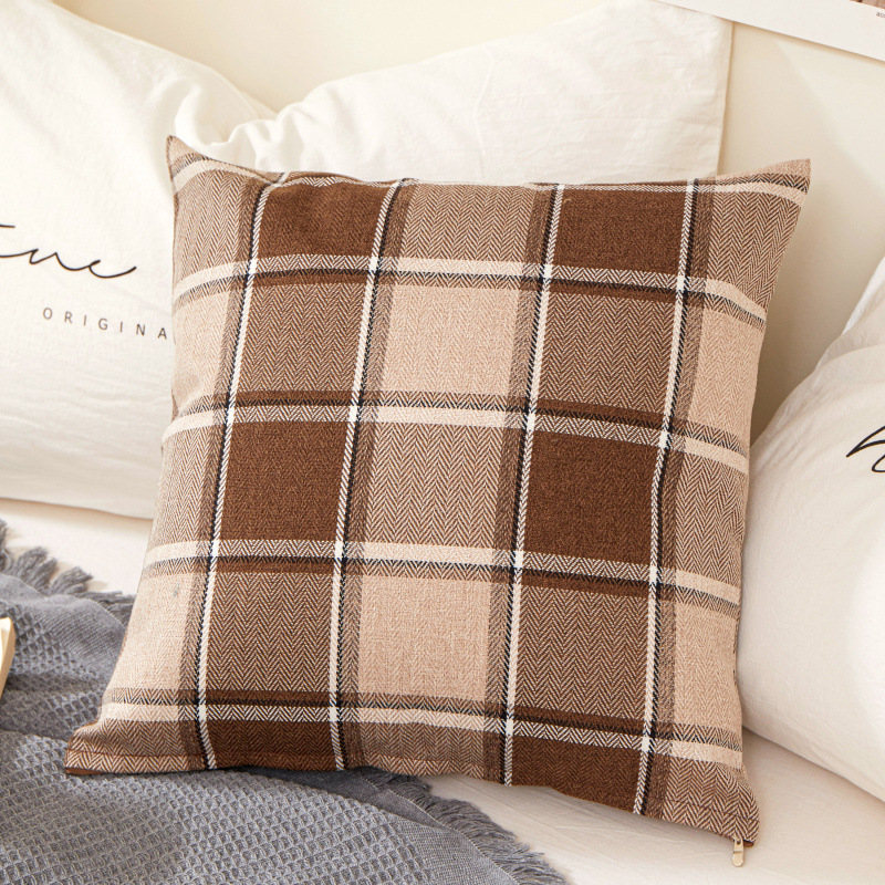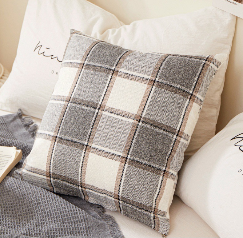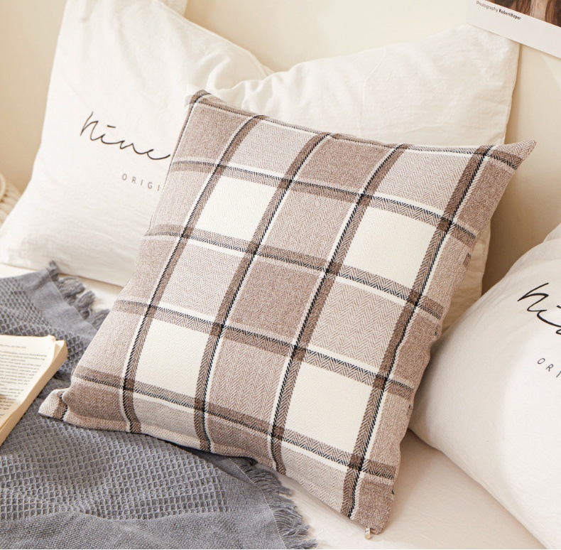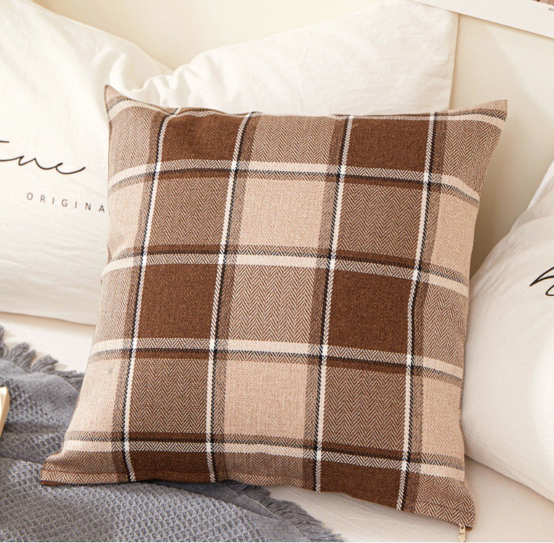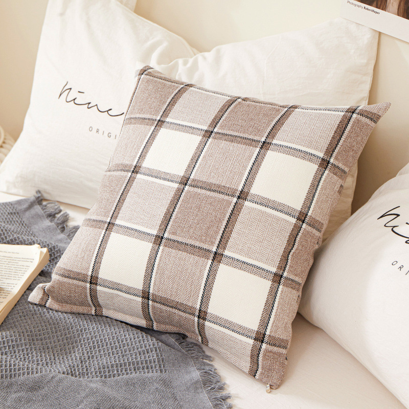 涤纶麻布格子抱枕套现代简约沙发抱枕座椅靠枕卧室床头软靠垫家用