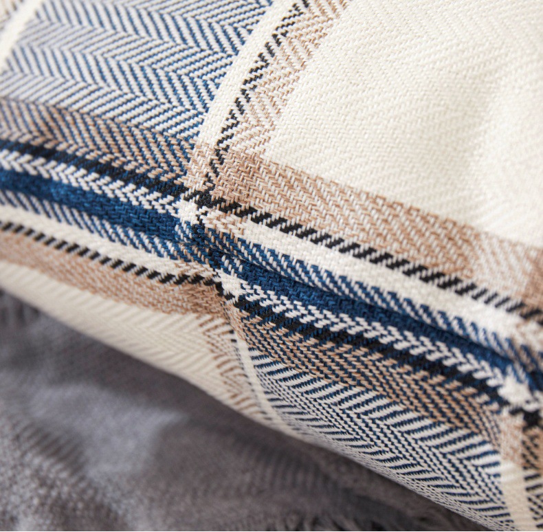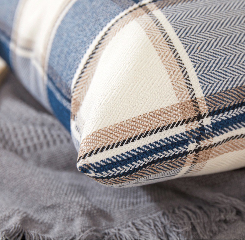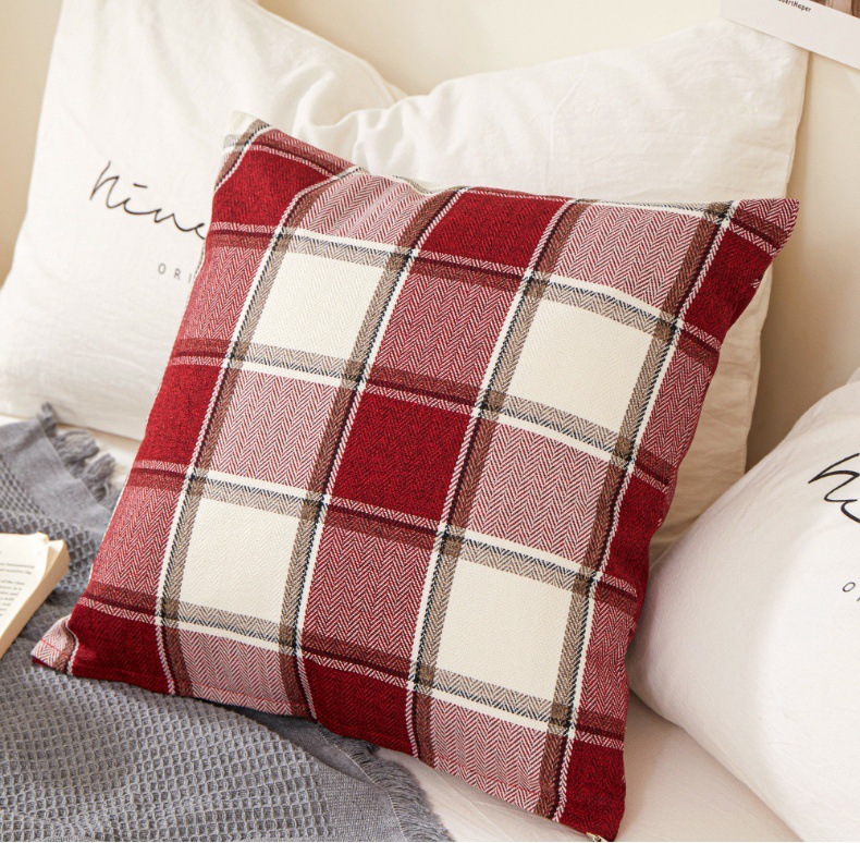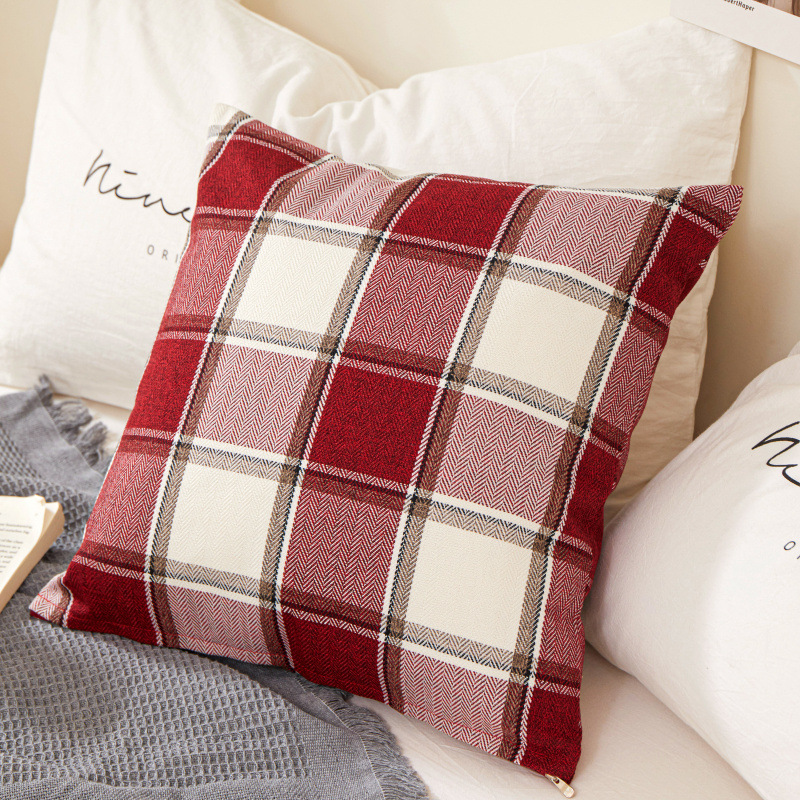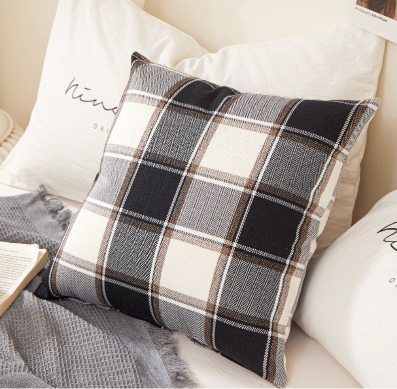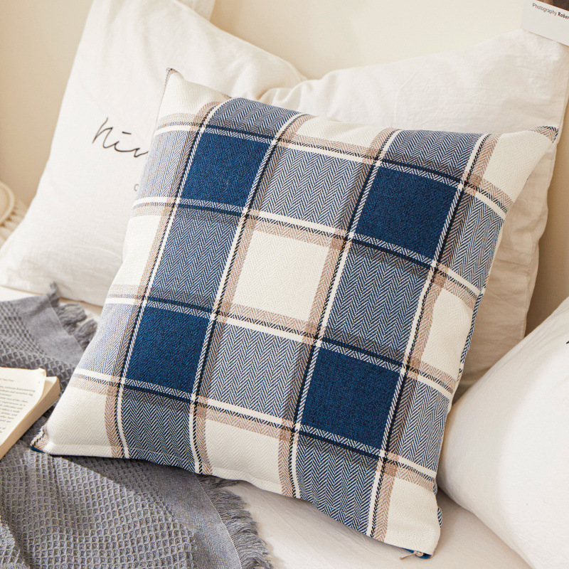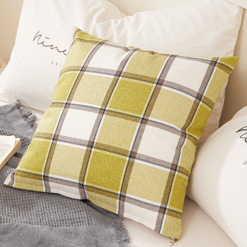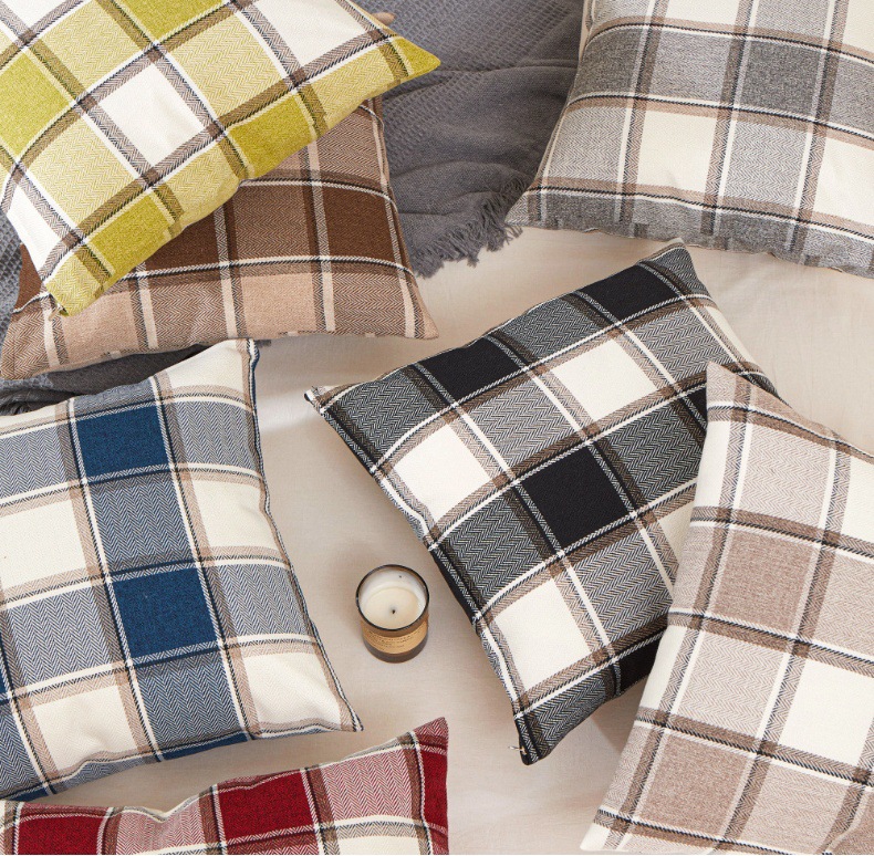涤纶麻布格子抱枕套现代简约沙发抱枕座椅靠枕卧室床头软靠垫家用