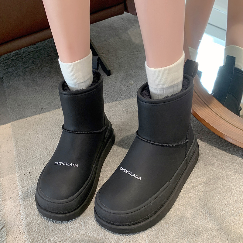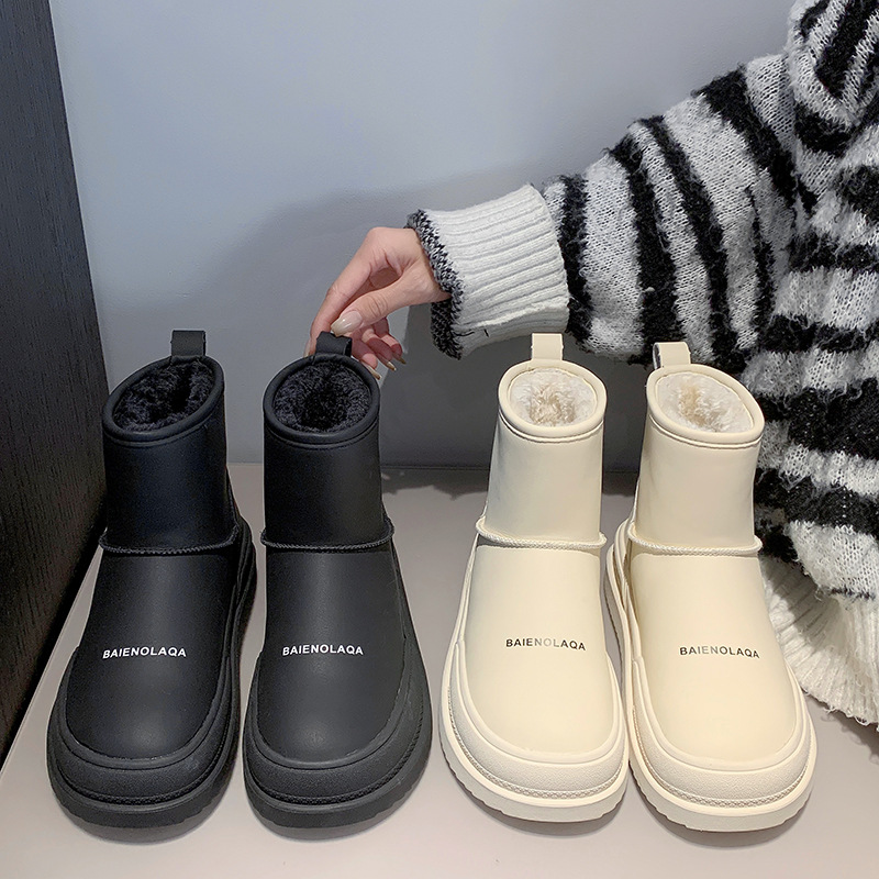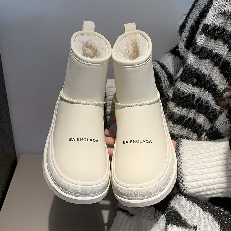 网红白色雪地靴女时尚厚底加绒加厚保暖防滑2023年冬季新款棉鞋子
