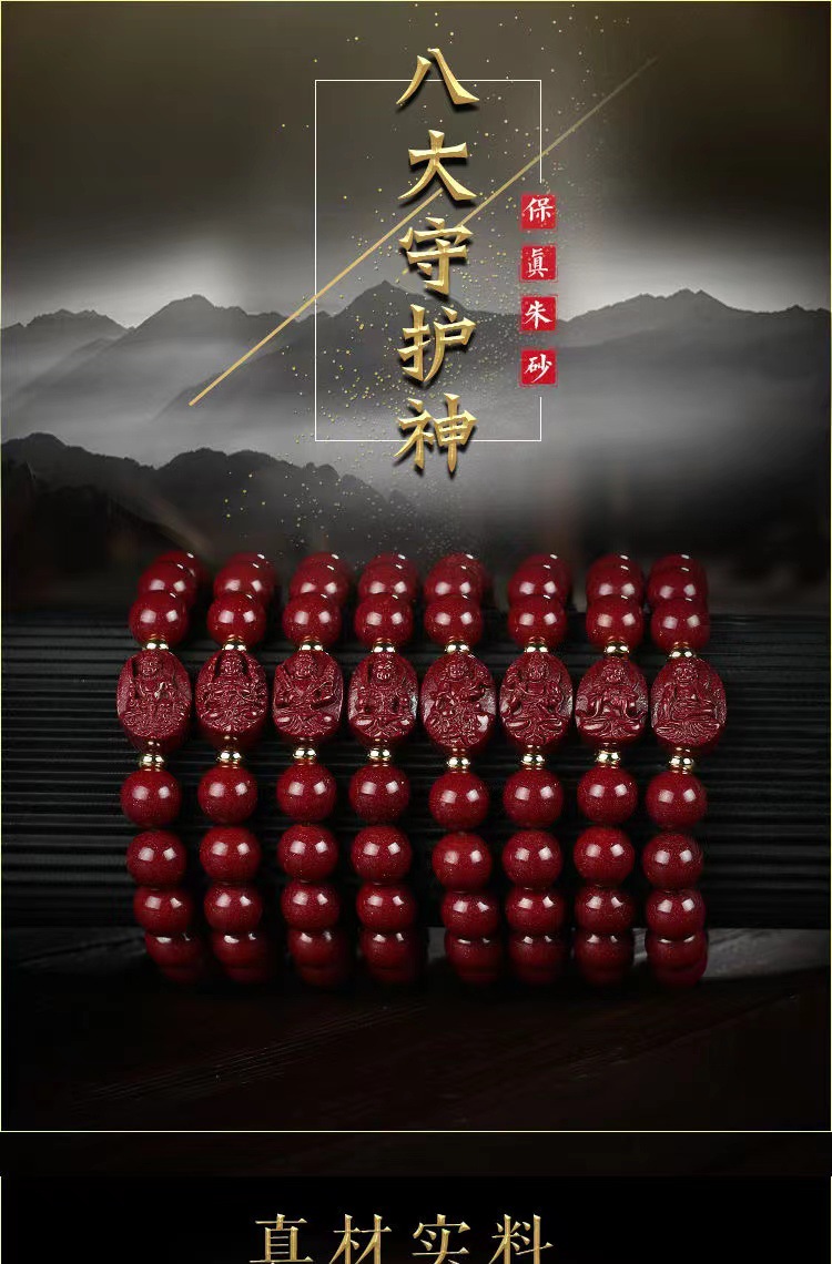 天然朱砂八大守护神手链本命年手串男女款高含量紫金砂厂家批发