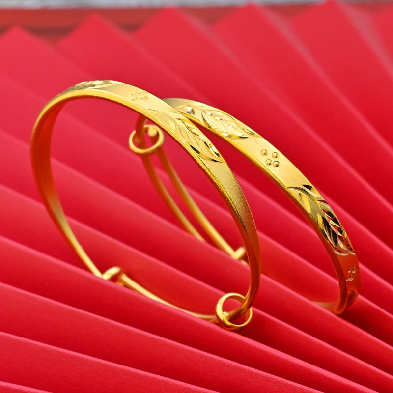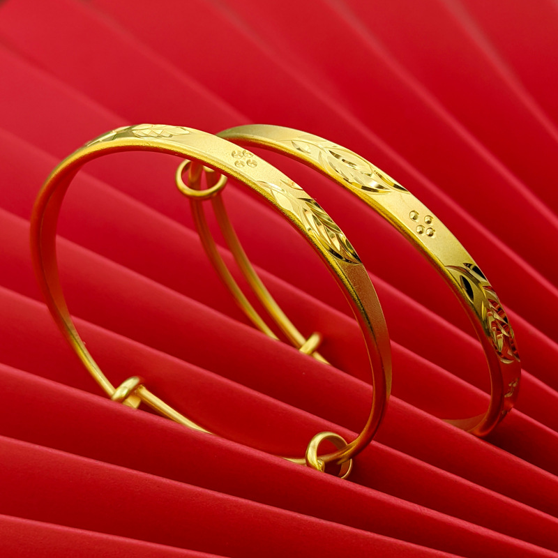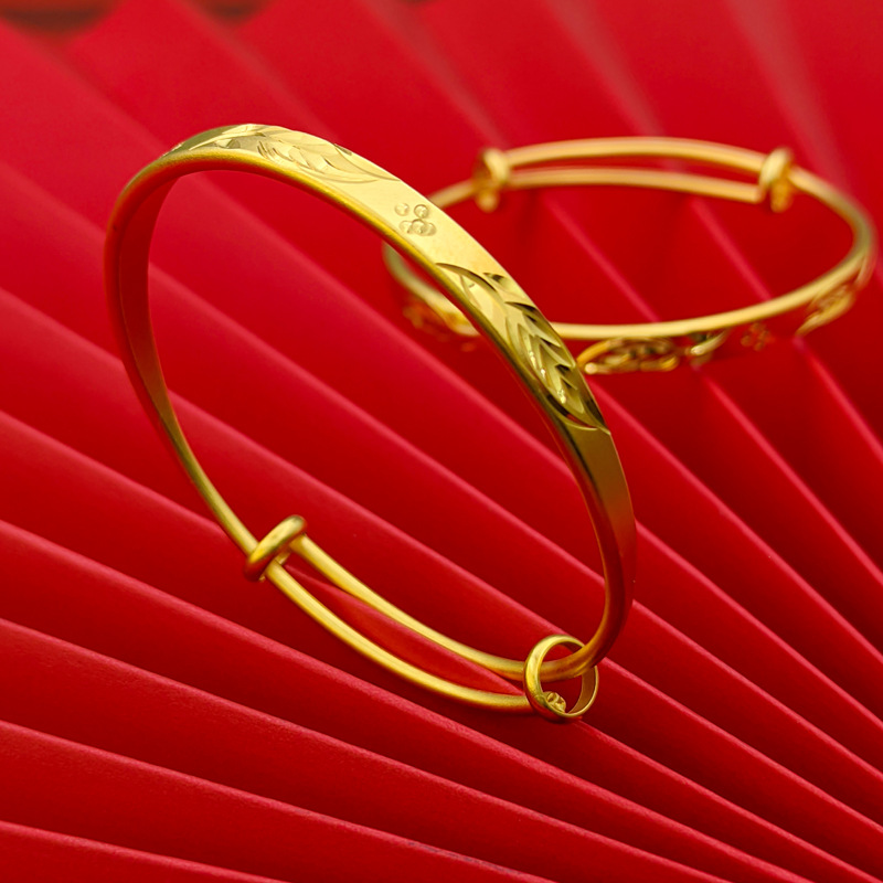 实心车花叶子手镯女磨砂沙金推拉闭口镯子直播带货小红书抖音同款
