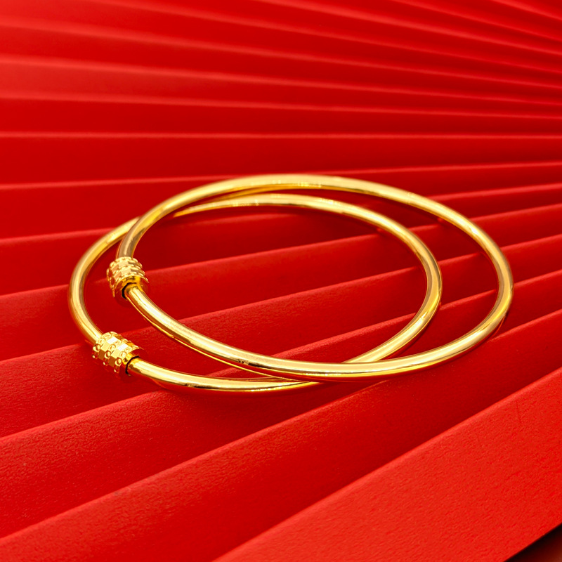 ins风光面素圈小蛮腰手镯女款简约越南沙金手环直播仿真饰品批发