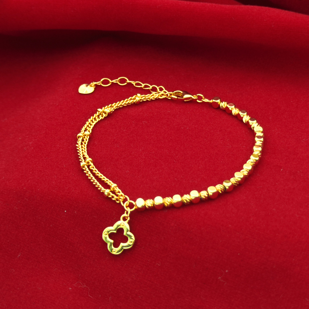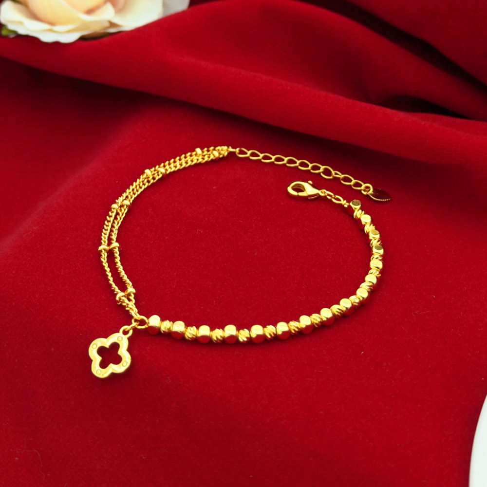 蹦迪镭射四叶草手链女越南沙金小众设计时尚百搭手串小红书同款