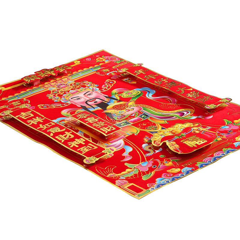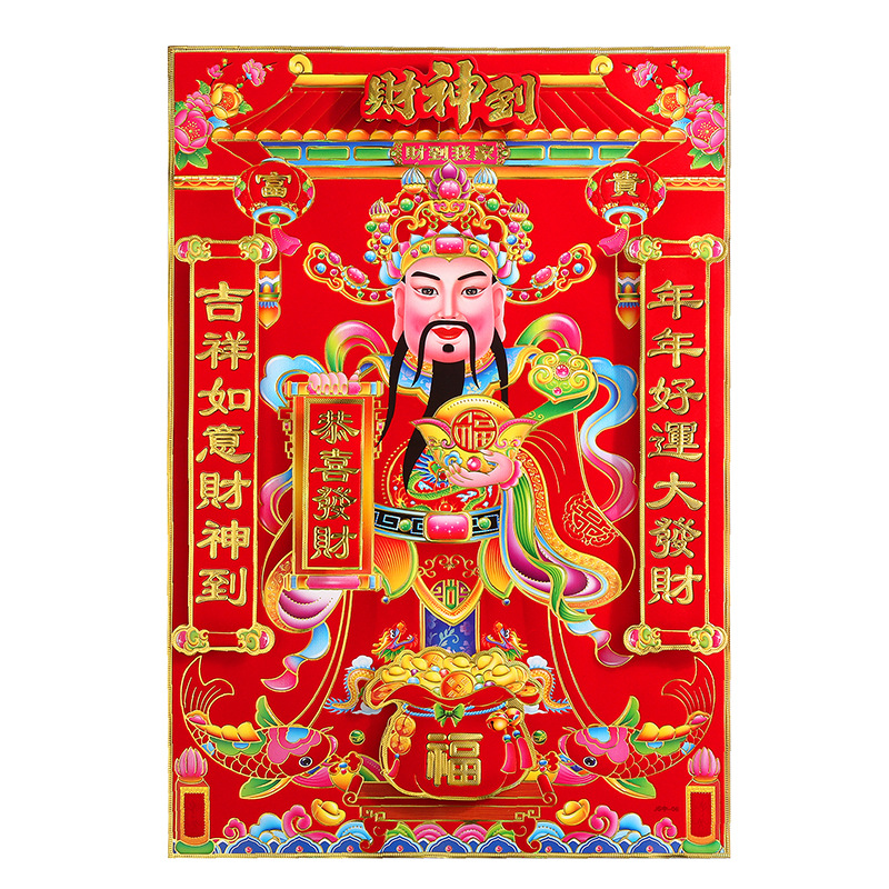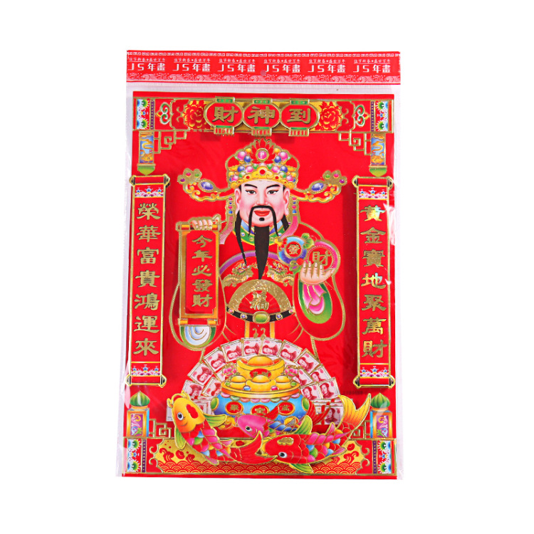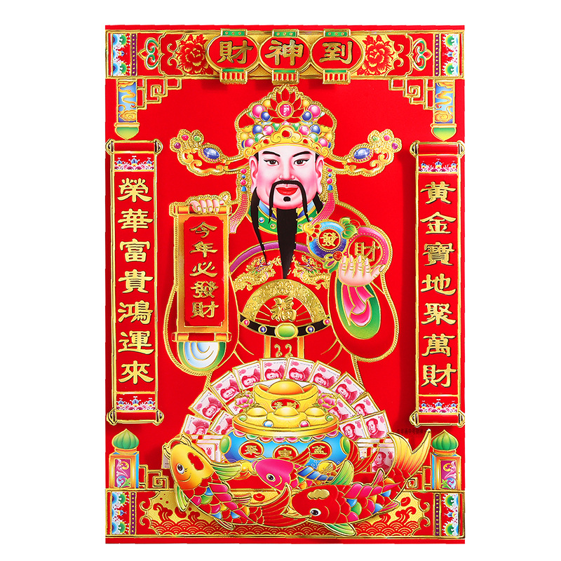 财神爷植绒财神画立体双层烫金财神爷春节用品年画厂家批发